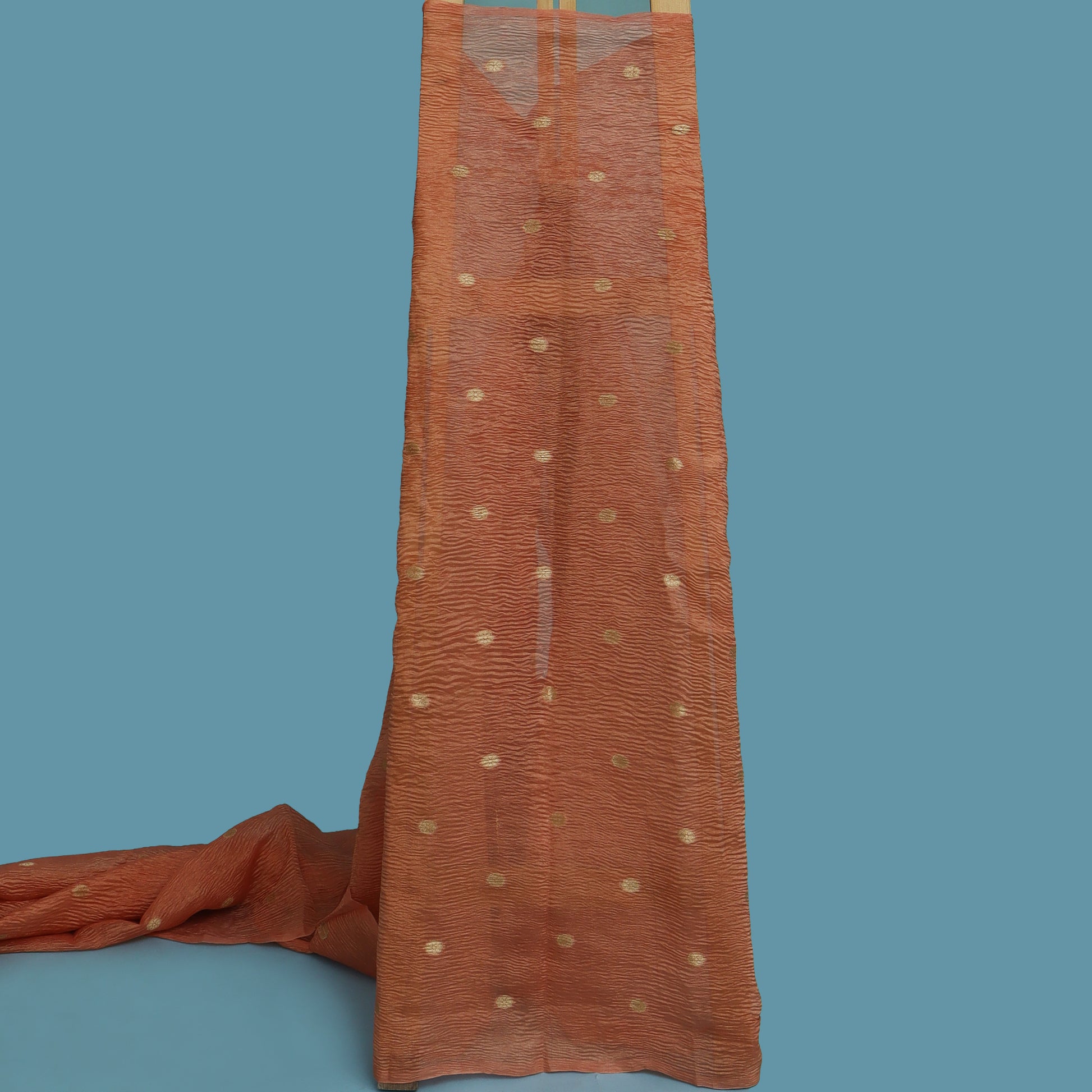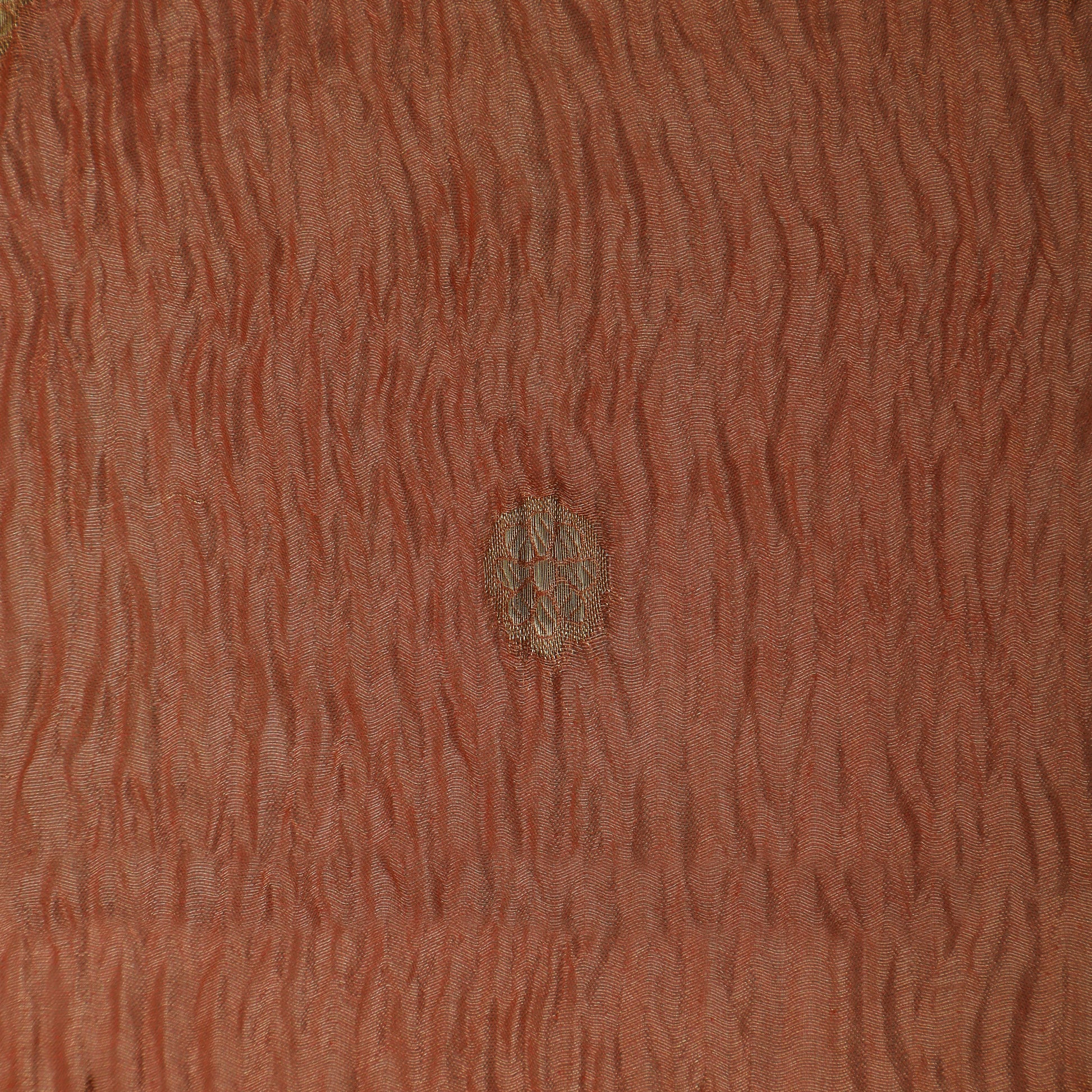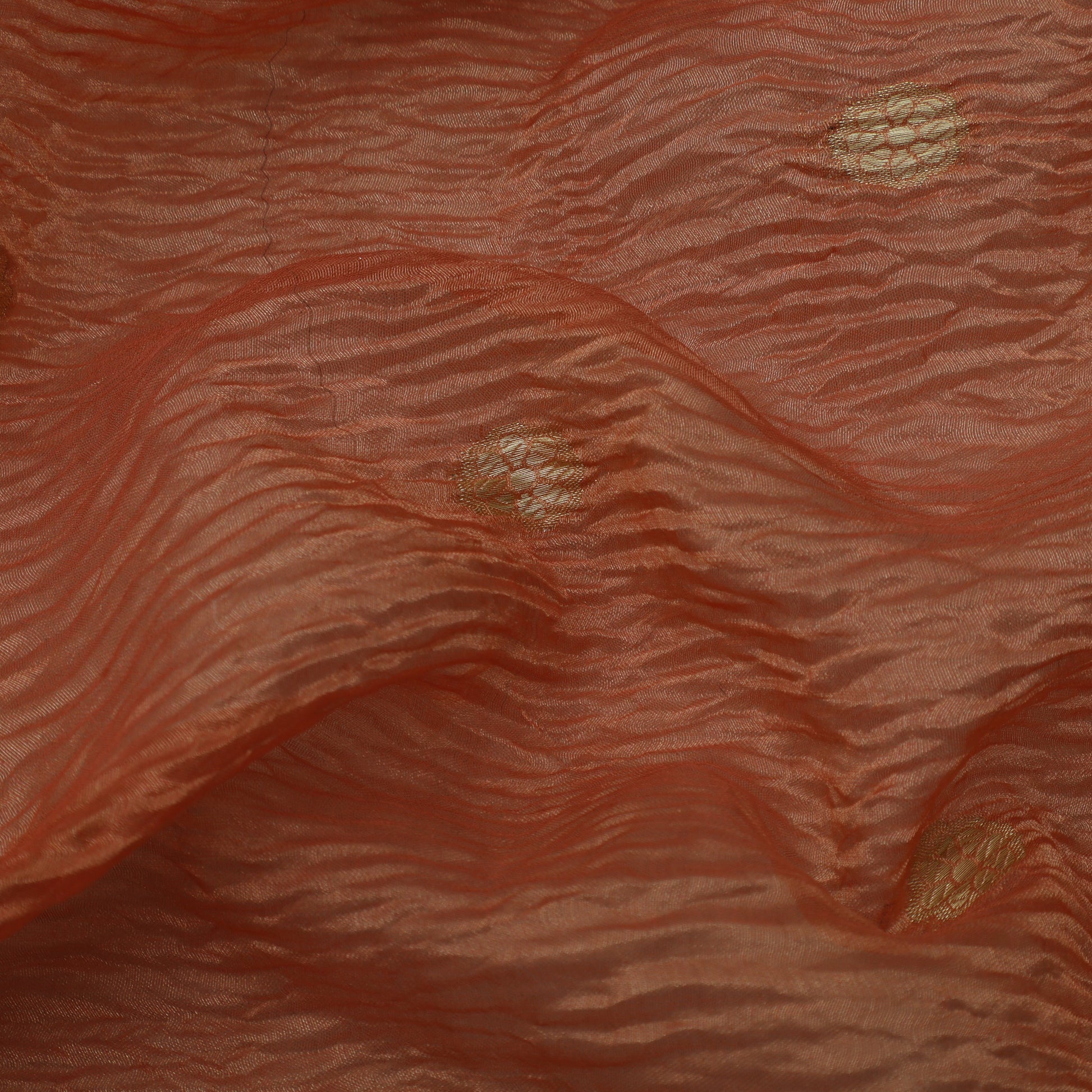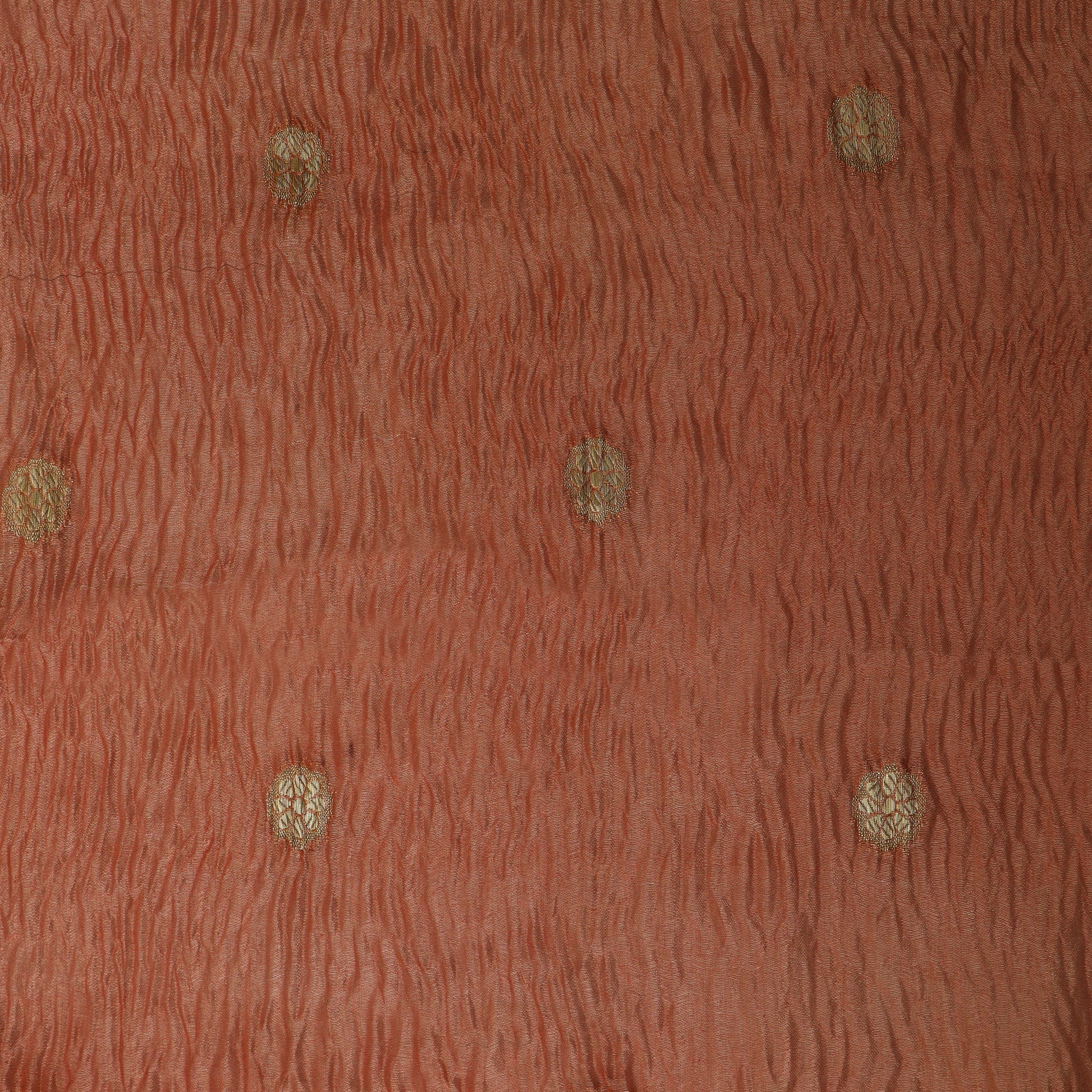 This Brownish Pink Color Crush Tissue Booti Fabric offers a luxurious and delicate touch to any project. The unique crushed texture adds dimension and the delicate booti pattern adds elegance. Made from high-quality fabric, it's perfect for creating high-end garments and home décor.