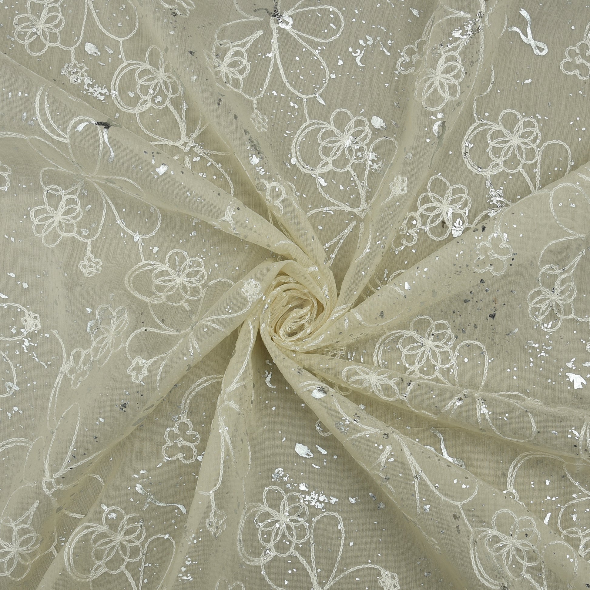 Chanderi Foil Embroidery Fabric