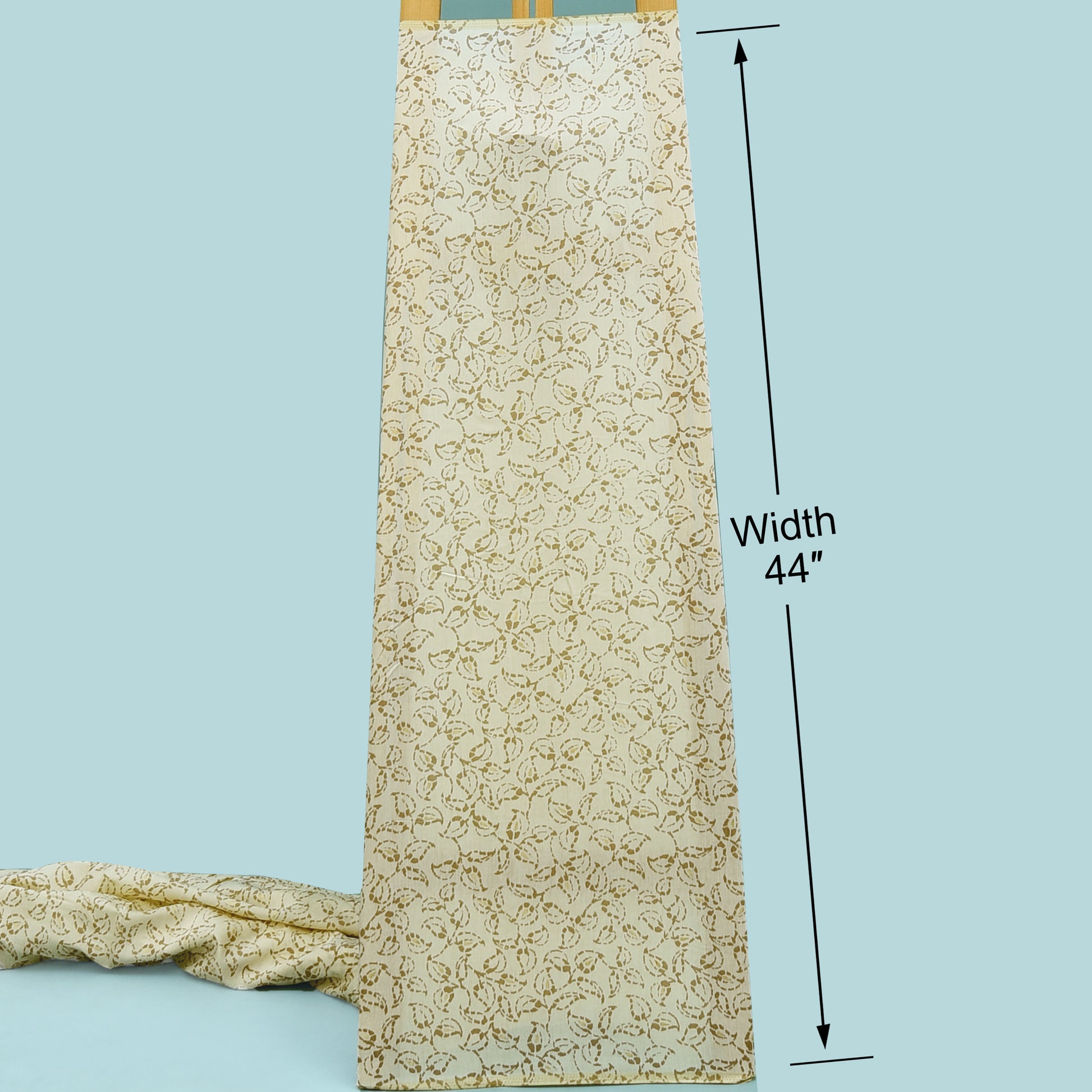 Expertly designed Chanderi Foil Print Fabric ties elegance and durability into one. This fine fabric is made from a blend of cotton and silk, resulting in a smooth, soft texture. Its intricate foil print adds a touch of sophistication to any outfit. Perfect for creating timeless masterpieces.