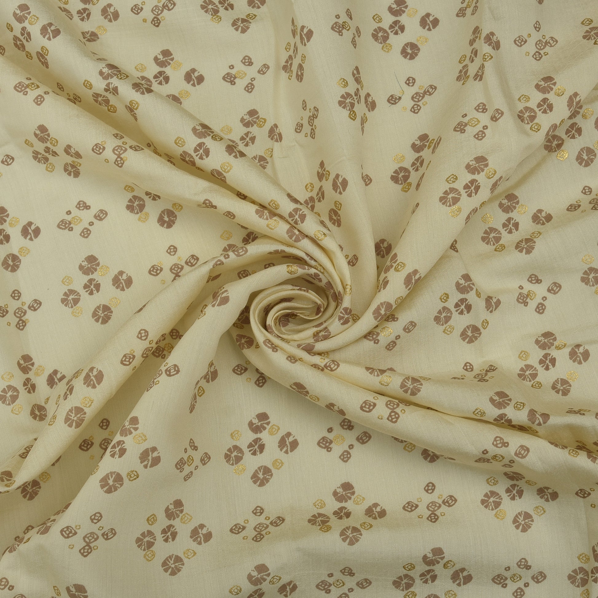Introducing Chanderi Foil Print Fabric! Made from high-quality materials, this fabric features stunning foil prints that add a touch of elegance to any garment. Its lightweight and durable nature make it perfect for a variety of projects, providing a luxurious look without sacrificing comfort. Elevate your style with Chanderi Foil Print Fabric.