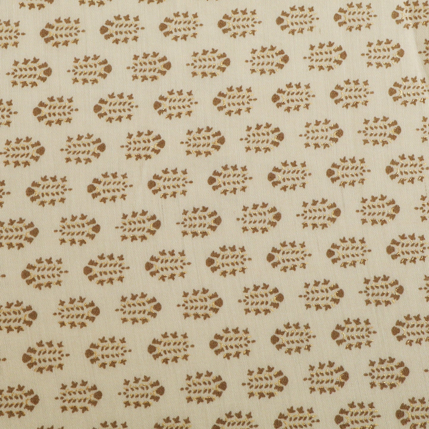 Expertly crafted with Chanderi Foil Print Fabric, this material boasts intricate designs and a luxurious feel. Its blend of silk and cotton offers a lightweight yet durable option for any project. Elevate your creations with this high-quality, versatile fabric.