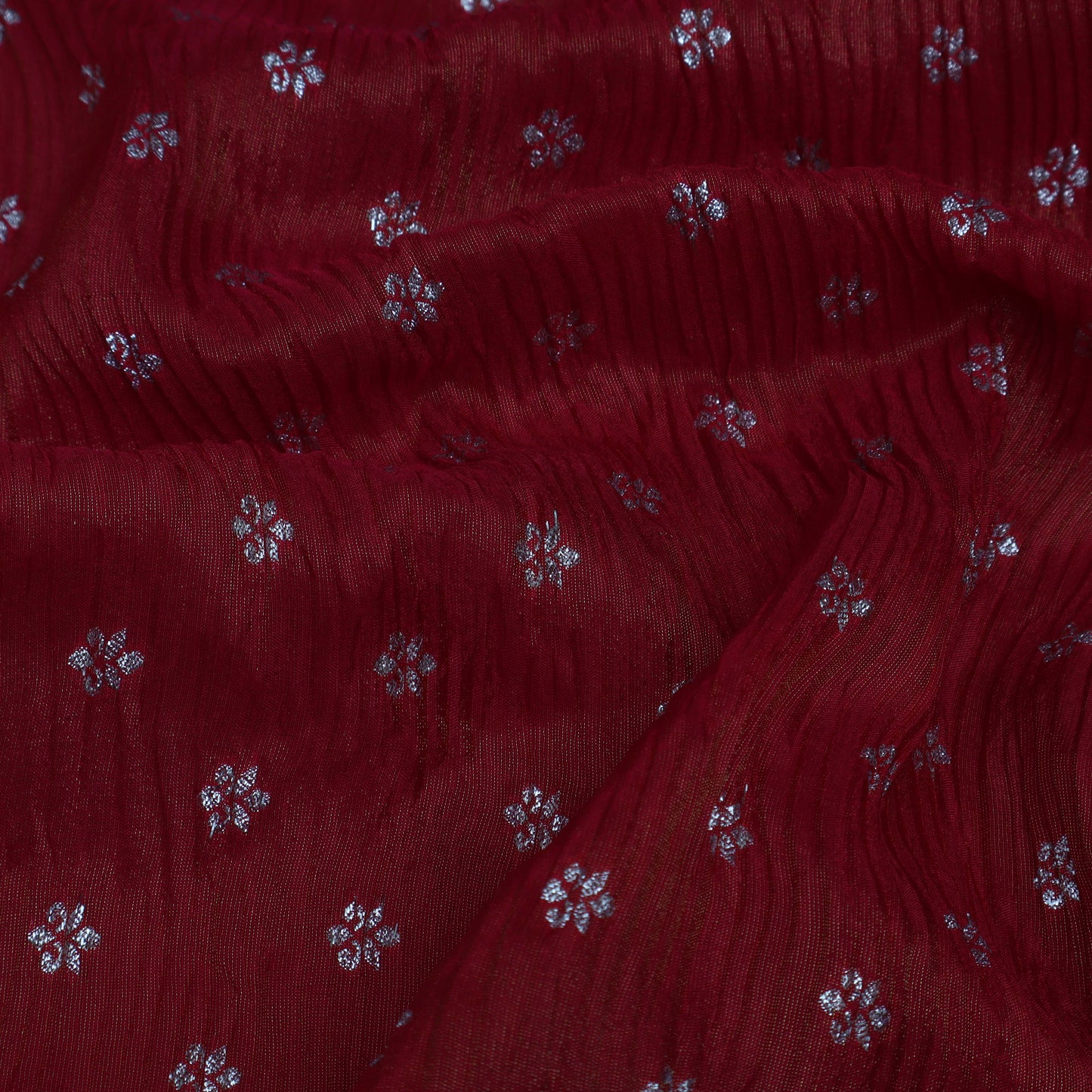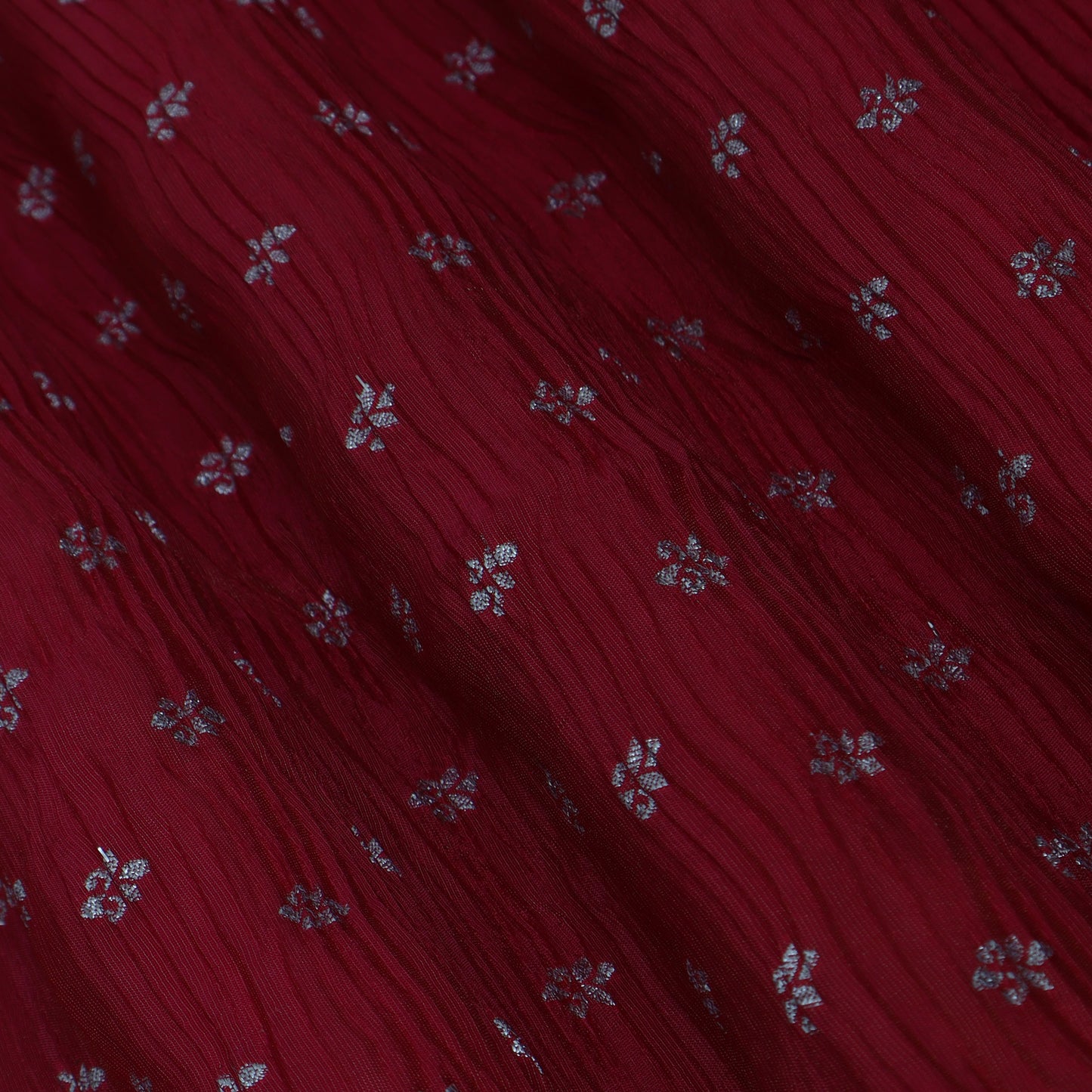 Cherry Red Color Crush Tissue Jacquard Fabric