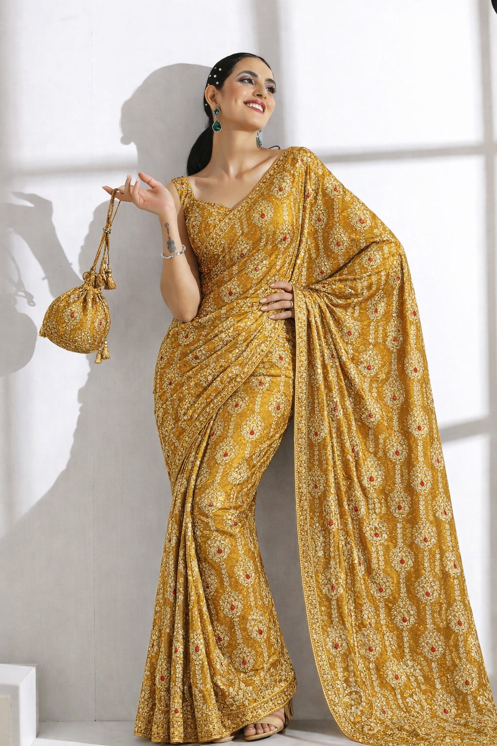 Woven with attention to detail, this Chinia brocade textile brings depth and elegance to ethnic creations. The fabric’s visual richness makes it suitable for statement outfits and heritage-inspired designs.