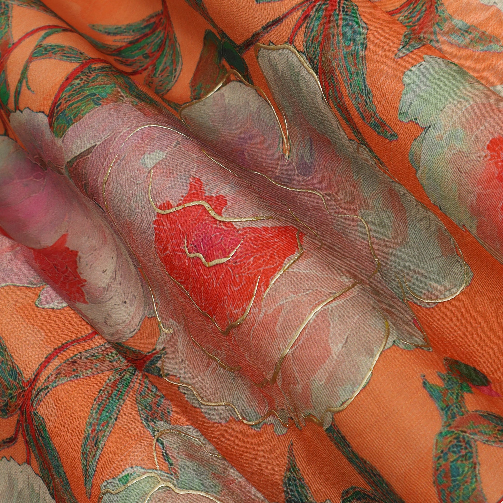 Upgrade your fabric collection with this Chinon Chiffon Printed Kupi Work Fabric.