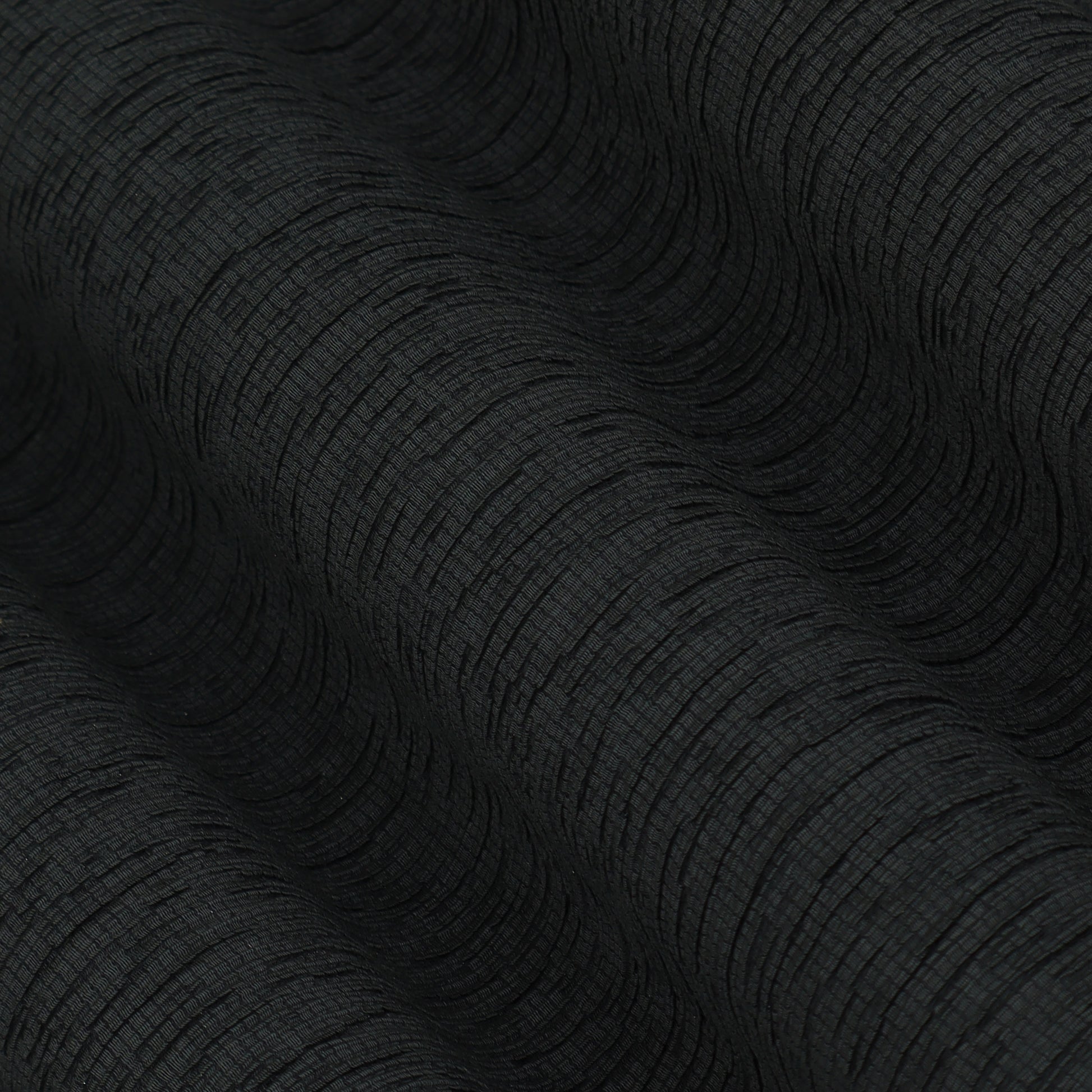 This Coal Black Color Crush Crepe Plain Fabric is perfect for creating elegant and sophisticated garments. The delicate crepe texture adds a touch of luxury, while the rich black color provides versatility and timeless style. Made from high-quality materials, this fabric is easy to work with and creates a beautiful drape. Unleash your creativity and make stunning pieces with this premium fabric.