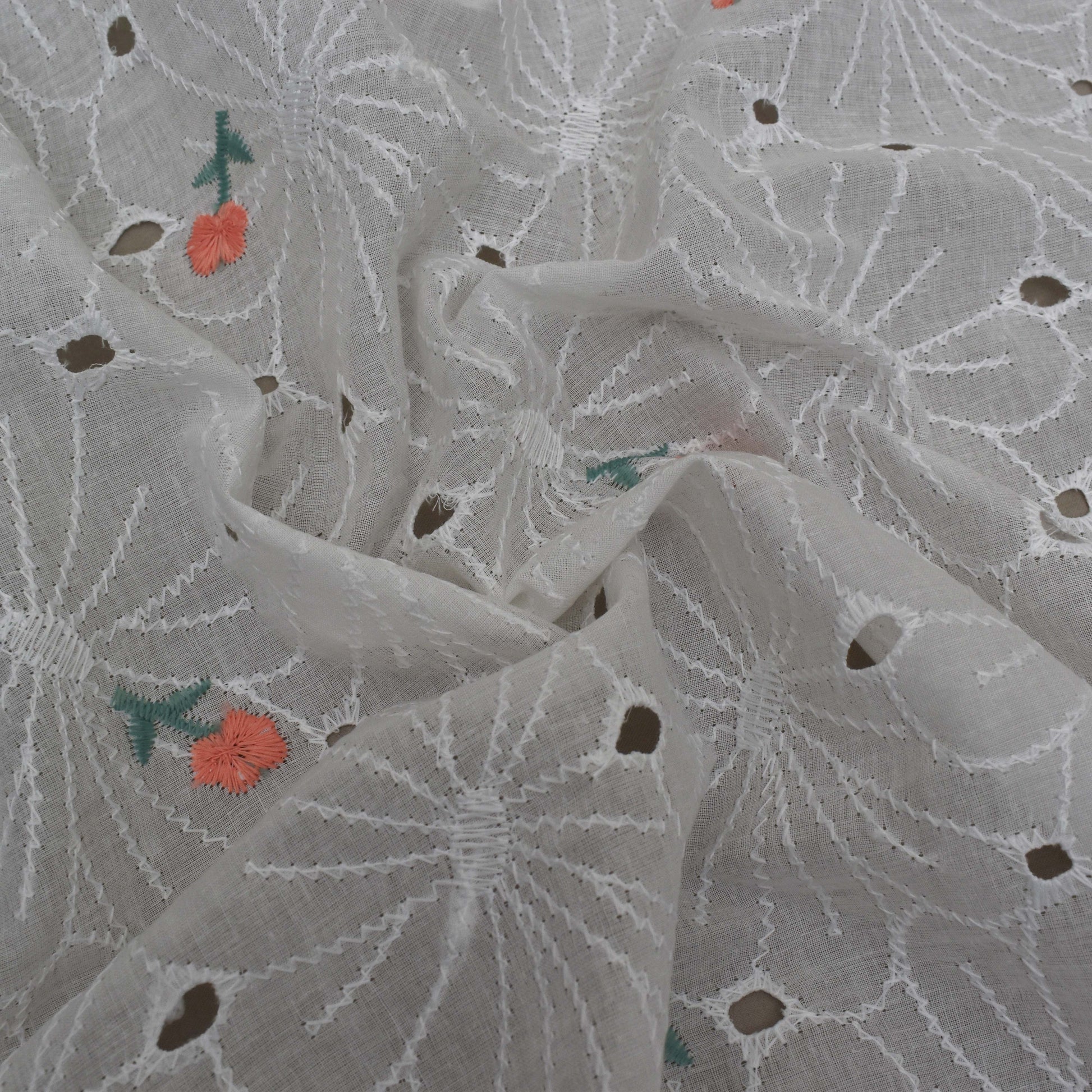 White Color Cotton Chikan Embroidery Fabric
