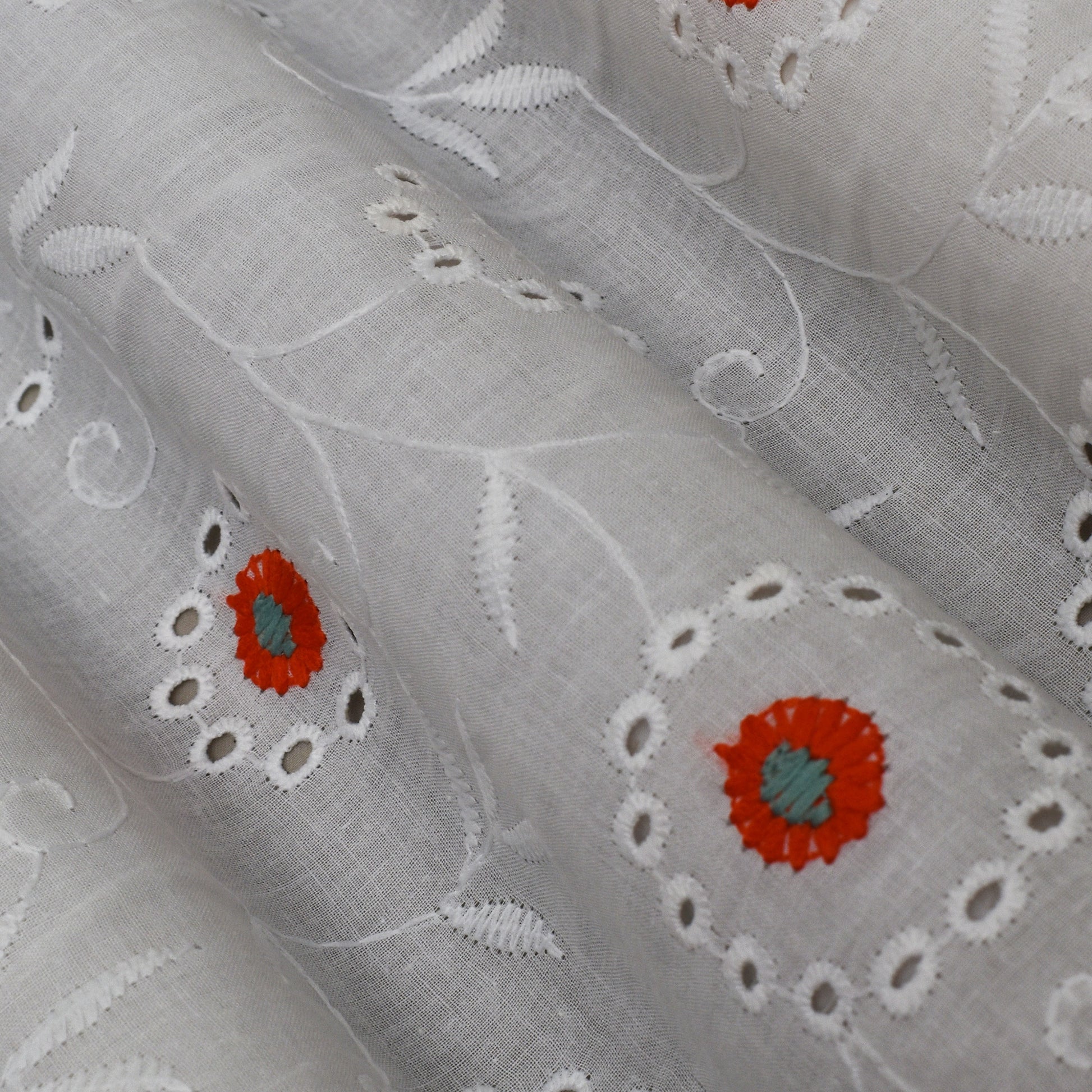 Experience luxury and comfort with our White Color Cotton Chikan Embroidery fabric. Made with high-quality cotton and detailed embroidery, this fabric is perfect for creating elegant and sophisticated garments. Upgrade your wardrobe with this timeless and versatile fabric