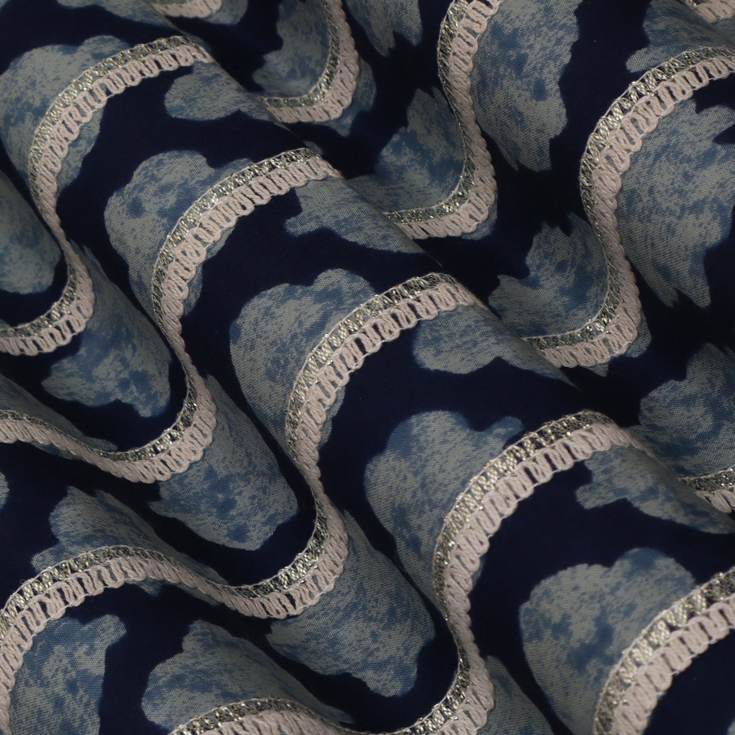 This colored cotton fabric features intricate Gota work, adding a touch of elegance to any project. Made from high-quality cotton, it offers a comfortable and durable option for clothing, accessories, and home decor. The perfect choice for those seeking a unique and stylish look.