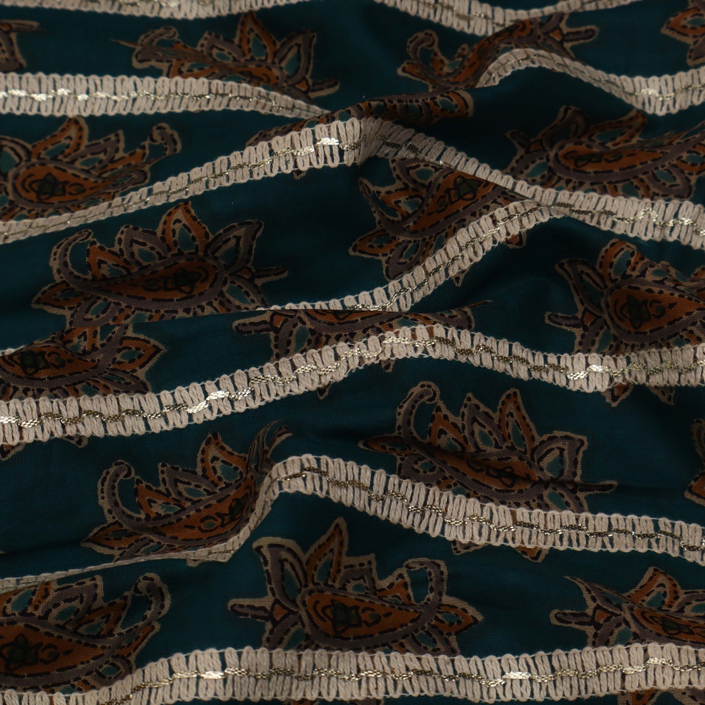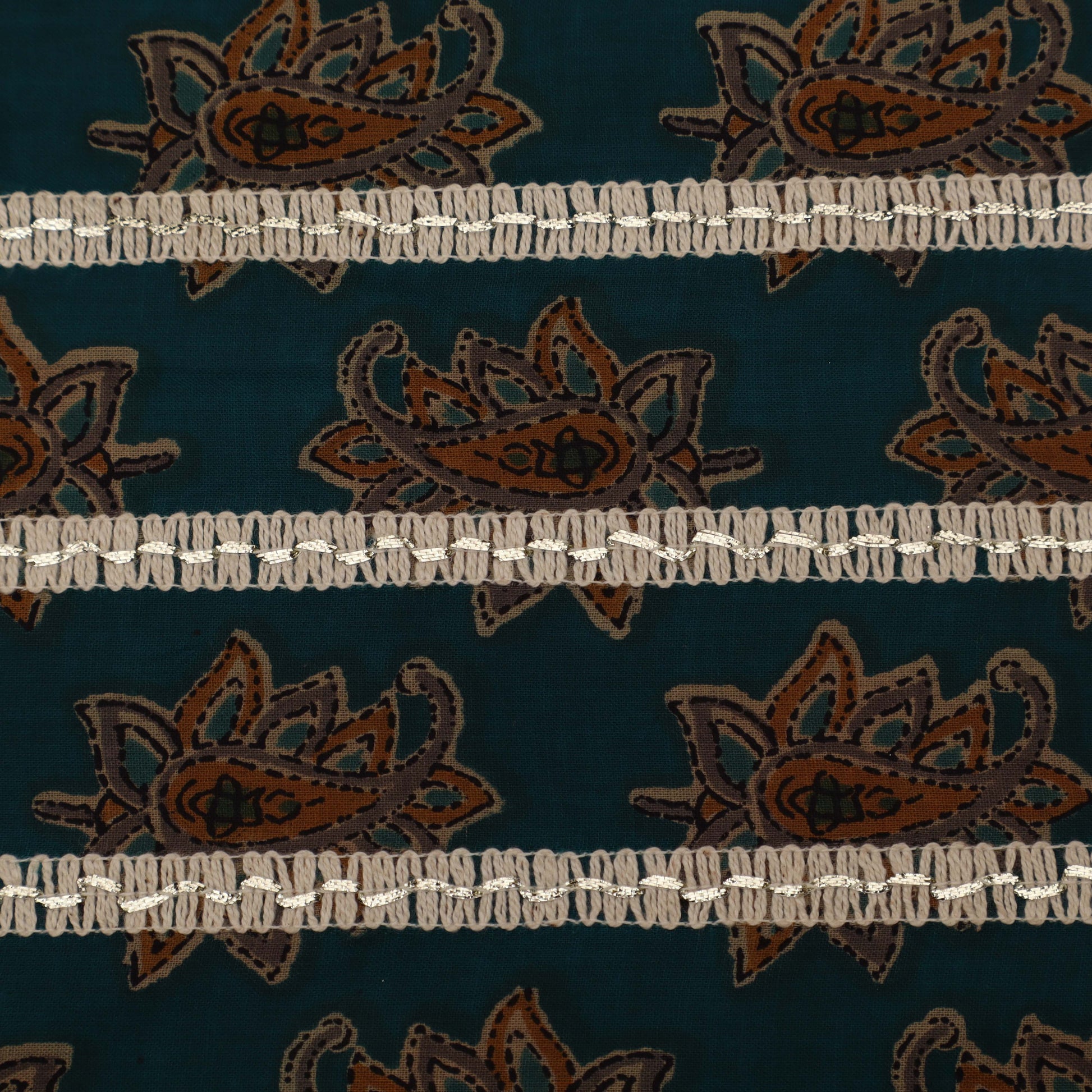 This Colored Cotton Gota Work Fabric is expertly crafted to provide a luxurious and stylish addition to any garment. Made with high-quality cotton and adorned with intricate Gota work, this fabric exudes sophistication and elegance. With its vibrant colors and impeccable craftsmanship, it is perfect for creating unique and eye-catching designs.
