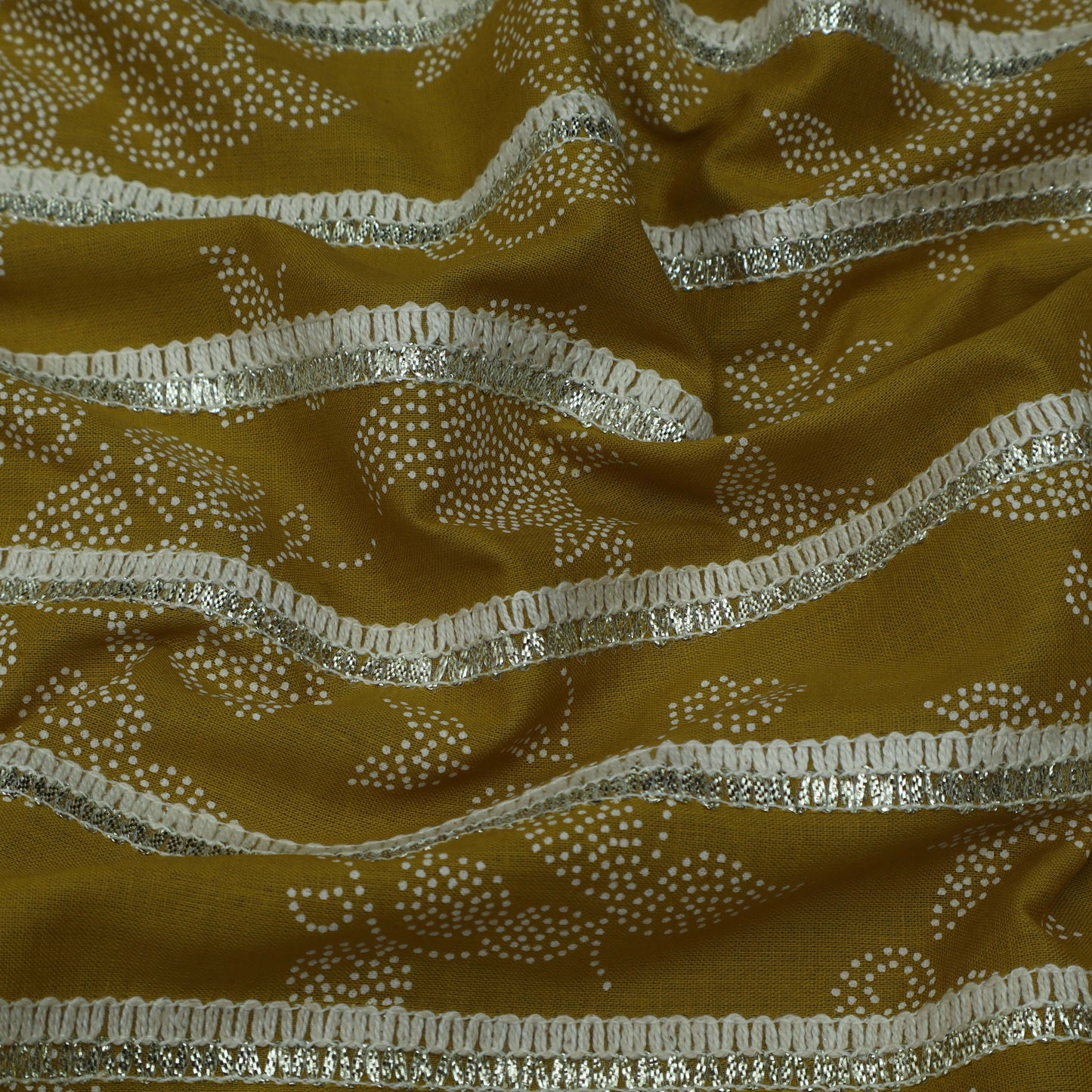Experience the high-quality and vibrant Colored Cotton Gota Work Fabric. Elevate your wardrobe with this expertly crafted fabric that boasts both style and durability. Made from premium cotton, it offers a soft and comfortable feel while adding a touch of traditional elegance to any outfit.