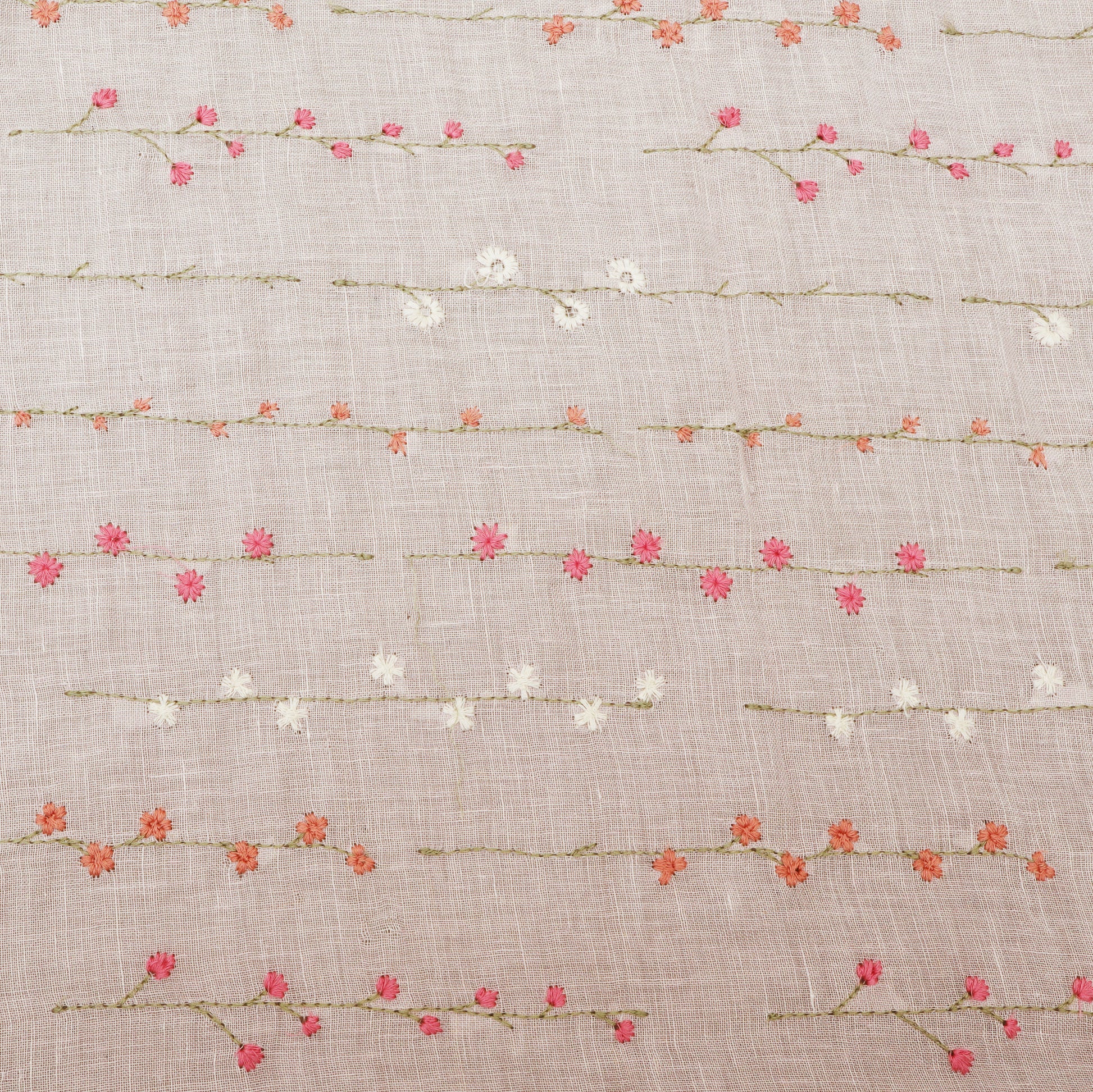 Made with high-quality colored linen and intricate embroidery, this fabric is perfect for adding a touch of elegance to any project. Its durable yet lightweight material makes it ideal for a variety of uses, and its vibrant hues will add a pop of color to any design.