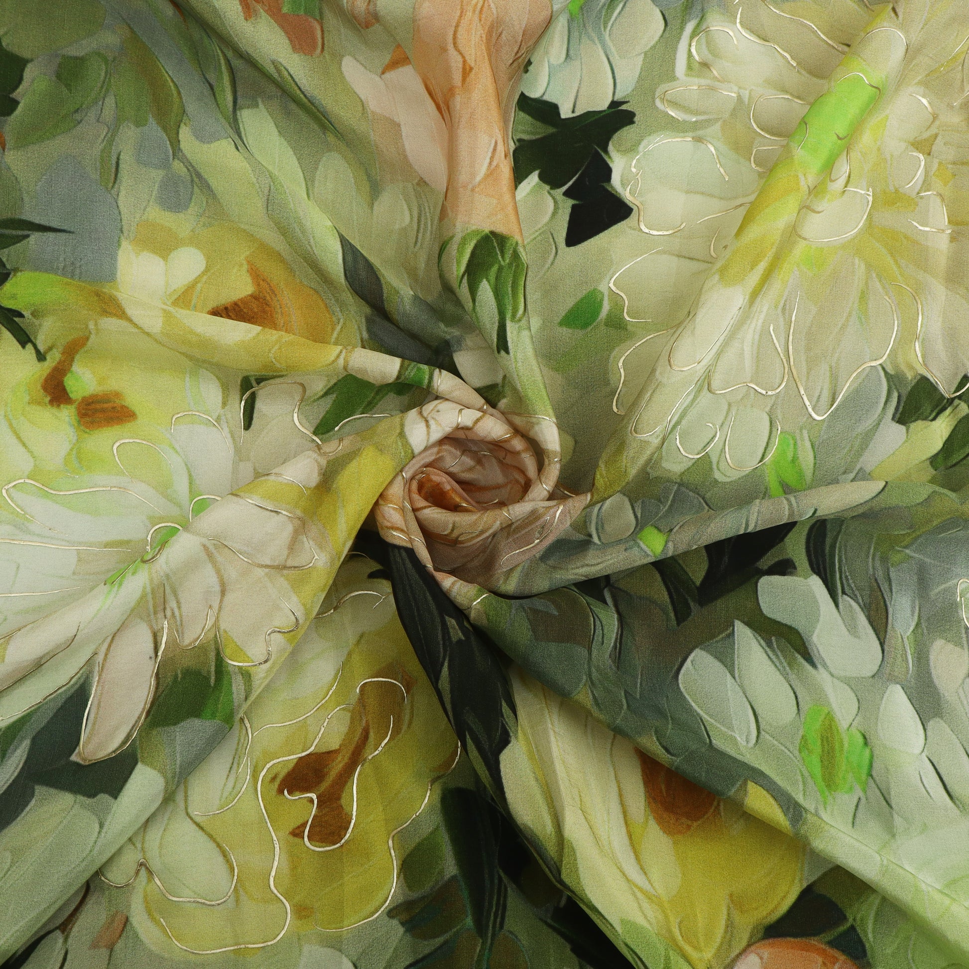 Crafted from soft crepe material, it features beautiful prints enhanced with delicate Kupi work. Lightweight, breathable, and easy to drape, making it ideal for kurtis, suits, dresses, and designer outfits. Perfect for daily wear as well as festive styling.