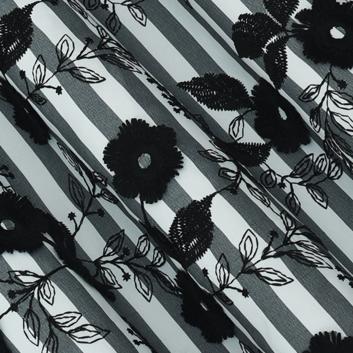 This Crepe Stripe Embroidery Fabric is a must-have for any fashion enthusiast. Made from high-quality materials, it boasts a unique crepe stripe design and intricate embroidery details. Perfect for creating eye-catching garments that are both stylish and elegant. Elevate your fashion game with this versatile fabric option.