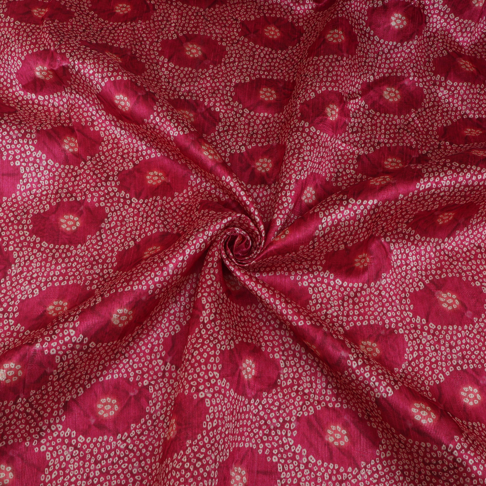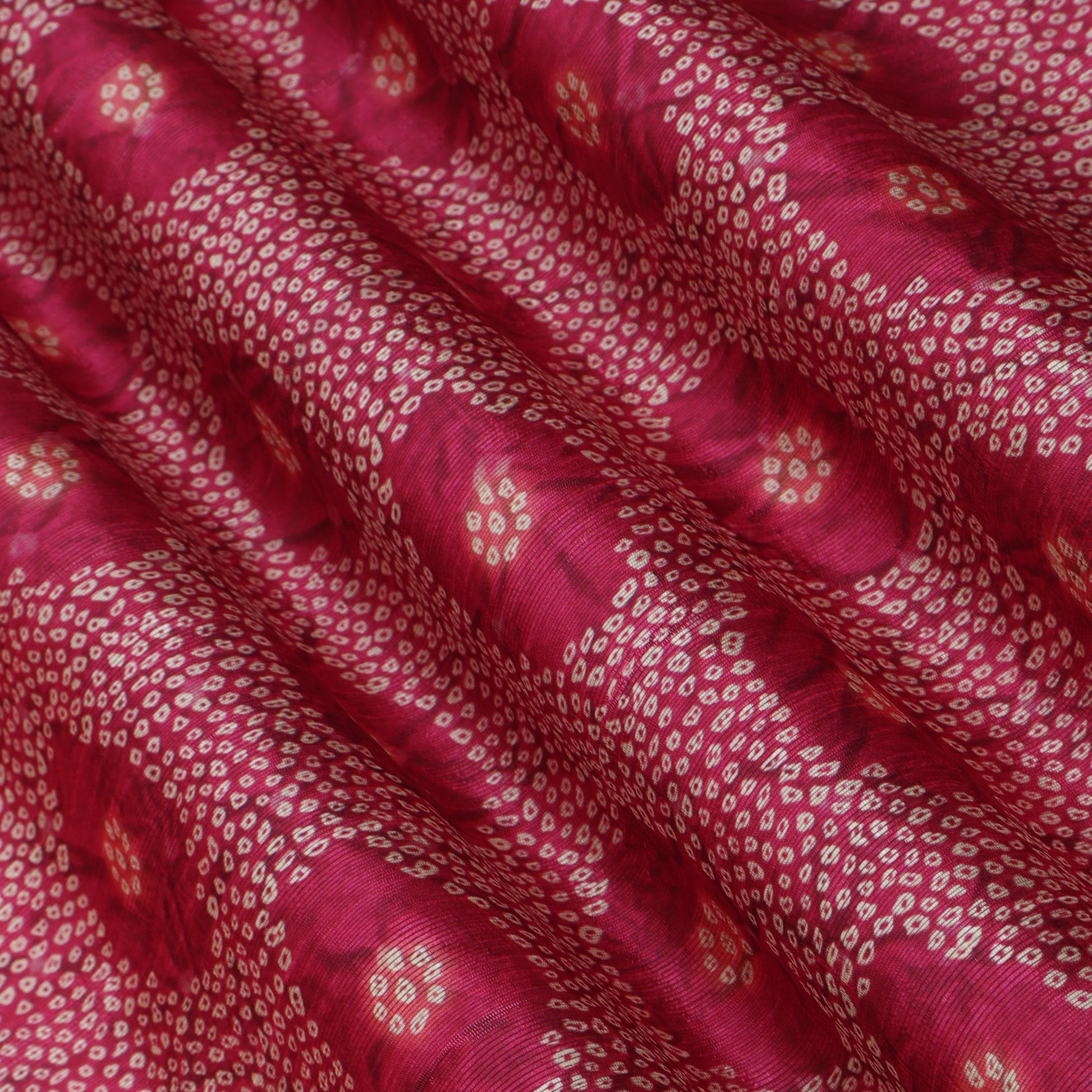 Is fabric ka subtle sheen aur structured drape saree, lehenga aur designer ethnic wear ke liye perfect choice hai. Printed detailing dark pink shade ko aur highlight karti hai, jo wedding aur festive collections ke liye ideal hai.