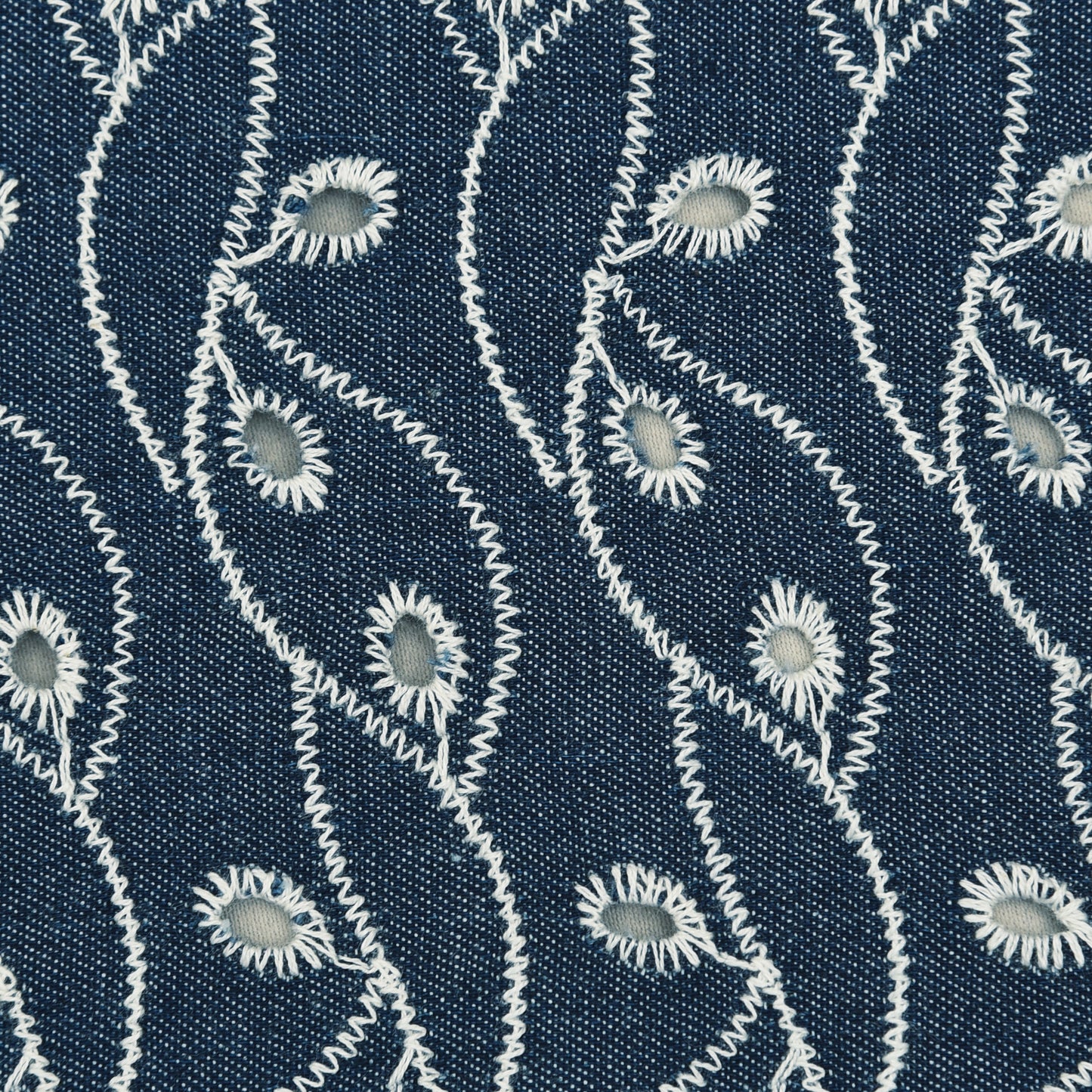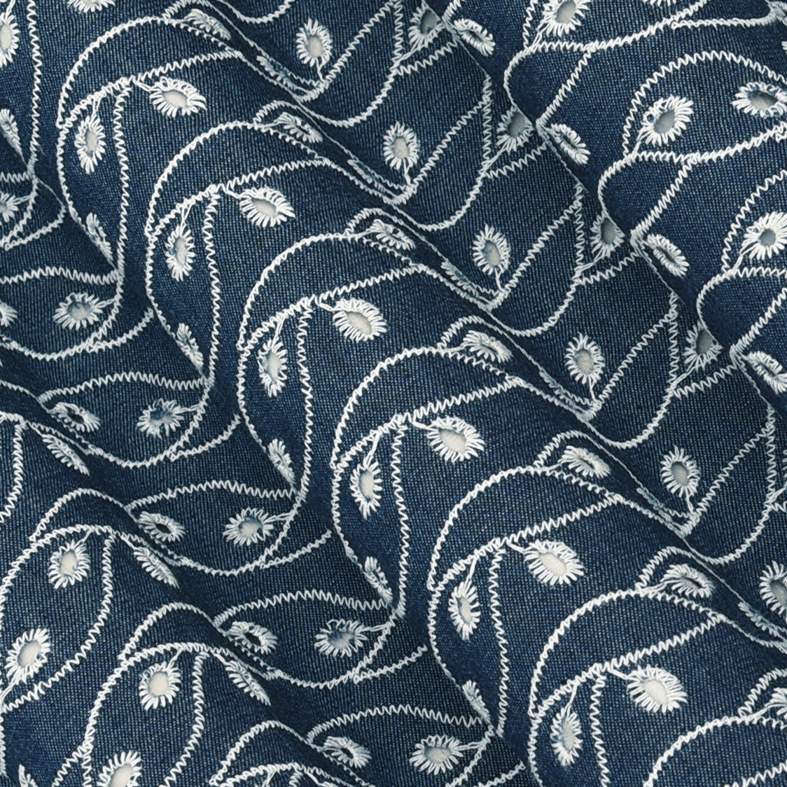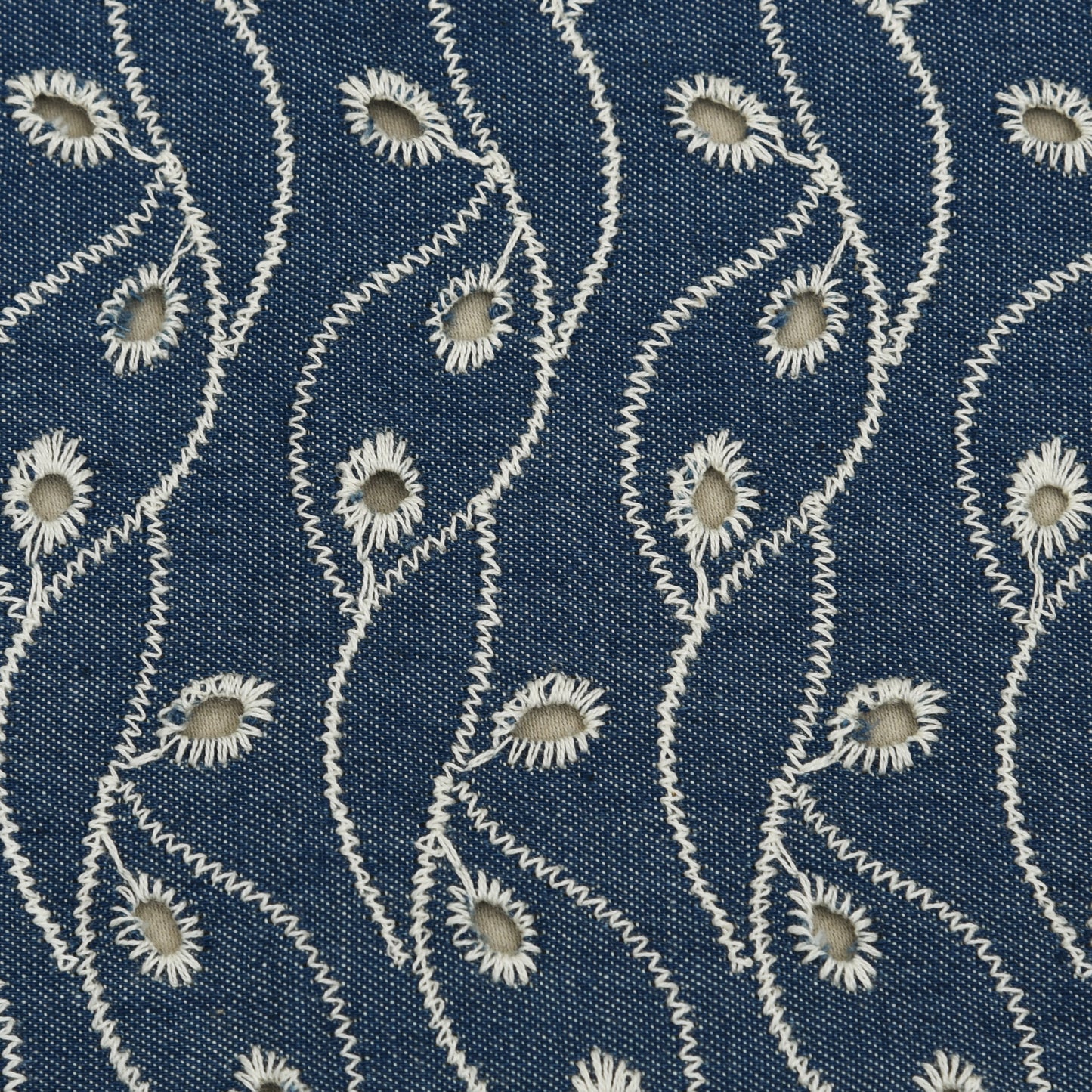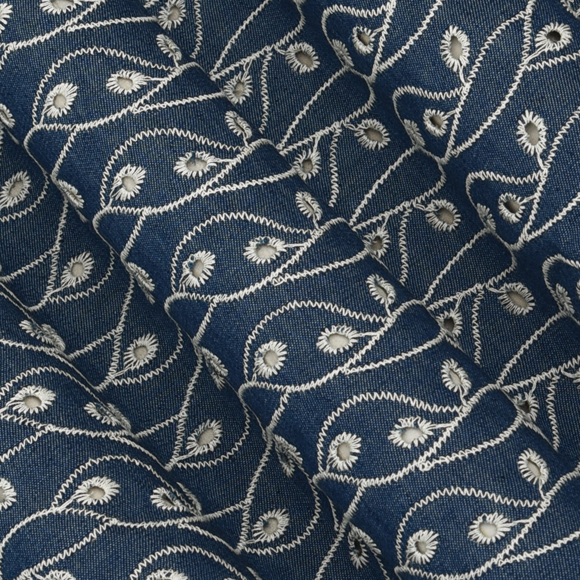 This Denim Embroidery Fabric is made from high-quality denim material and features intricate embroidery. Its durable and sturdy construction makes it perfect for various sewing and crafting projects, adding a unique and stylish touch to any design. Create stunning garments and accessories with ease using this versatile fabric.