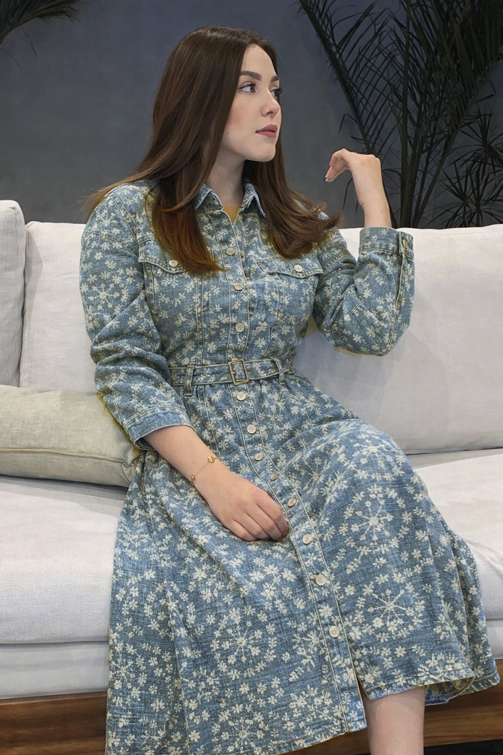 The embroidered motifs add texture, depth, and a handcrafted appeal to the sturdy denim surface, transforming a classic fabric into a fashion-forward statement. Despite its structured base, Denim Embroidery Fabric offers a comfortable drape, making it suitable for both structured and flowy silhouettes.