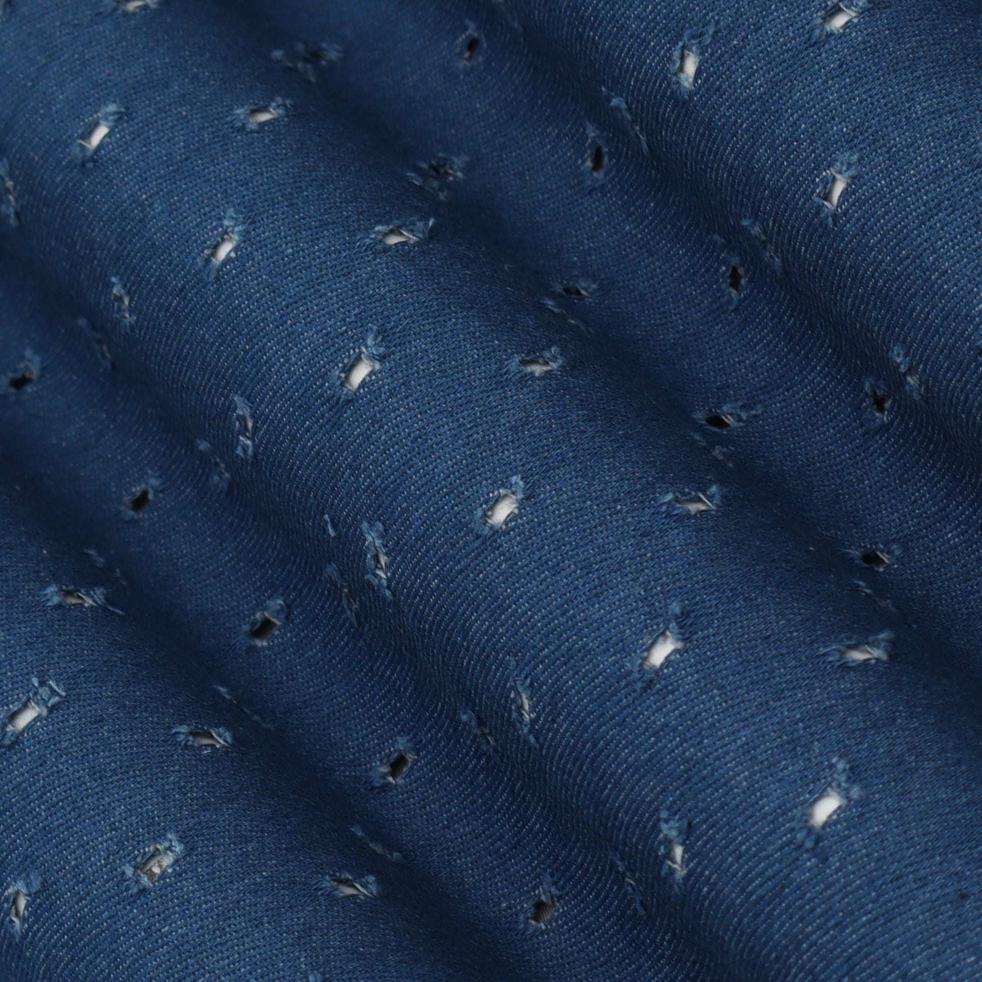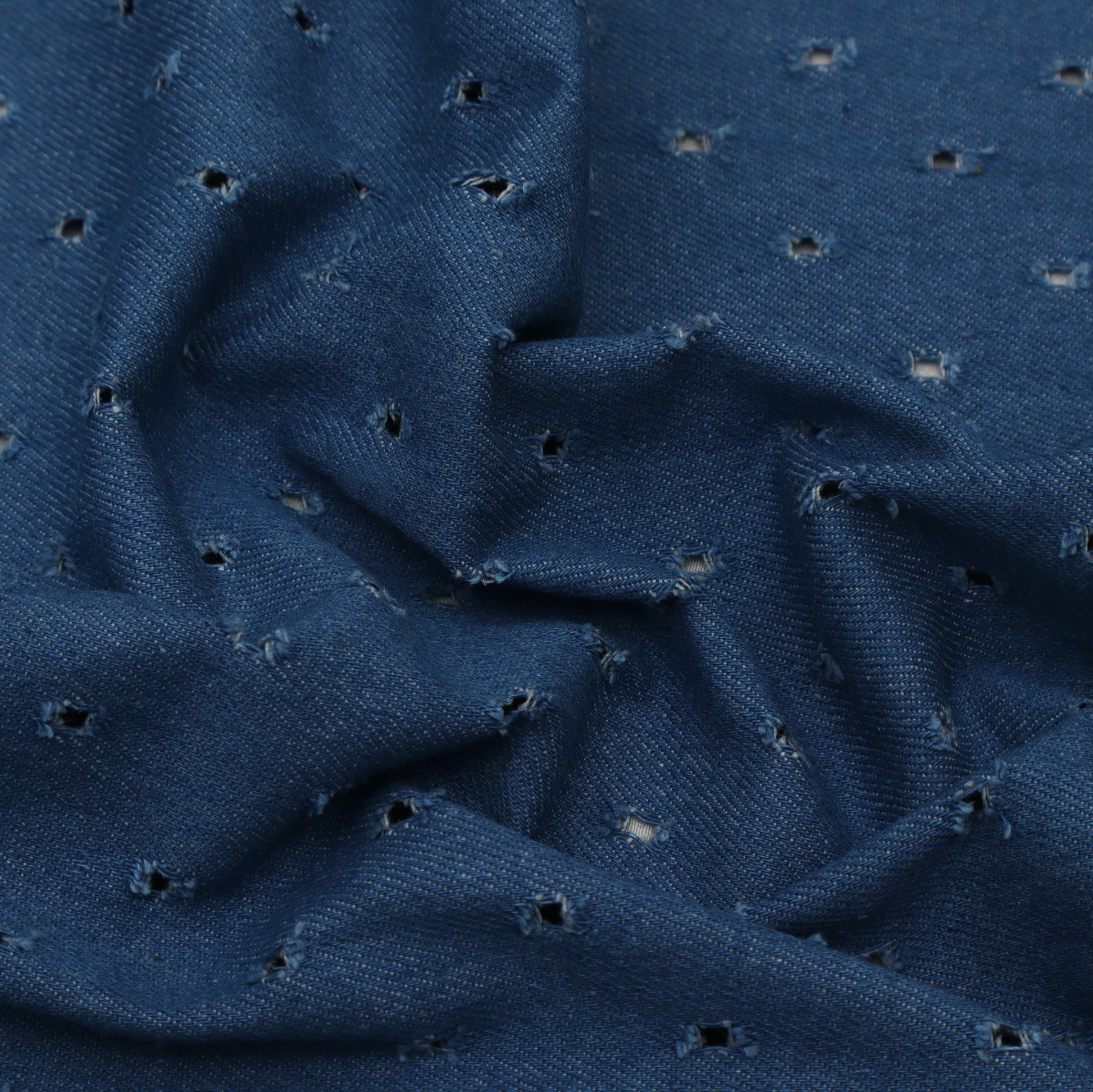 Experience the craftsmanship of our Denim Embroidery Fabric. Made with high-quality denim and intricate embroidery, this fabric is perfect for adding a touch of elegance to any outfit. With a unique combination of durability and sophistication, this fabric is a must-have for any fashion-forward individual.