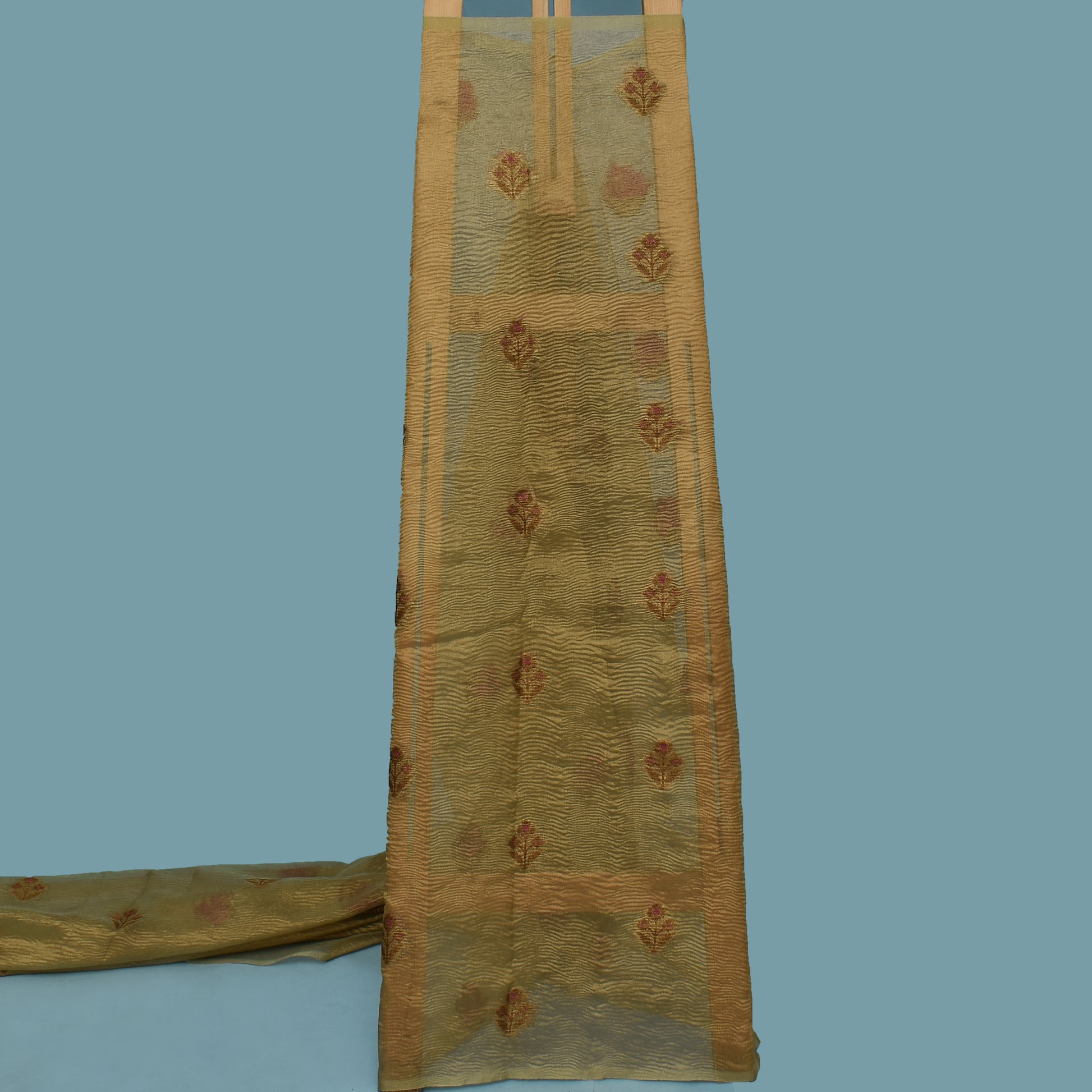 This high-quality Dirt Brown Color Crush Tissue Boota Fabric is perfect for crafting projects and garment design. With its durable yet soft texture, this fabric provides both aesthetics and functionality. Made from 100% cotton, it is a great choice for eco-friendly and sustainable fashion pieces.