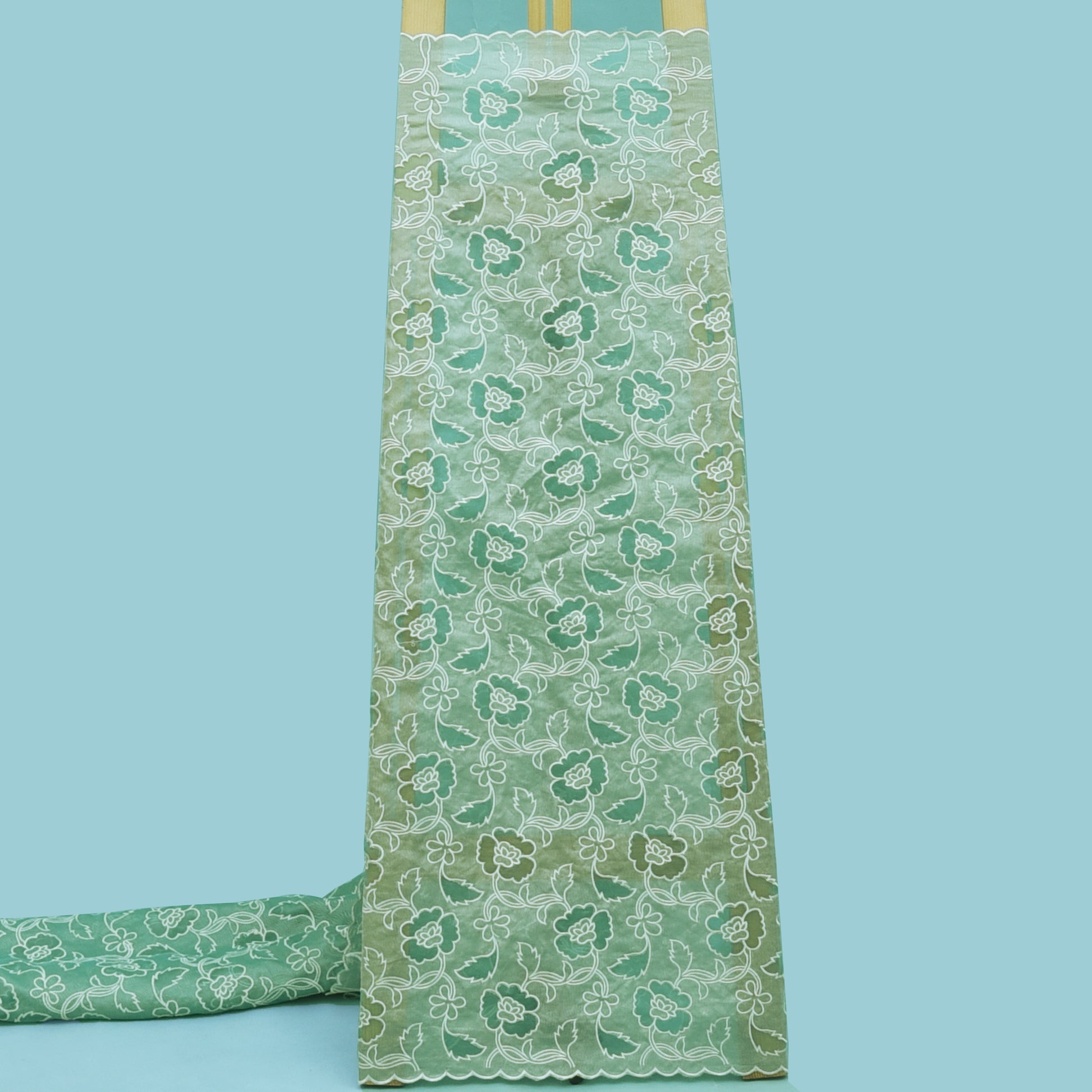 This Organza Tissue Embroidery Fabric is made of high-quality materials, featuring delicate embroidery that adds an elegant touch to any garment. The transparent organza fabric is lightweight and airy, making it perfect for creating feminine and ethereal looks. Elevate your wardrobe with this luxurious fabric.