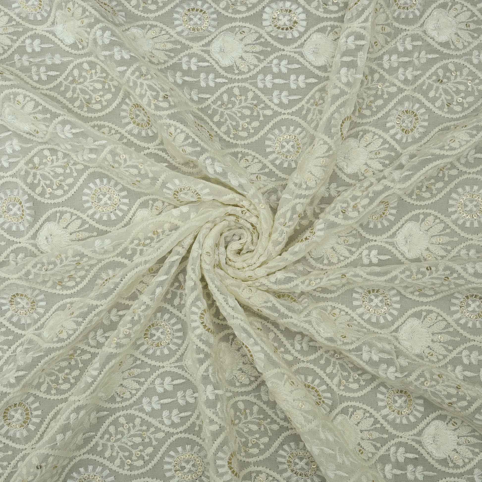 Expertly crafted and versatile, our Dyeable Georgette Embroidery Fabric is a must-have for any fashion enthusiast. Made with premium quality materials, this fabric is perfect for adding elegant and intricate details to your designs. With its dyeable feature, you can easily customize the color to match your vision. Elevate your creations with our top-of-the-line fabric.