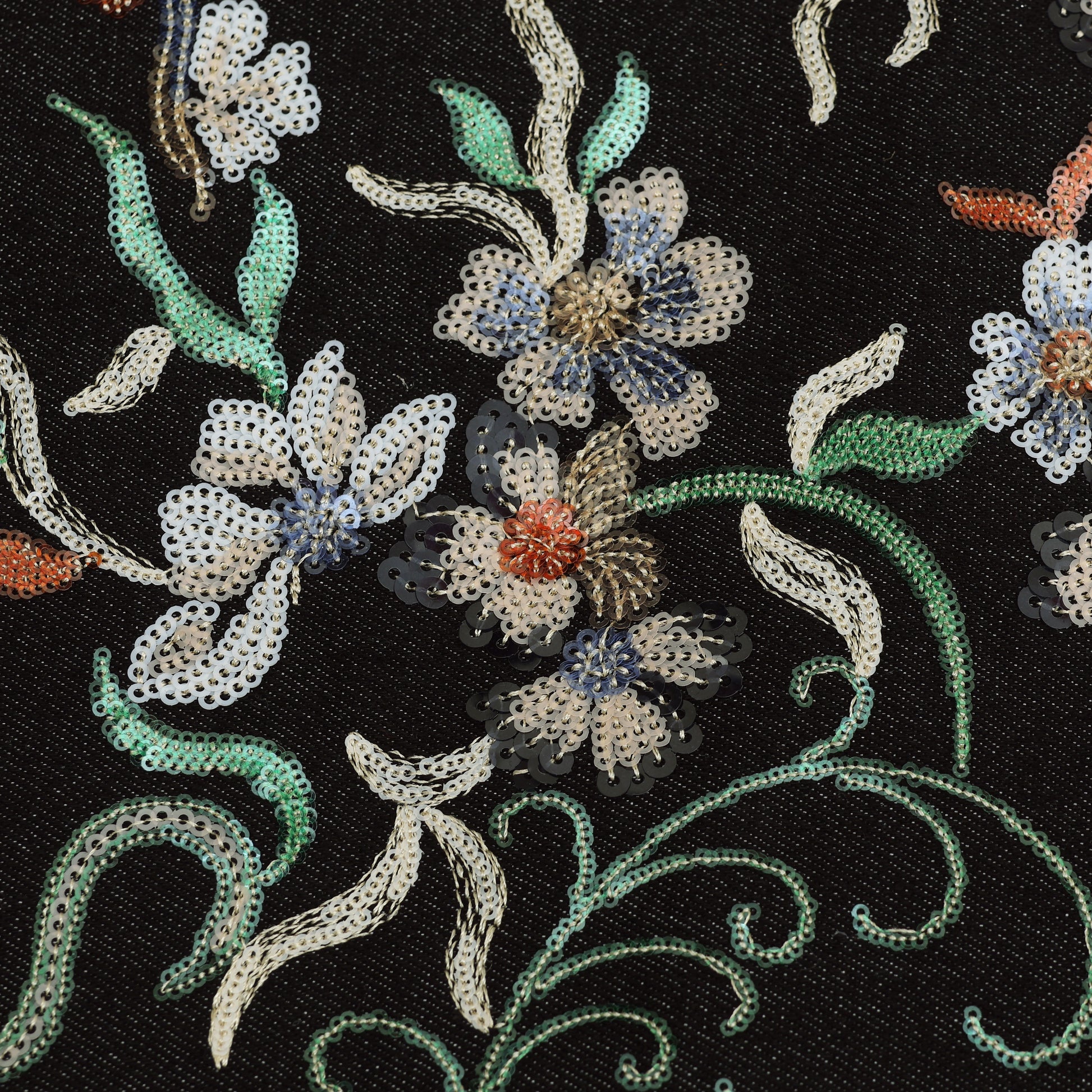 Ideal for dresses, jackets, skirts, coord sets, kurtas, tops, and contemporary fusion outfits, Floral Sequins Denim Embroidery Fabric is perfect for festive occasions, parties, and stylish casual looks that demand a touch of glamour.