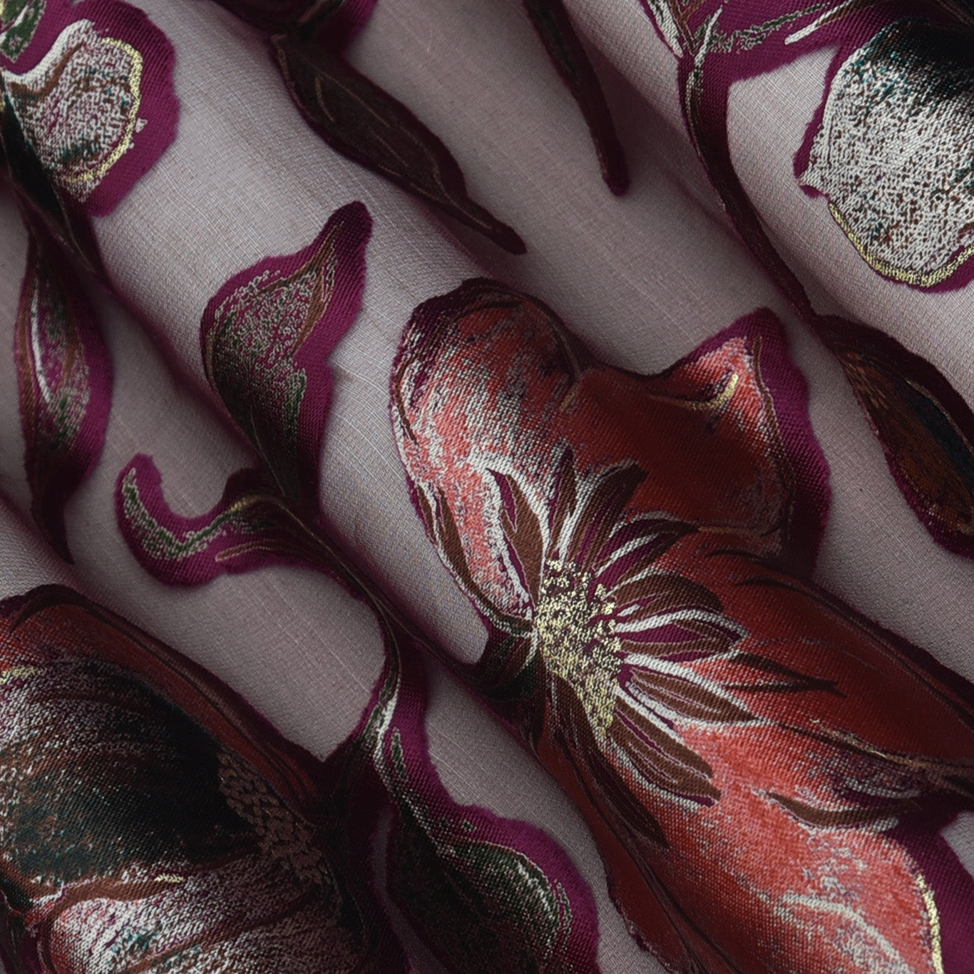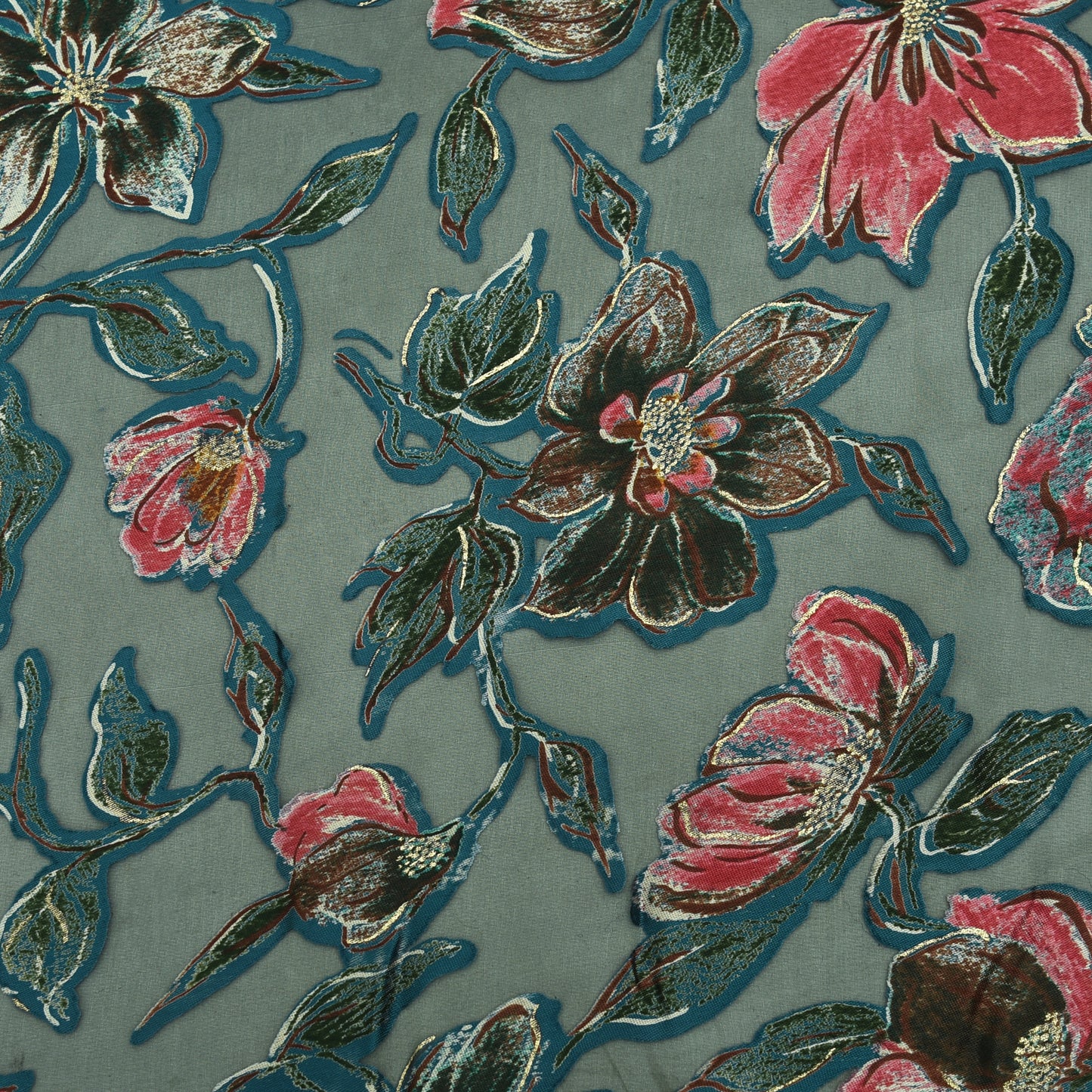 Expertly designed and crafted, this Floral Tissue Foil Organza Print Fabric is perfect for adding a touch of elegance to any project. Its delicate floral print and tissue foil material create a beautiful and unique texture, perfect for creating eye-catching garments and accessories. Elevate your designs with this high-quality fabric.