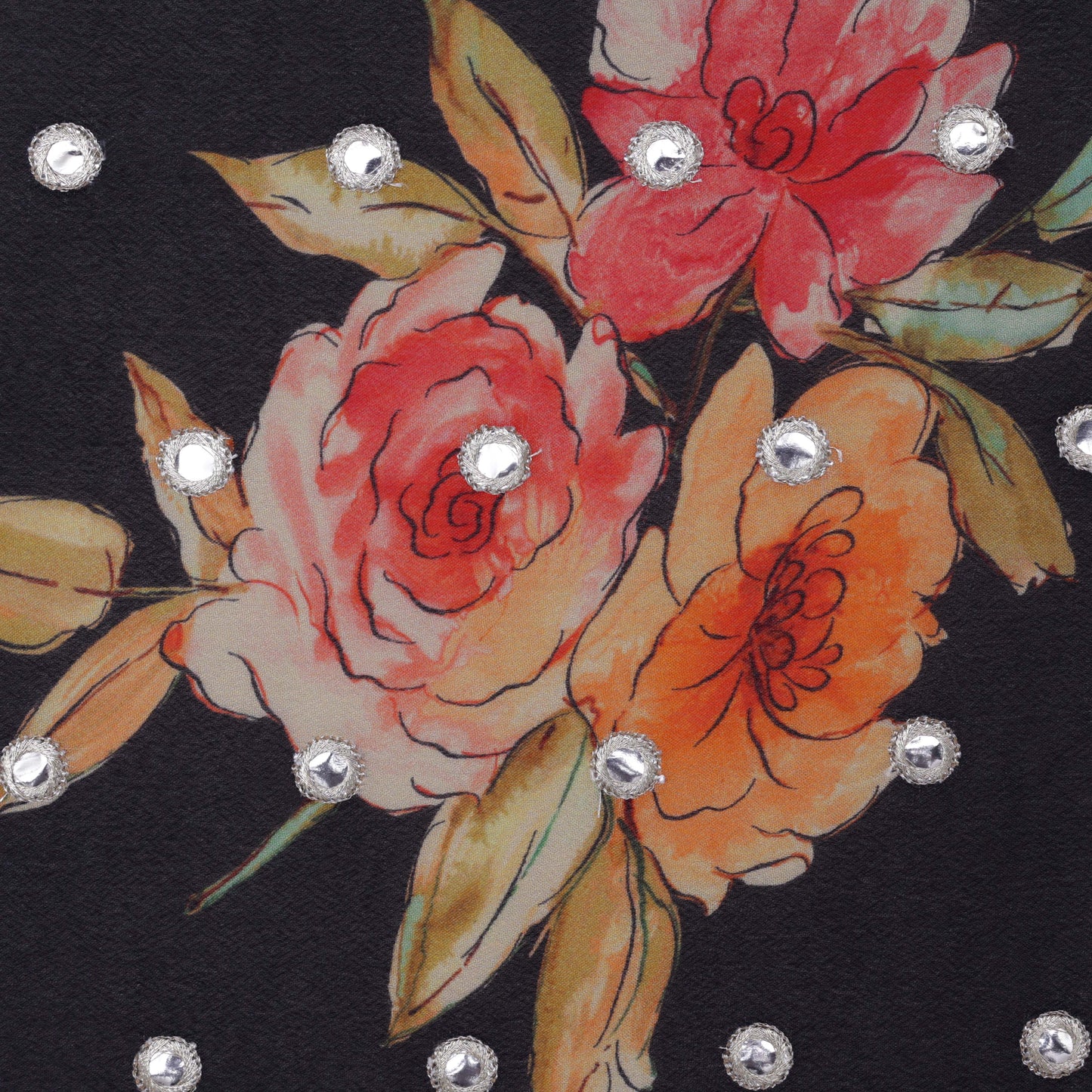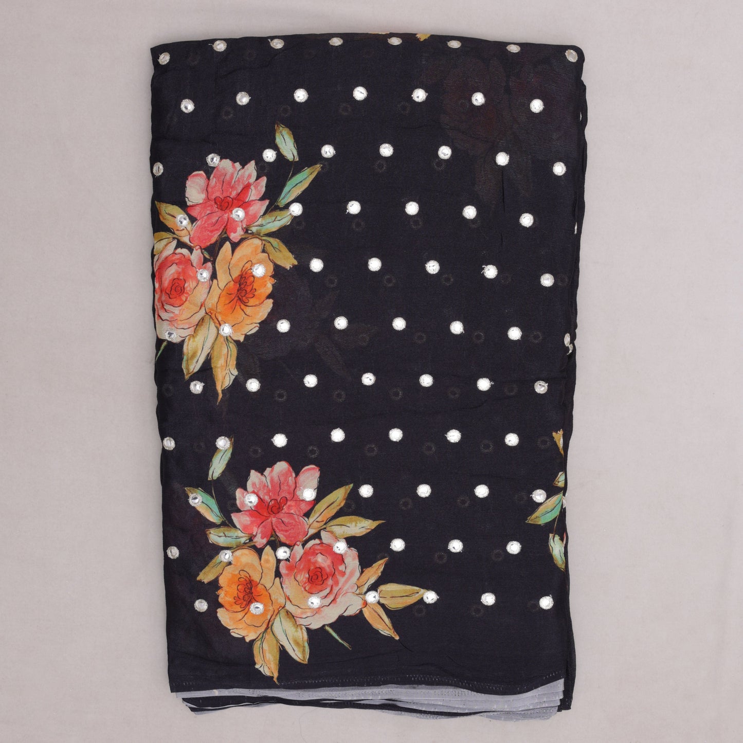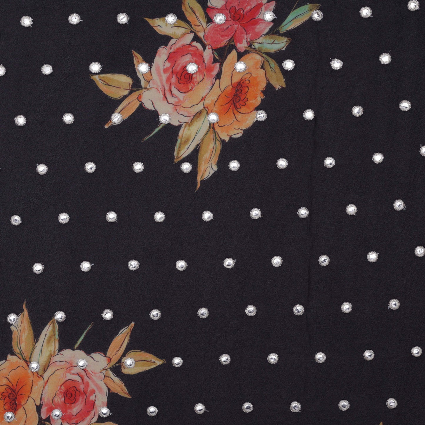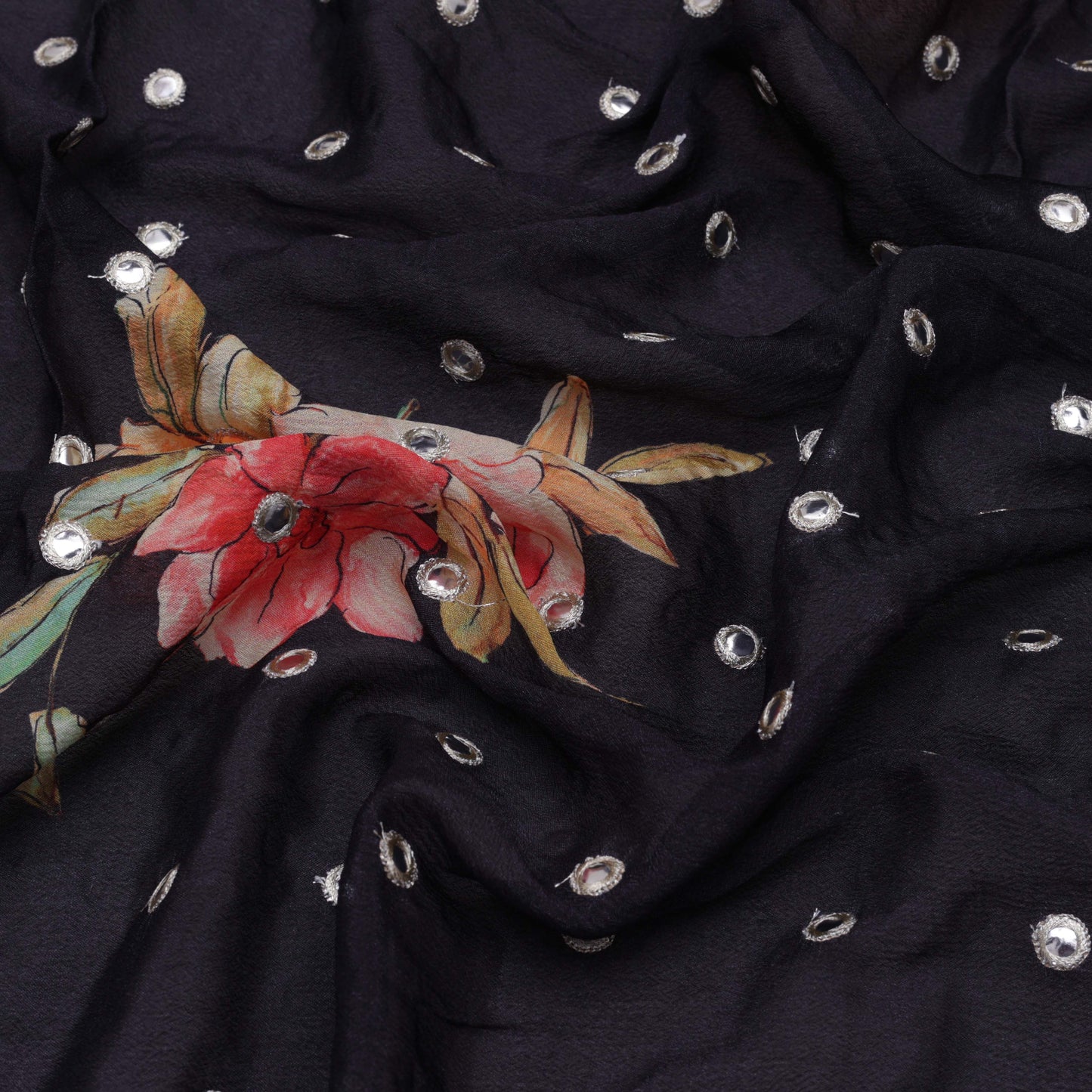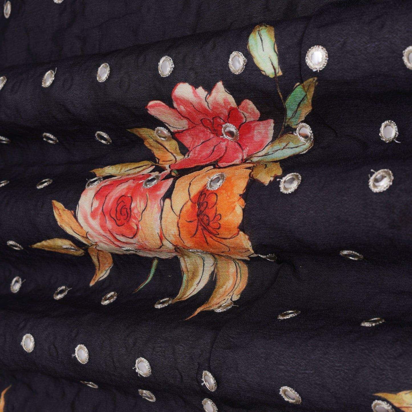Flower Print Chinon Chiffon Mirror Work Fabric