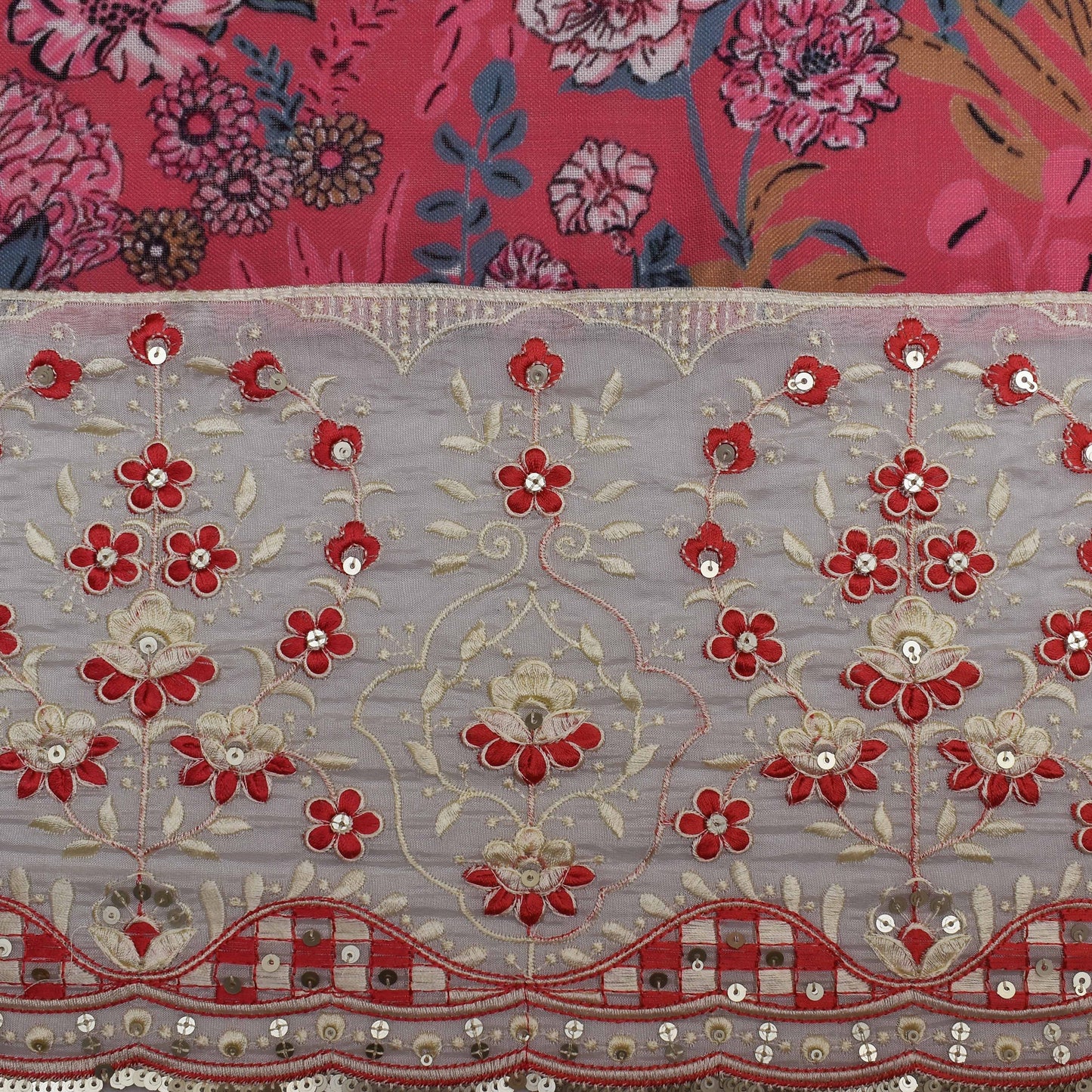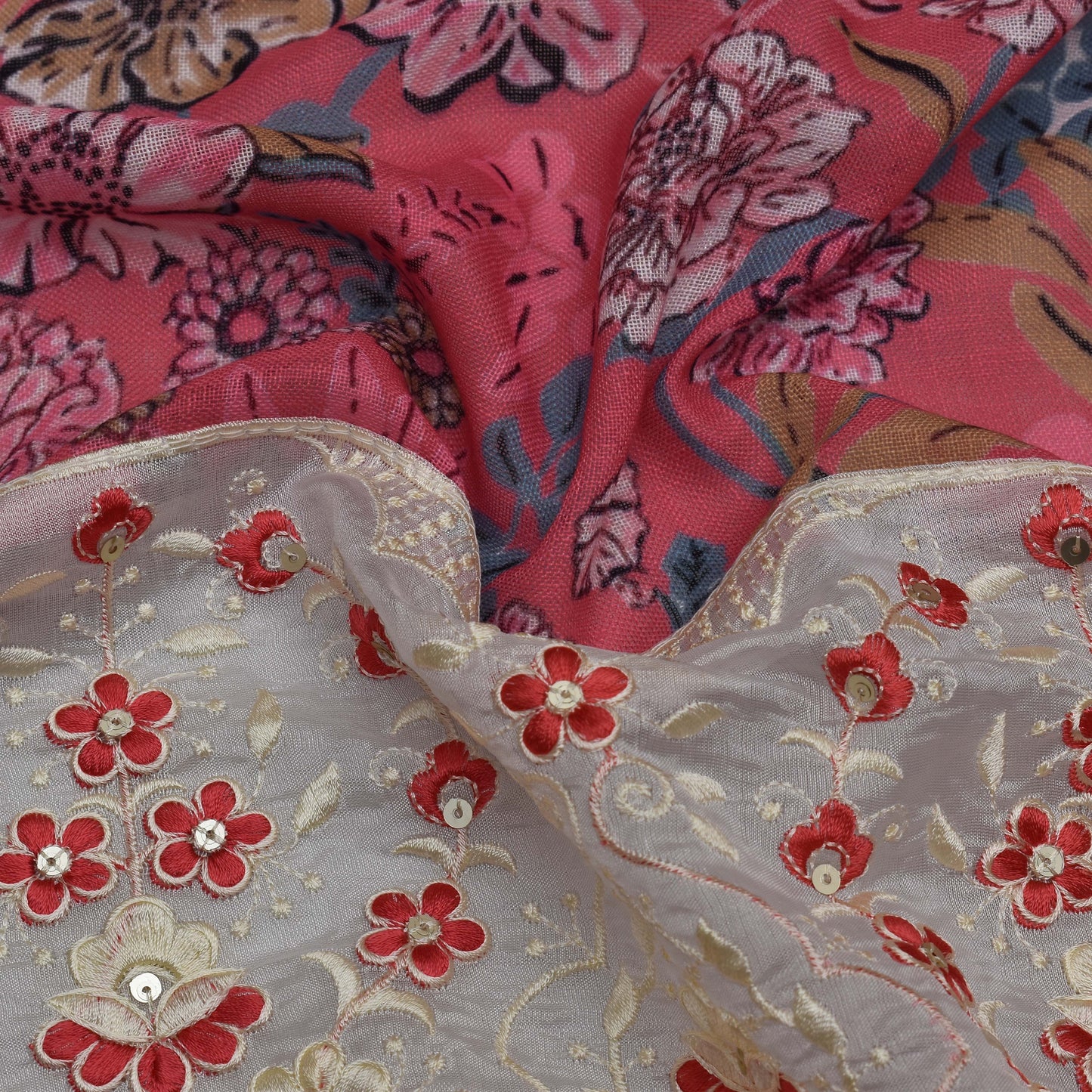 This Gajri Color Linen Print Border Embroidery Fabric adds a touch of elegance to any project. Made from high quality linen, this fabric features a stunning Gajri color with a beautiful printed border and delicate embroidery details. Perfect for creating unique and sophisticated garments or home decor items.