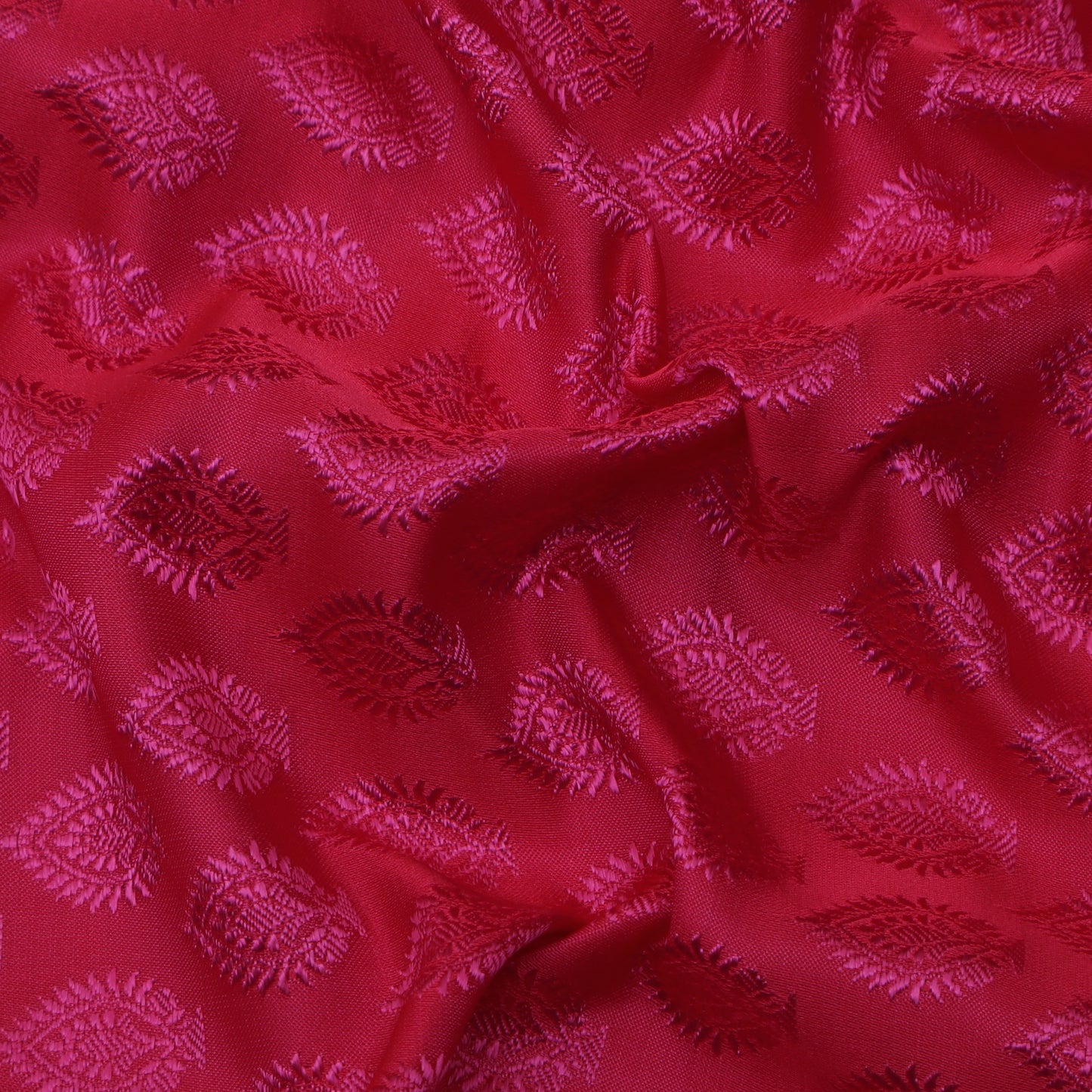 Enhance your fashion creations with our Gajri Color Tanchui Self Brocade Fabric. Made from high-quality material, this fabric offers a stunning blend of style and comfort. Its vibrant gajri color and intricate self brocade pattern make it a perfect choice for any occasion. Elevate your wardrobe with this exquisite fabric.