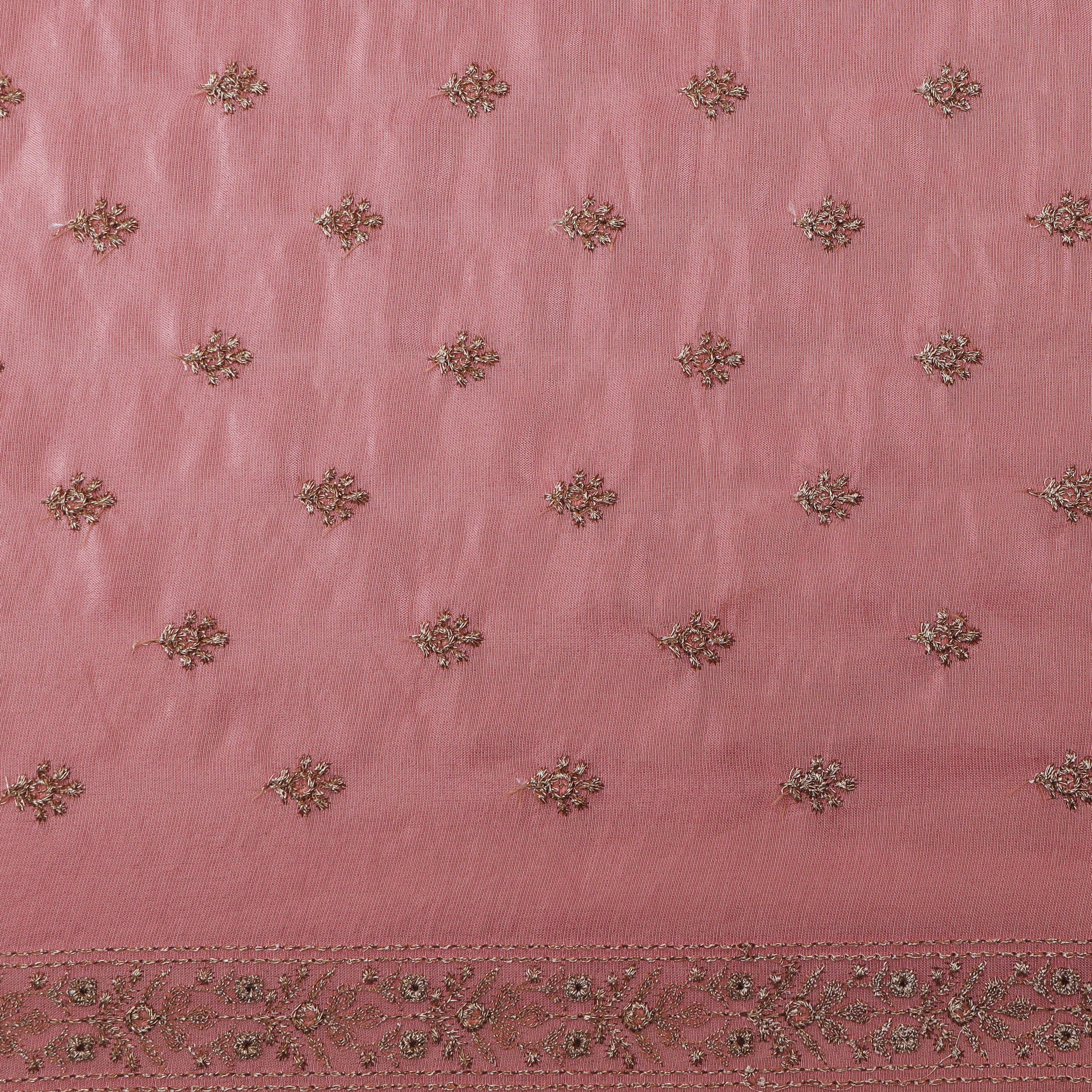 Gajri Color Tissue Booti Embroidery Fabric