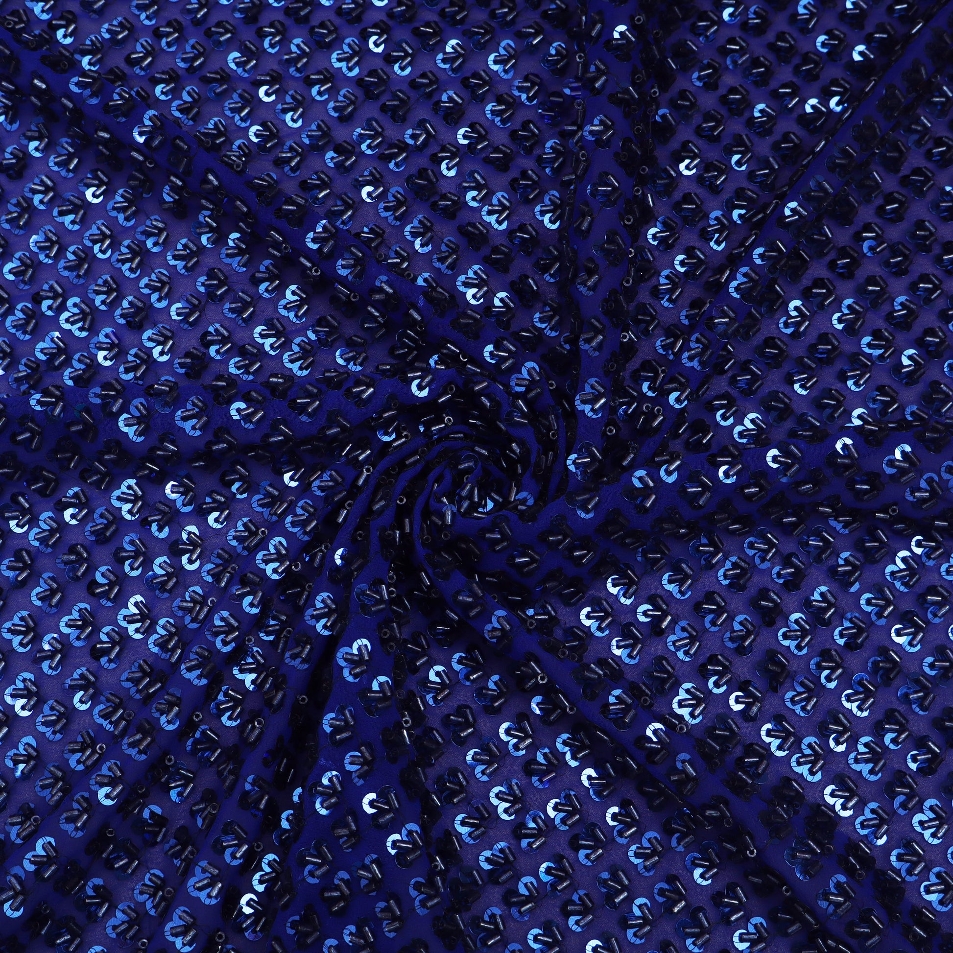 Add refined sparkle to your creations with our Georgette Cutdana Work Fabric, crafted on a soft and flowy georgette base and beautifully embellished with intricate cutdana embroidery. The delicate handwork adds texture and shimmer without weighing down the fabric, creating a graceful balance of elegance and glamour.