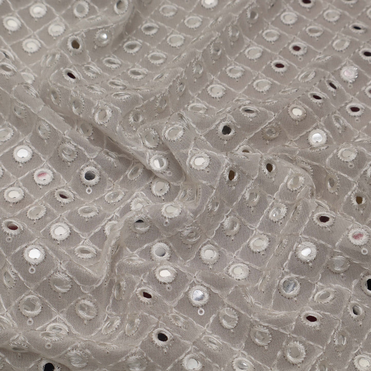 Elevate your designs with our Georgette Embroidery Fabric. Made from high-quality georgette material and adorned with intricate embroidery, this fabric adds a touch of elegance and sophistication to any project. With its lightweight and flowy texture, it is perfect for creating beautiful drapes and garments. Bring your vision to life with this luxurious fabric.