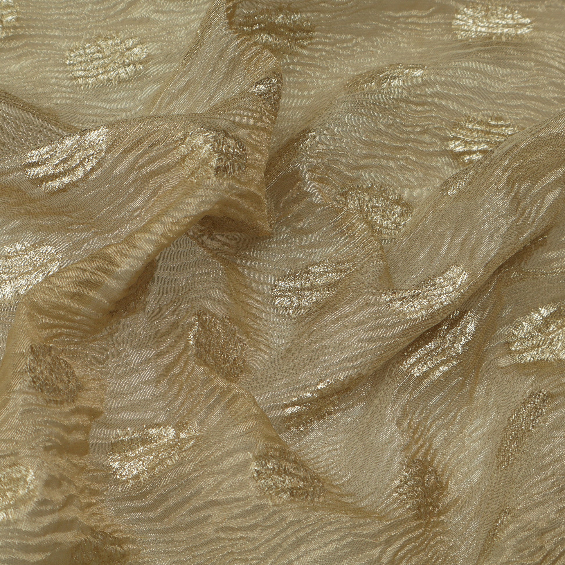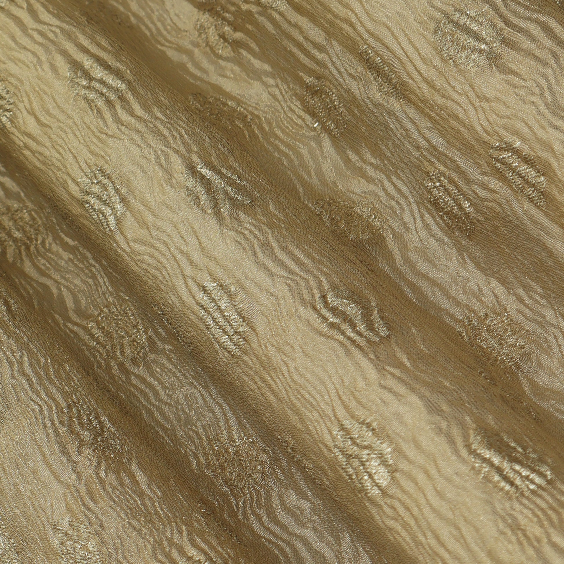 This Gold Color Crush Tissue Zari Fabric is perfect for adding a touch of elegance to any outfit. The luxurious fabric features a beautiful gold color and a crushed texture that adds depth and dimension. With its shimmering appearance, this fabric is sure to make a statement and elevate any garment.