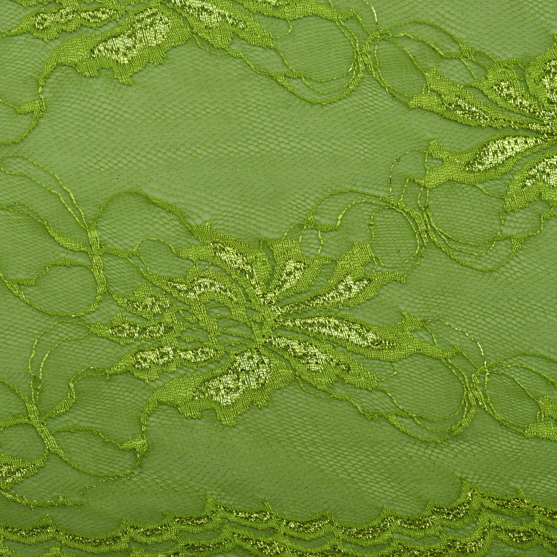 This green chantilly lace fabric offers a sophisticated and elegant touch to any garment or project. Made from high-quality materials, it boasts a delicate and intricate design that is perfect for adding a touch of sophistication to any outfit. Its rich green color adds a pop of color and allows for endless design possibilities. Perfect for those looking for a luxurious and high-quality fabric.