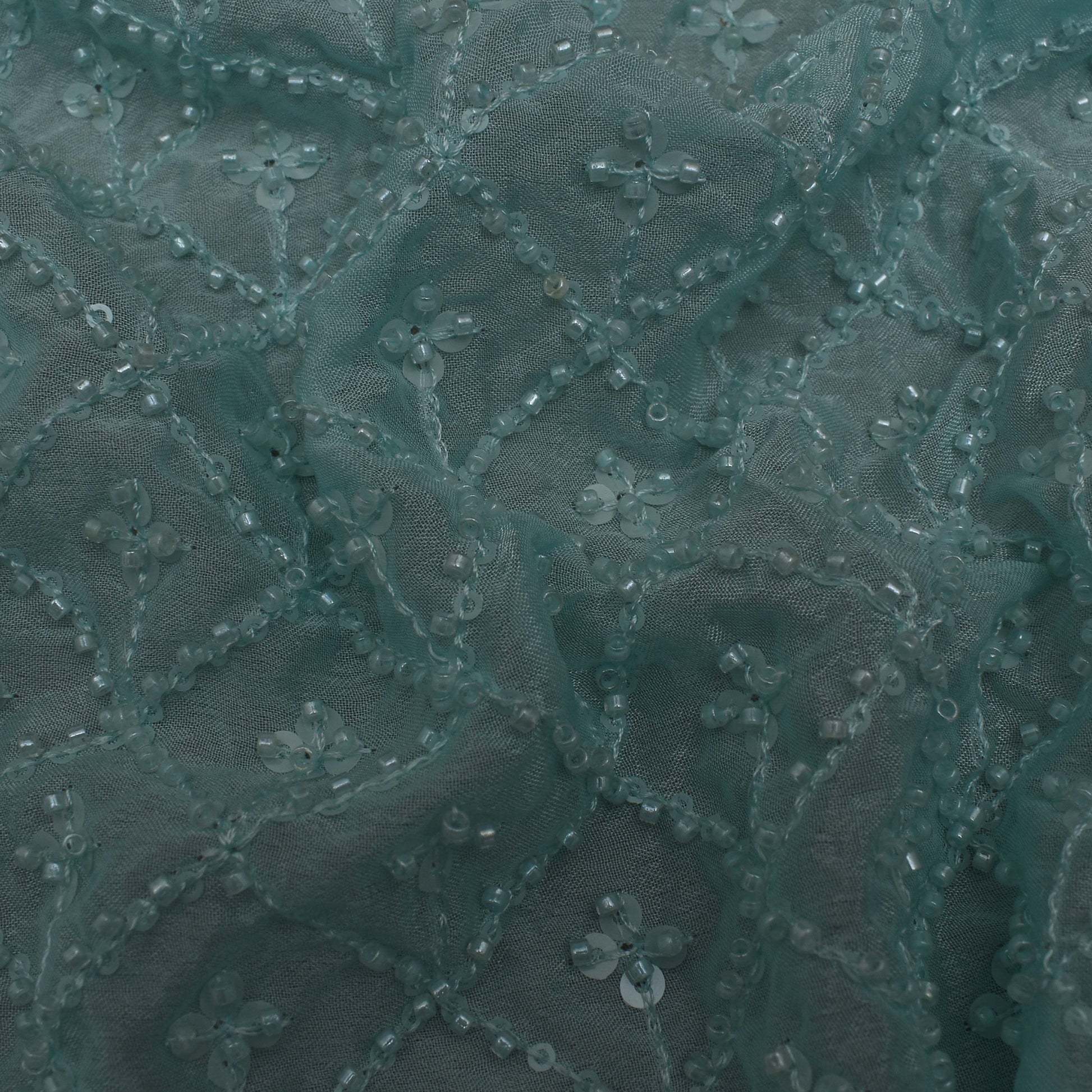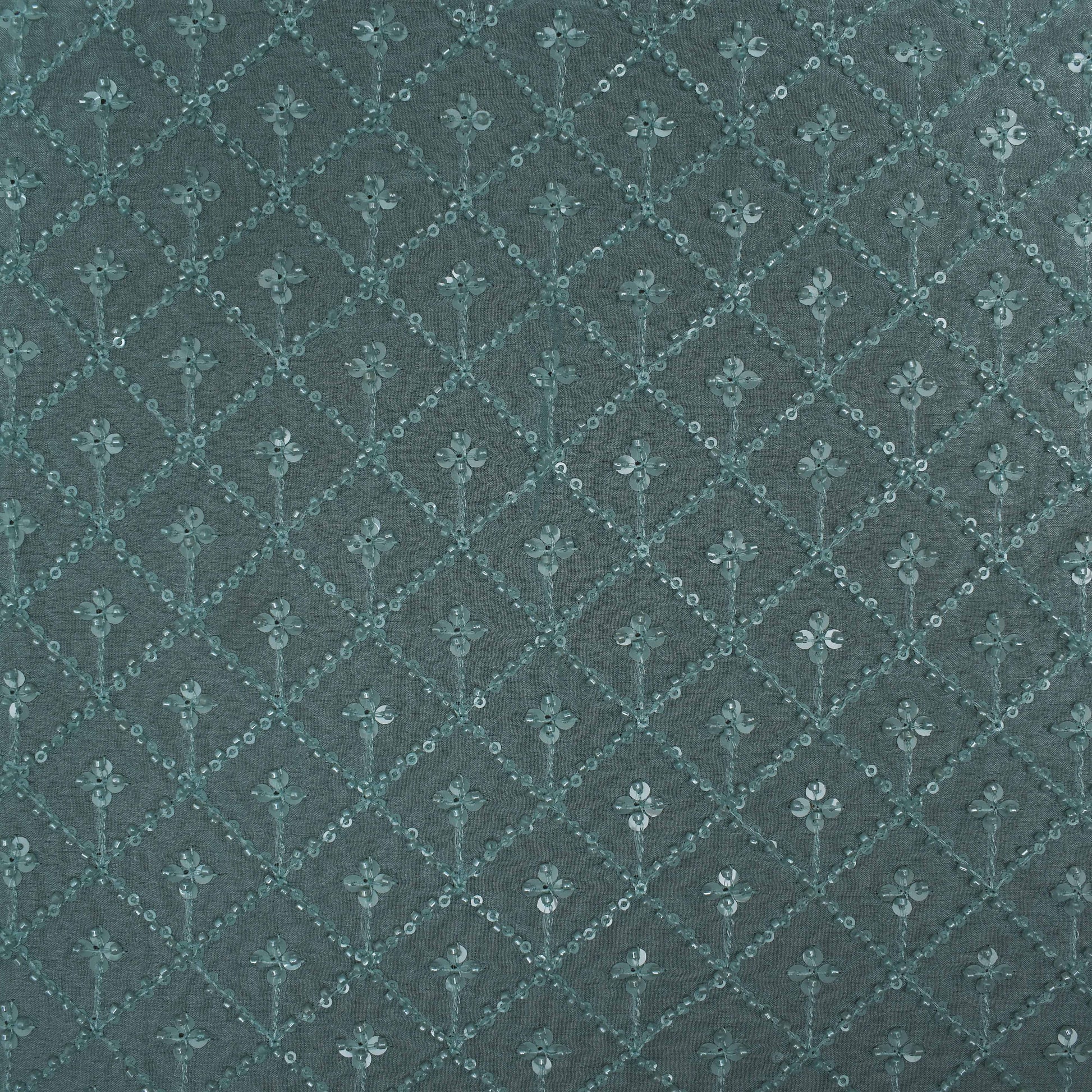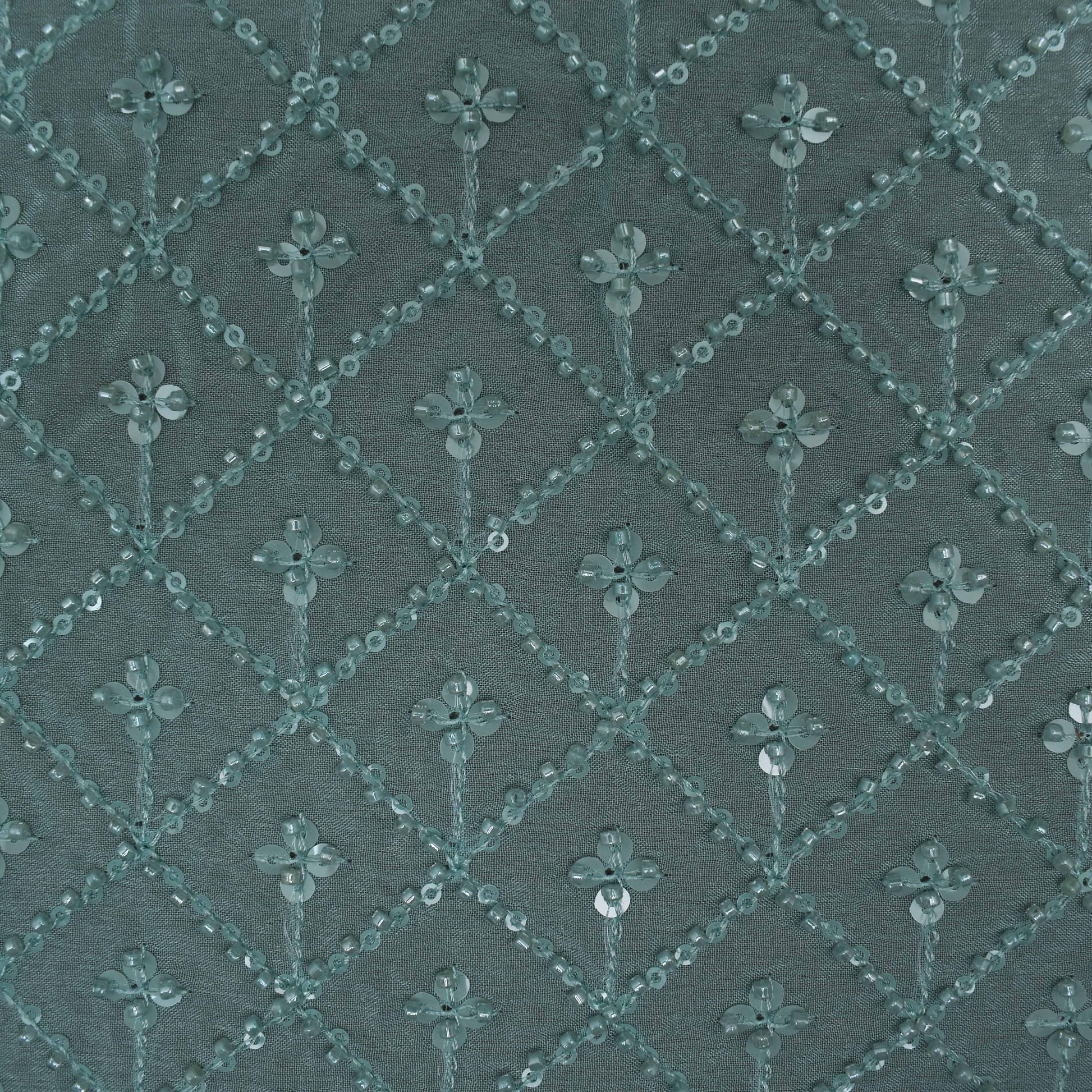 Green Color Chinon Embroidery Fabric