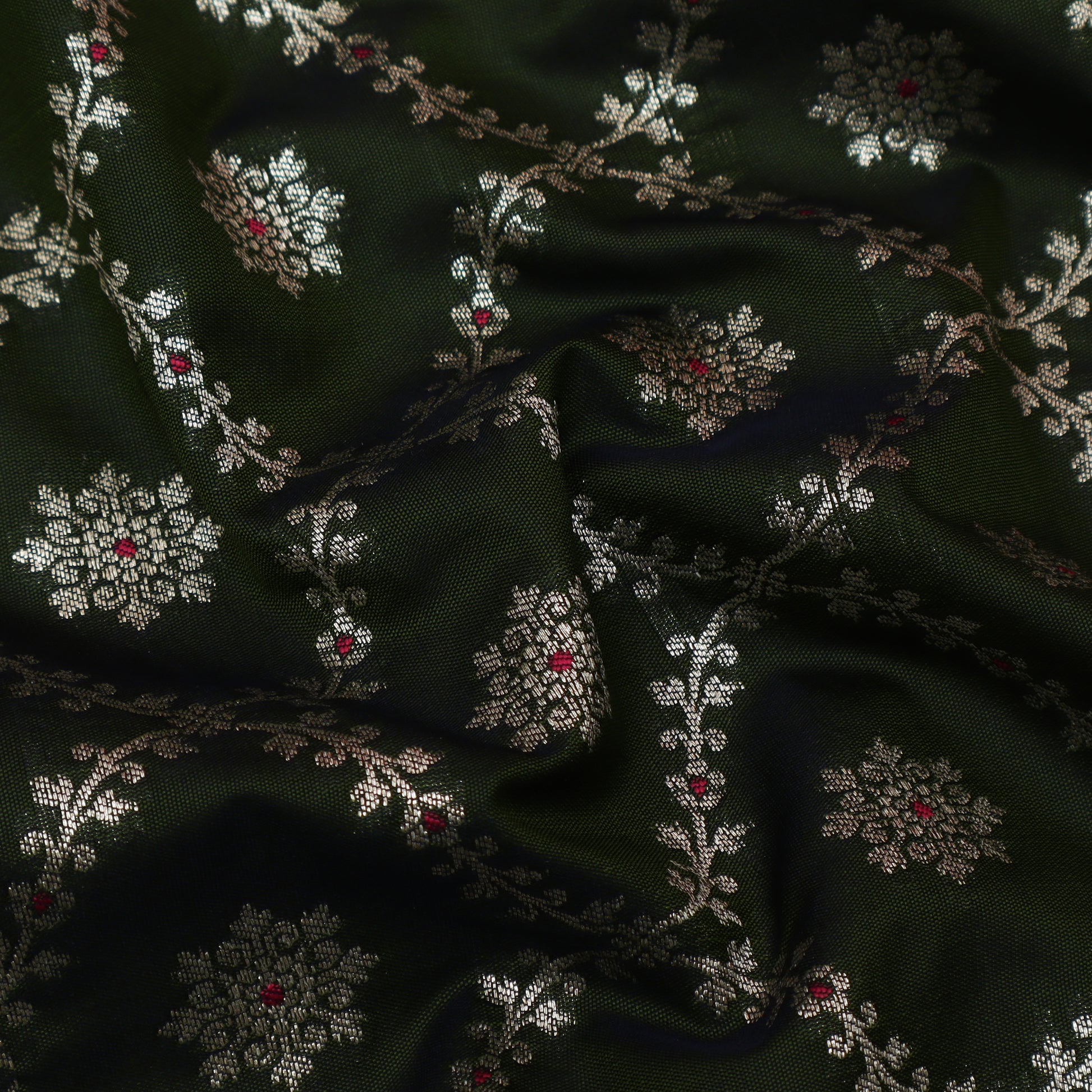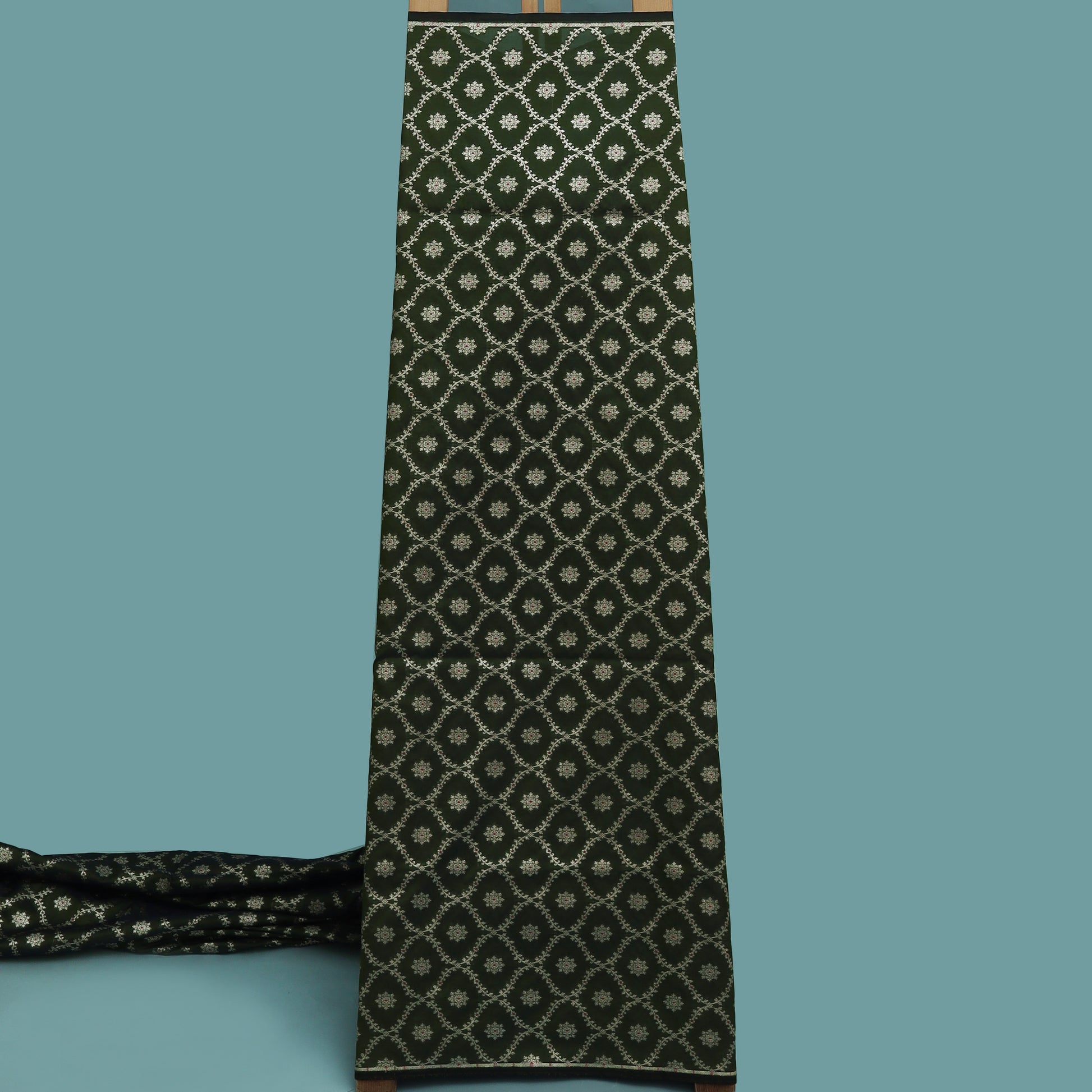 Experience the luxurious and regal feel of our Green Color Katan Meena Brocade Fabric. With its intricate brocade design and vibrant green hue, this fabric is perfect for creating elegant and sophisticated garments. Made from high-quality materials, it offers comfort, durability and a touch of glamour to any outfit.