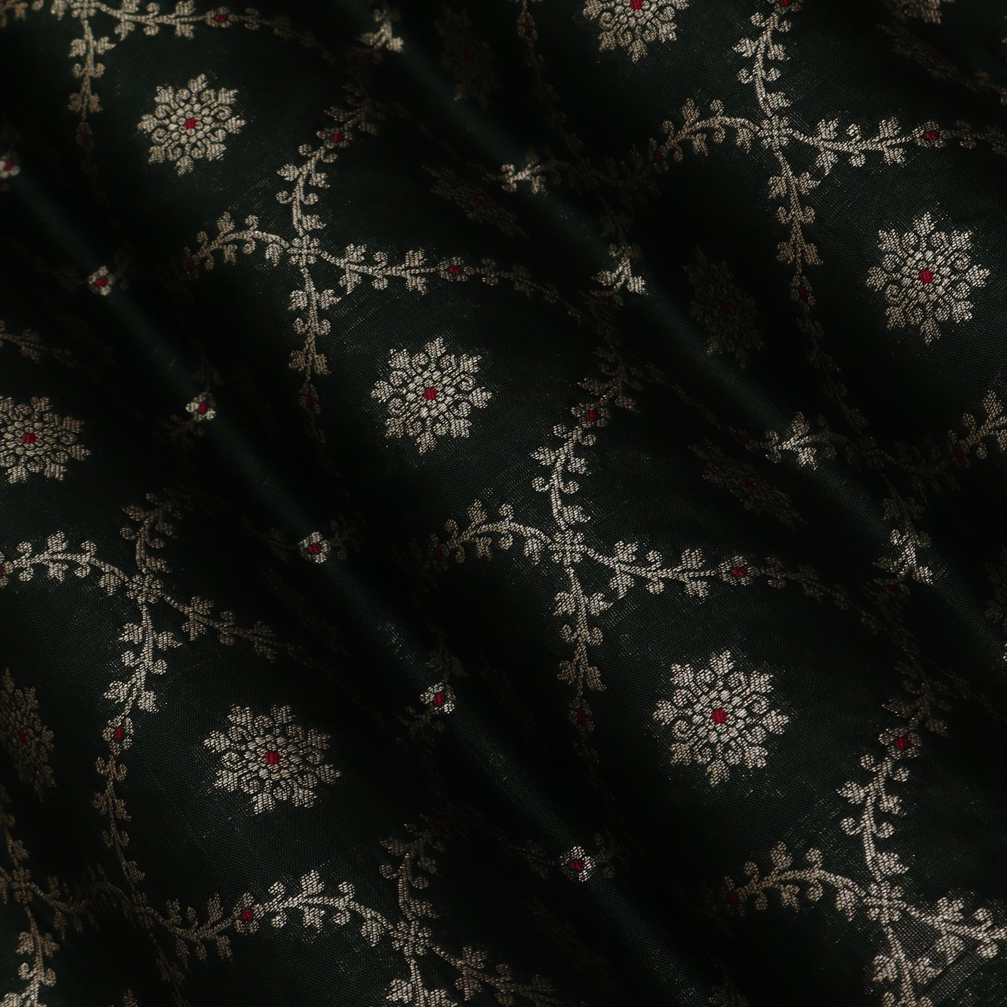 Olive Green Color Katan Meena Jaal Brocade Fabric