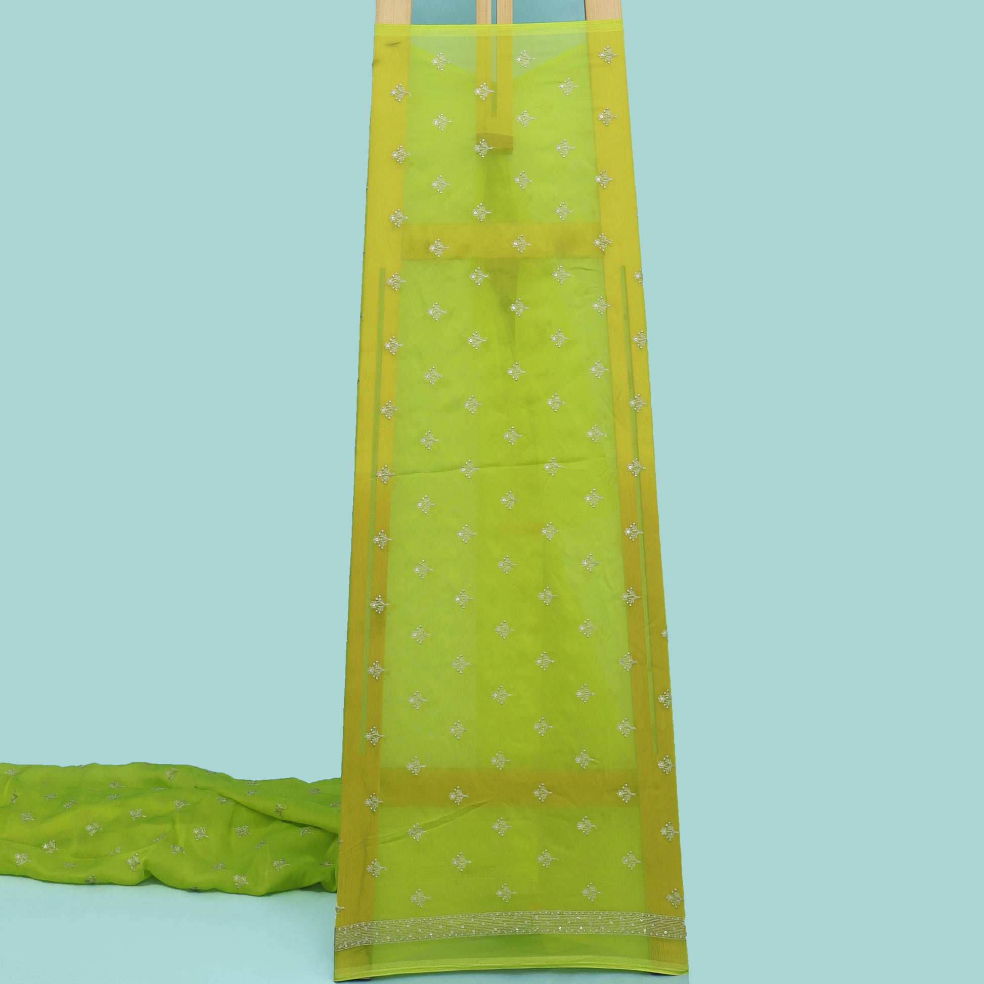 This Green Color Organza Booti Fabric features a beautiful, intricate booti design in a vibrant green color. Crafted from high-quality organza fabric, it offers a lightweight and airy feel, perfect for creating stunning garments and accessories. Enhance your projects with this unique and eye-catching fabric.