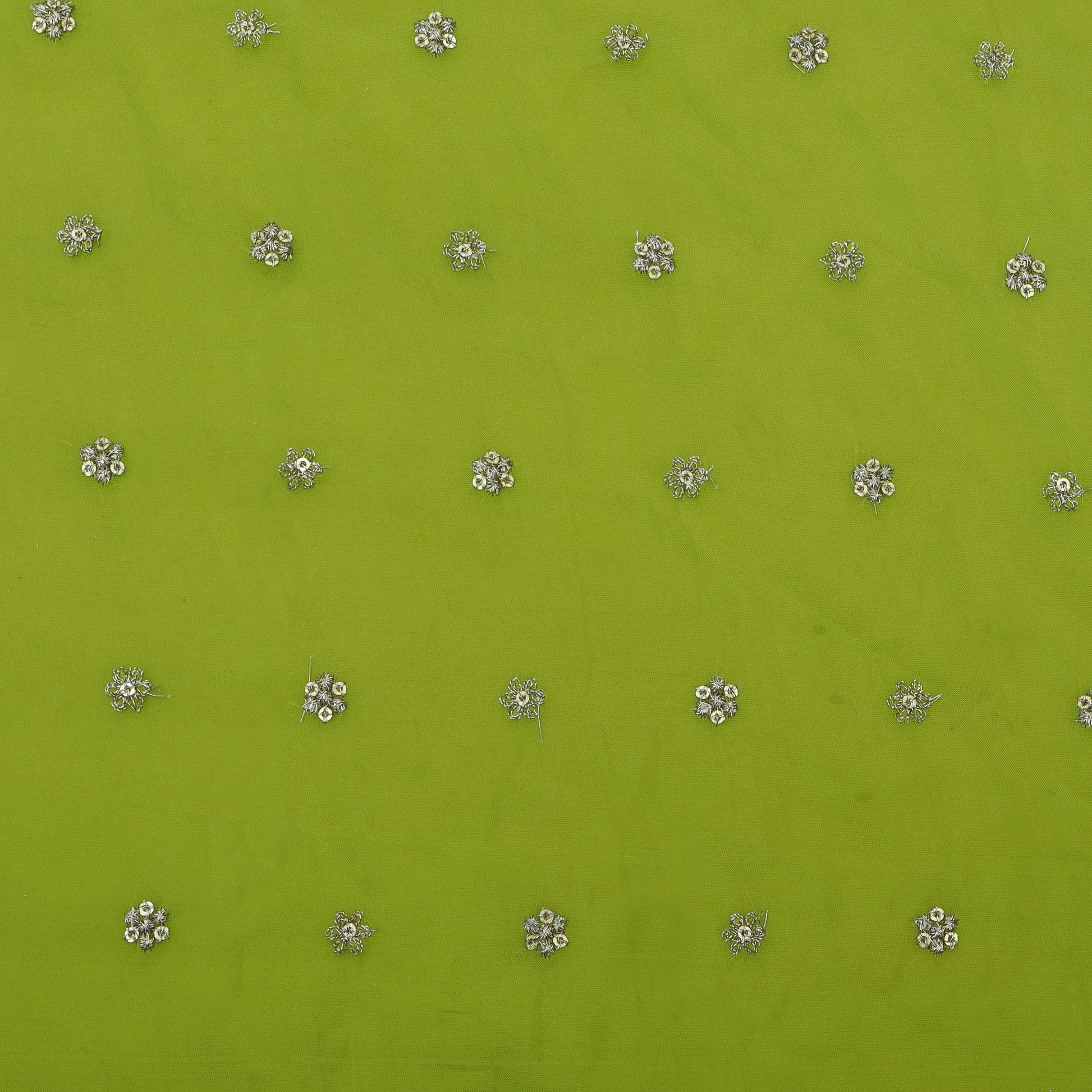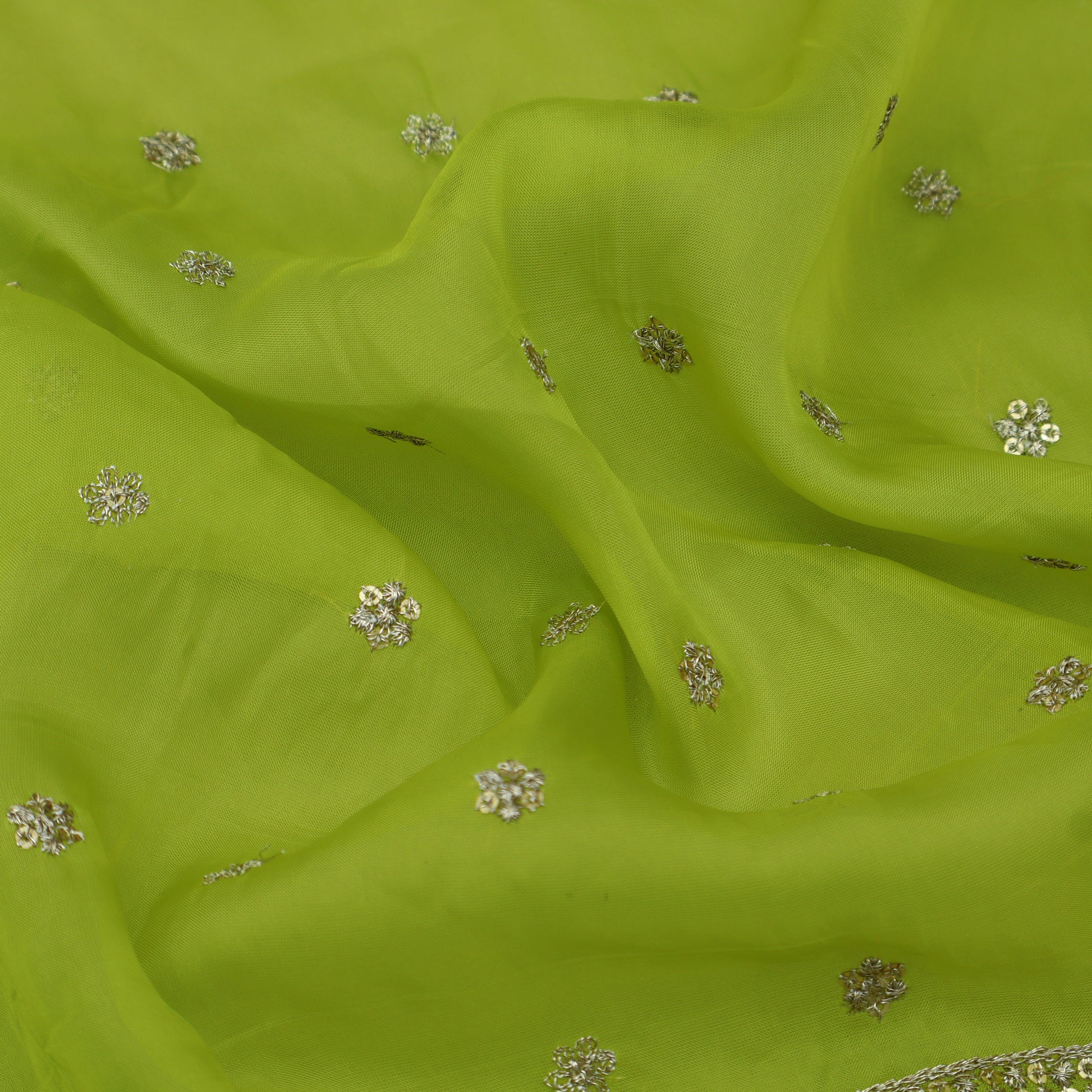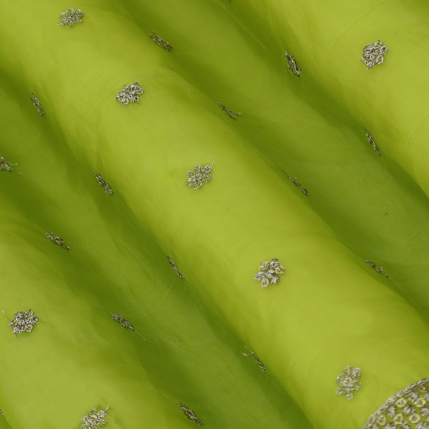 This green color organza booti fabric is both stylish and versatile. Made from high-quality materials, it offers a soft, lightweight texture and a delicate embroidered pattern. Perfect for creating elegant garments, this fabric is sure to add a touch of sophistication to any project.