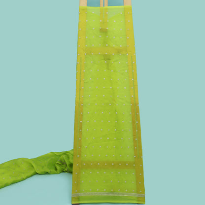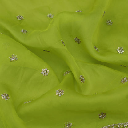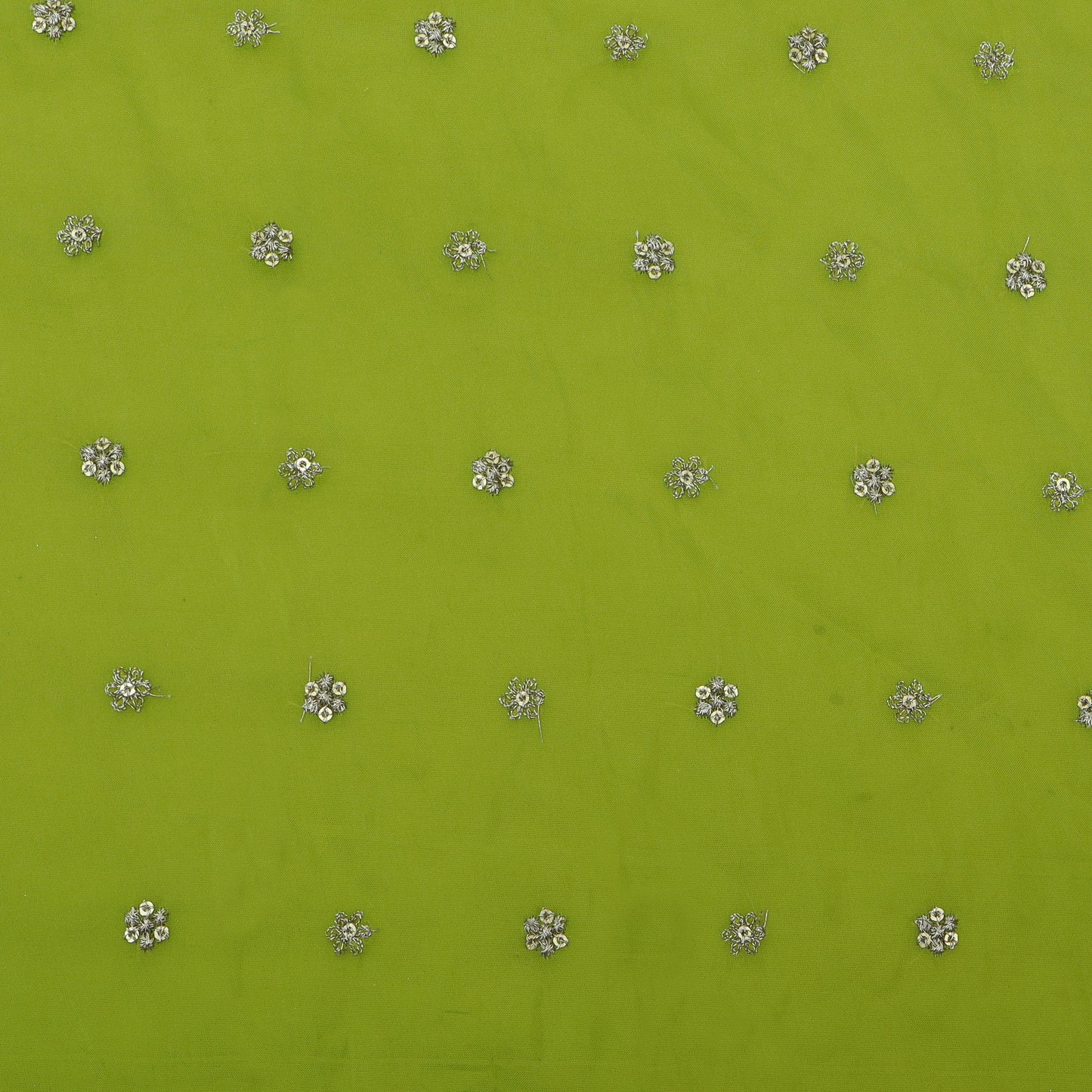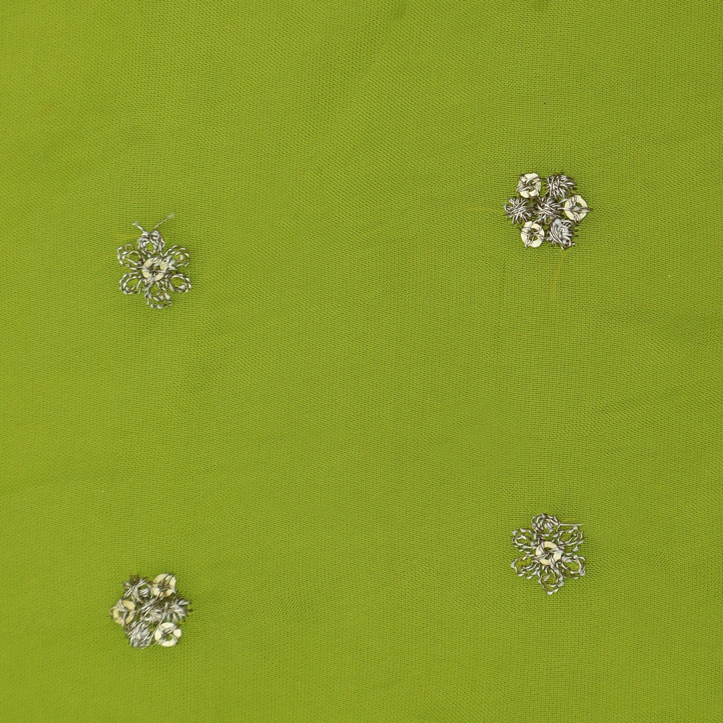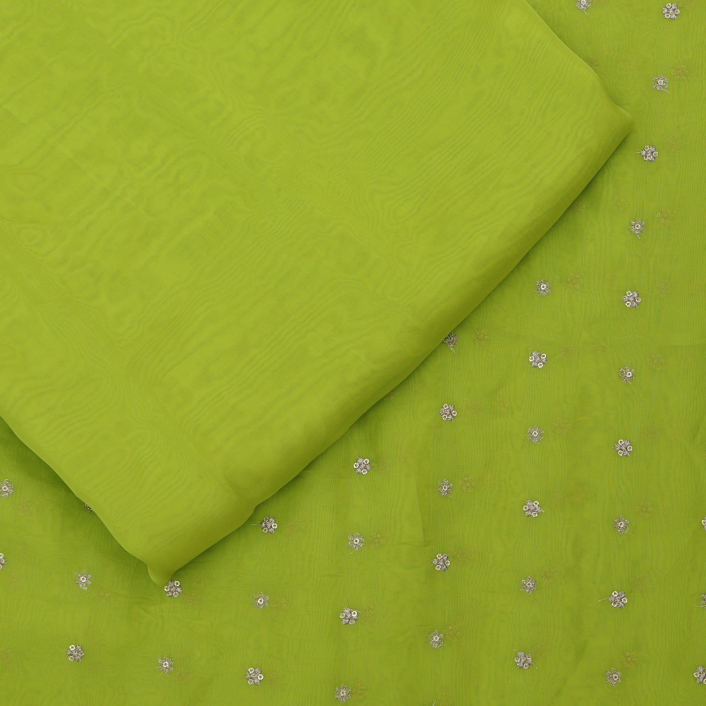 This green color organza booti fabric is both stylish and versatile. Made from high-quality materials, it offers a soft, lightweight texture and a delicate embroidered pattern. Perfect for creating elegant garments, this fabric is sure to add a touch of sophistication to any project.
