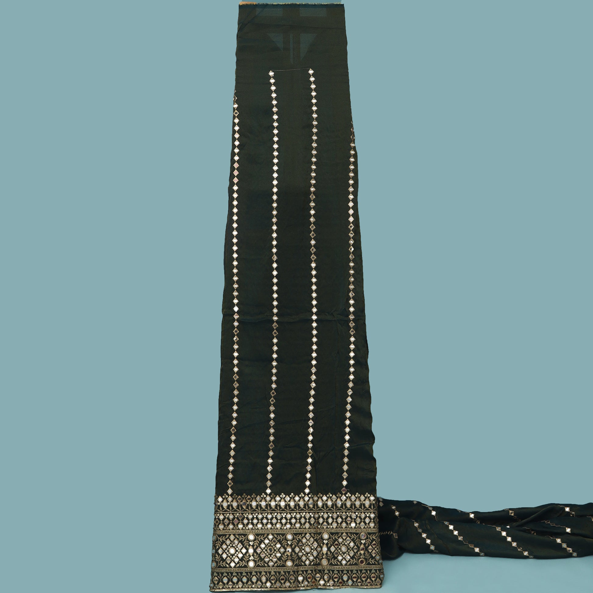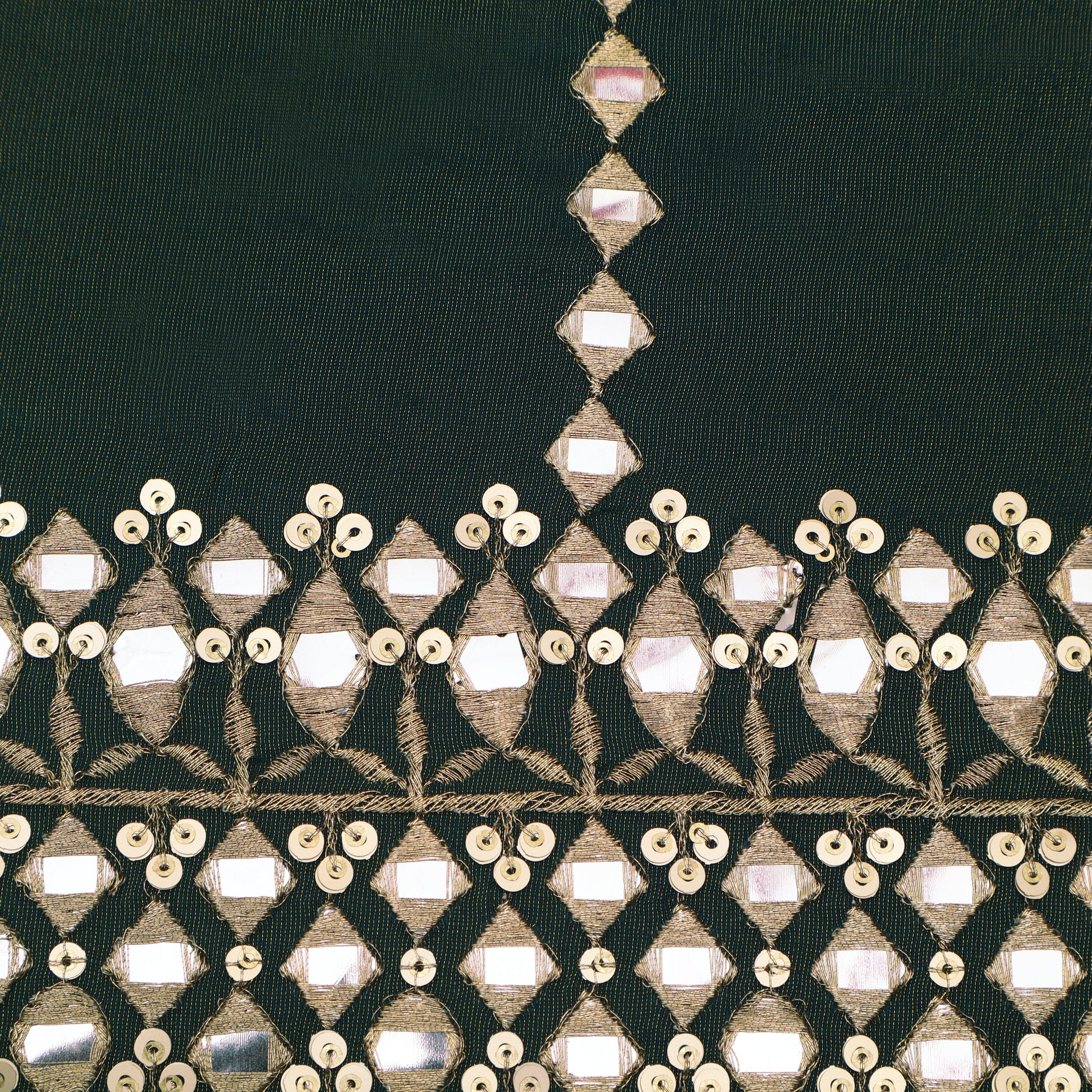 This Green Color Tissue Mirror Work fabric is expertly crafted and perfect for adding a touch of elegance to any project. Made with high-quality materials, it offers vibrant color and delicate mirror work, bringing a unique and luxurious feel to your designs. Elevate your creations with this stunning fabric.