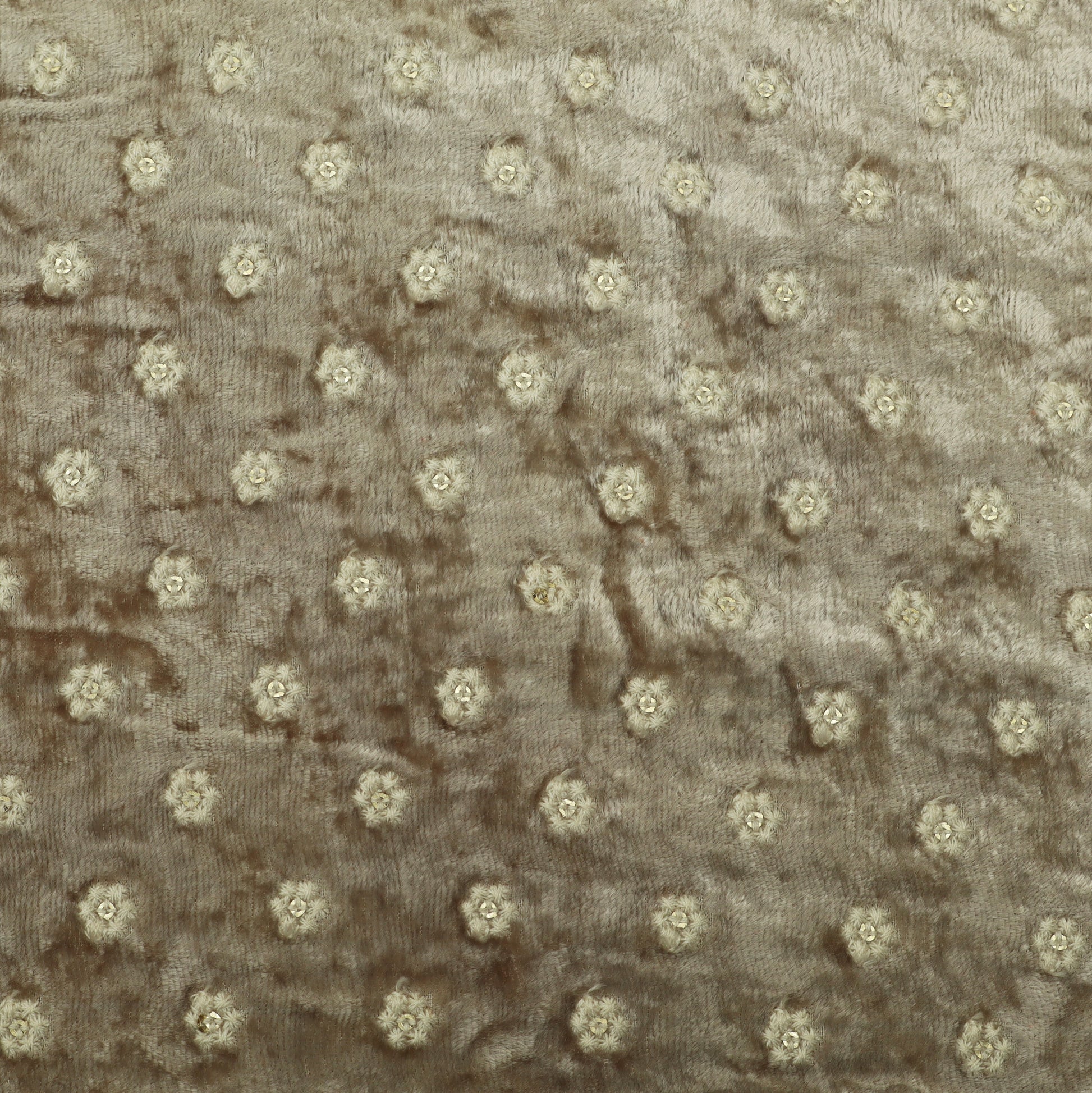 Expertly crafted with a luxurious velvet material in a unique grey brown color, this embroidery fabric adds elegance and texture to any project. Its softness and intricate embroidery make it perfect for creating statement pieces. Upgrade your designs with this high-quality fabric.