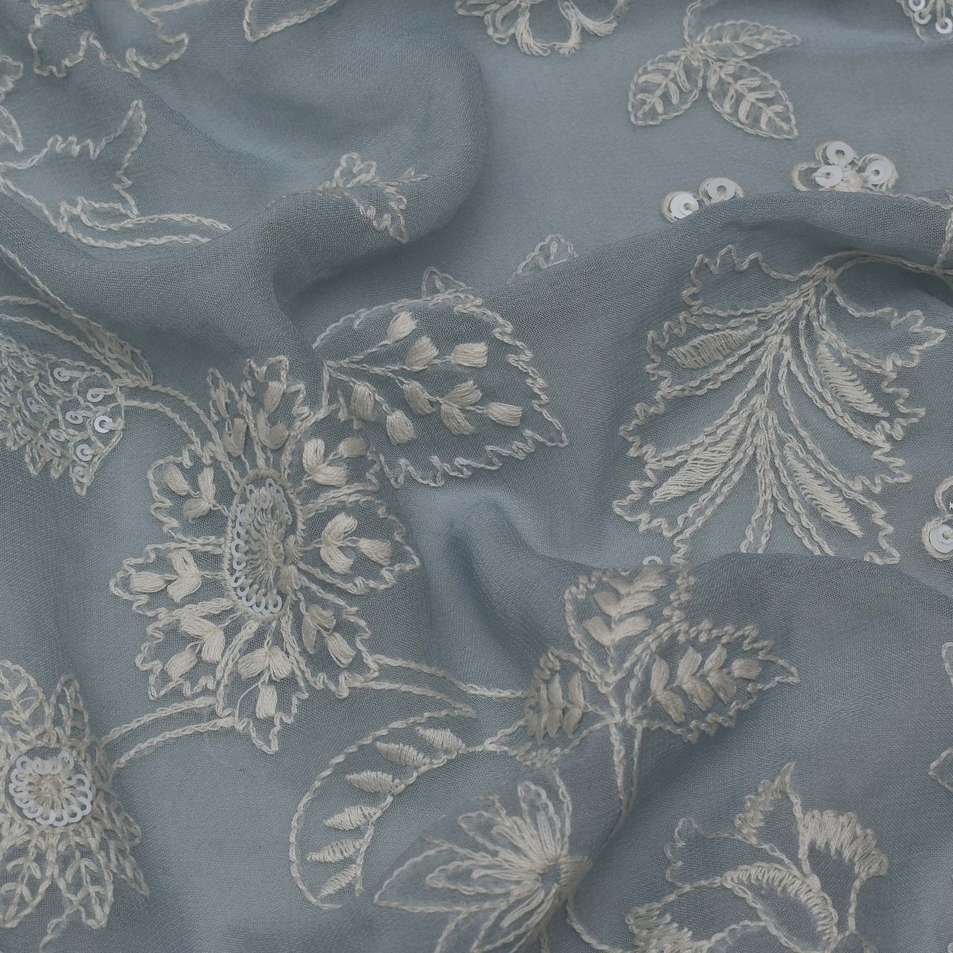 Grey Color Georgette Embroidery Fabric
