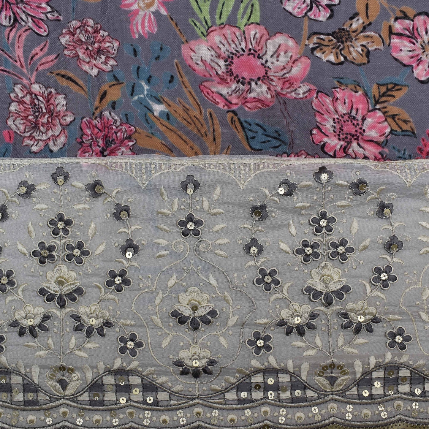 Introducing our Grey Color Linen Print Border Embroidery Fabric, perfect for adding a touch of elegance to any project. This high-quality fabric features beautiful embroidery and a stylish print border, adding texture and dimension to your designs. Made with durable linen, it's a versatile and luxurious choice for all your sewing needs.
