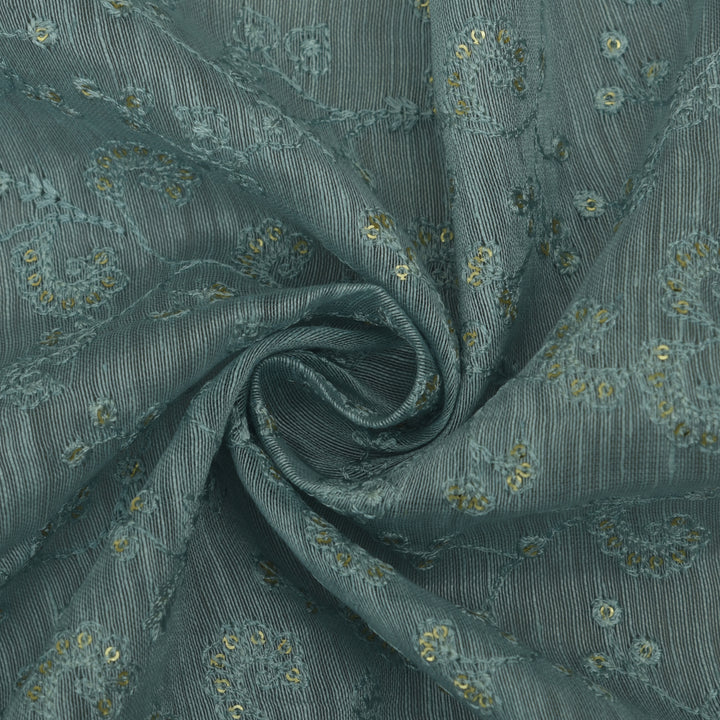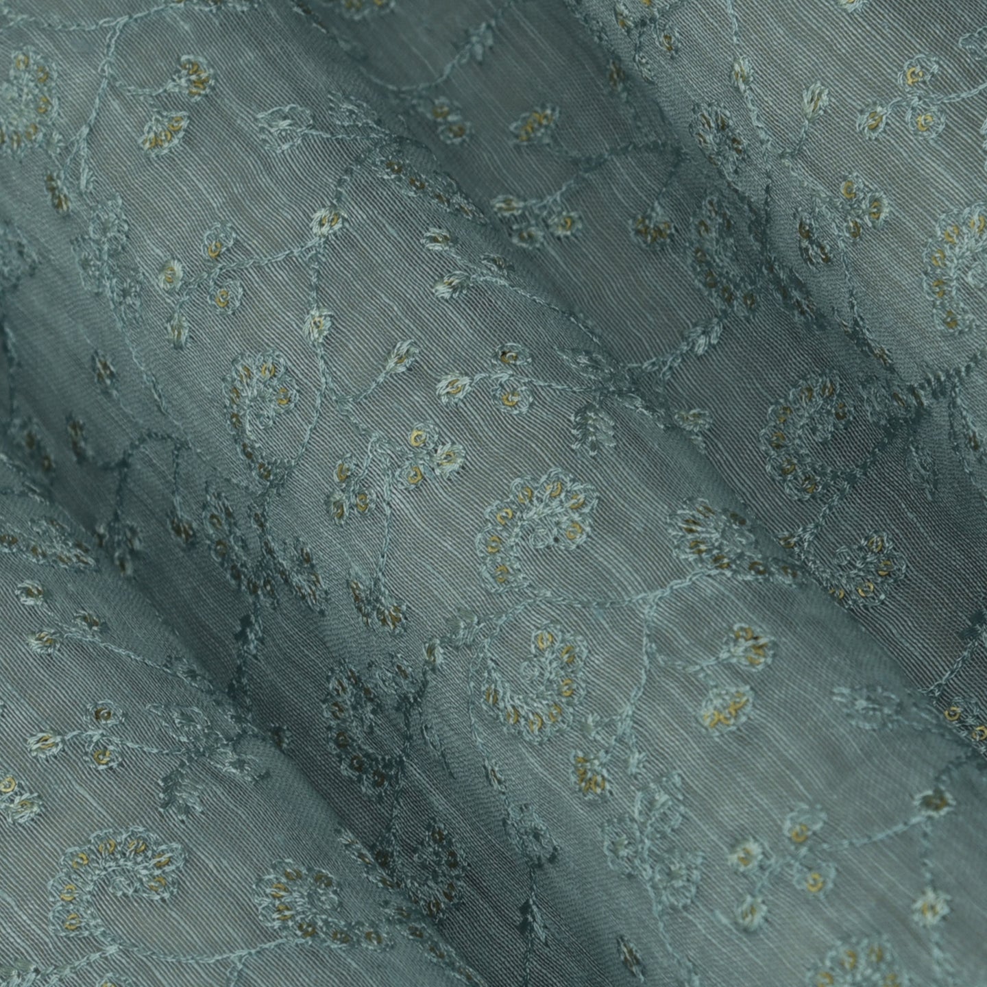 Expertly crafted from luxurious noil silk, this grey color embroidery fabric adds a touch of elegance to any garment or home decor project. With its delicate sheen and intricate embroidery, it is perfect for creating stunning and unique pieces that will make a statement. Elevate your sewing projects with this high-quality fabric.