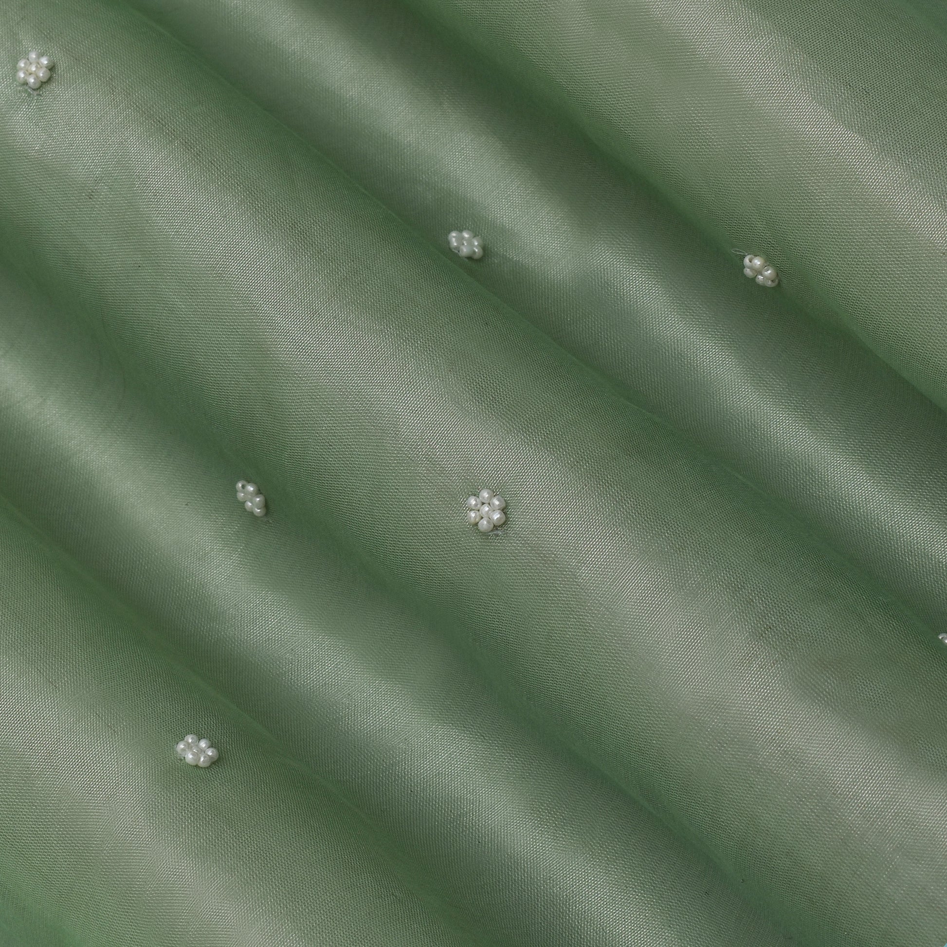 Experience the luxurious feel of our Hazel Green Color Tissue Booti Fabric. Made with high quality materials, this fabric features a rich, deep green hue that is perfect for any project. Upgrade your style with the elegant touch of this versatile and durable fabric.