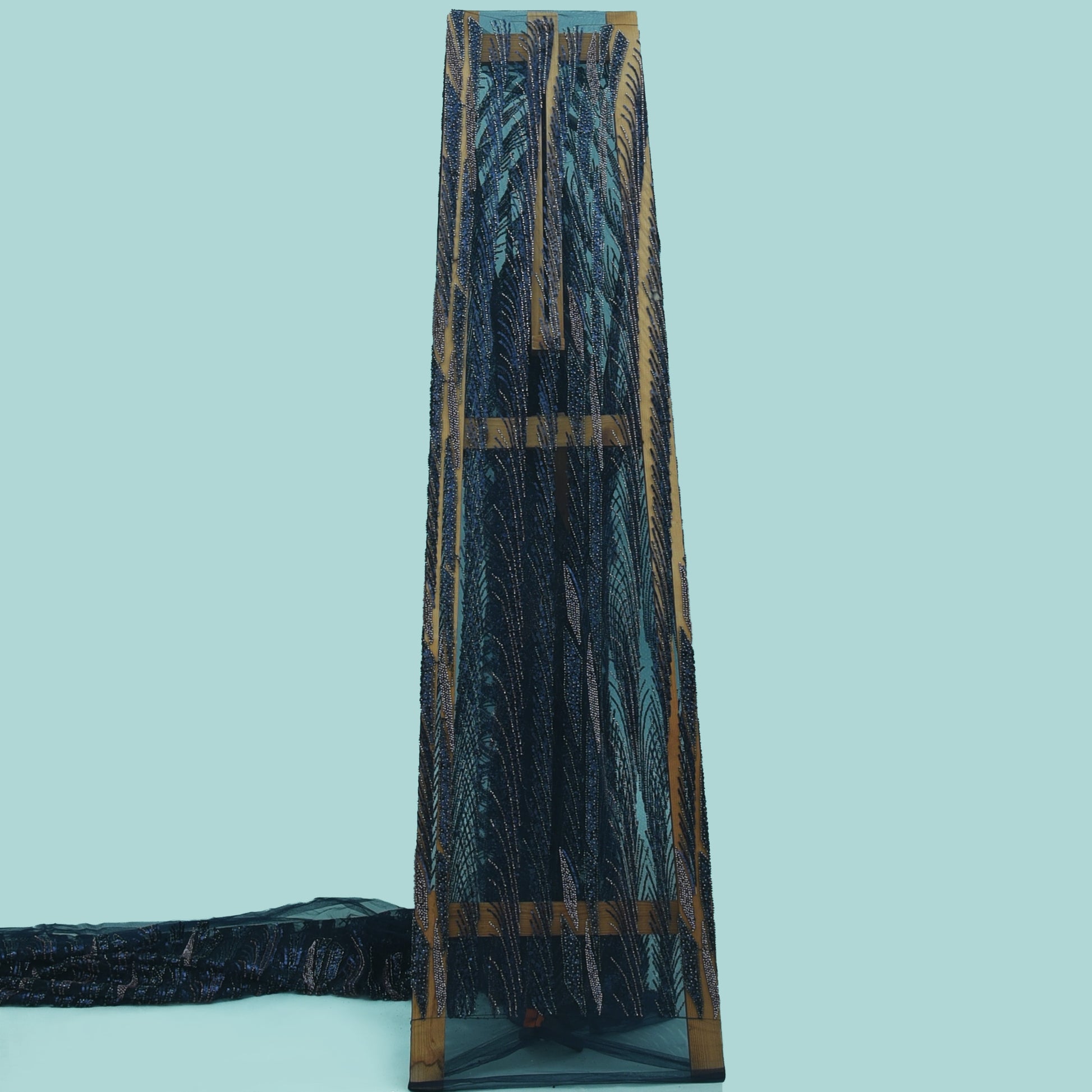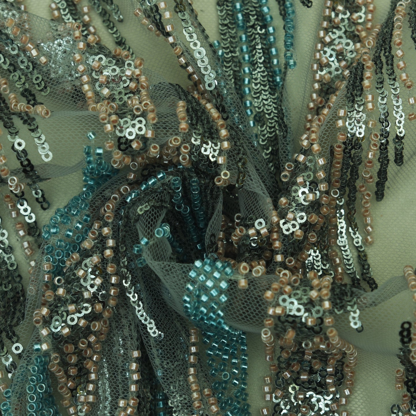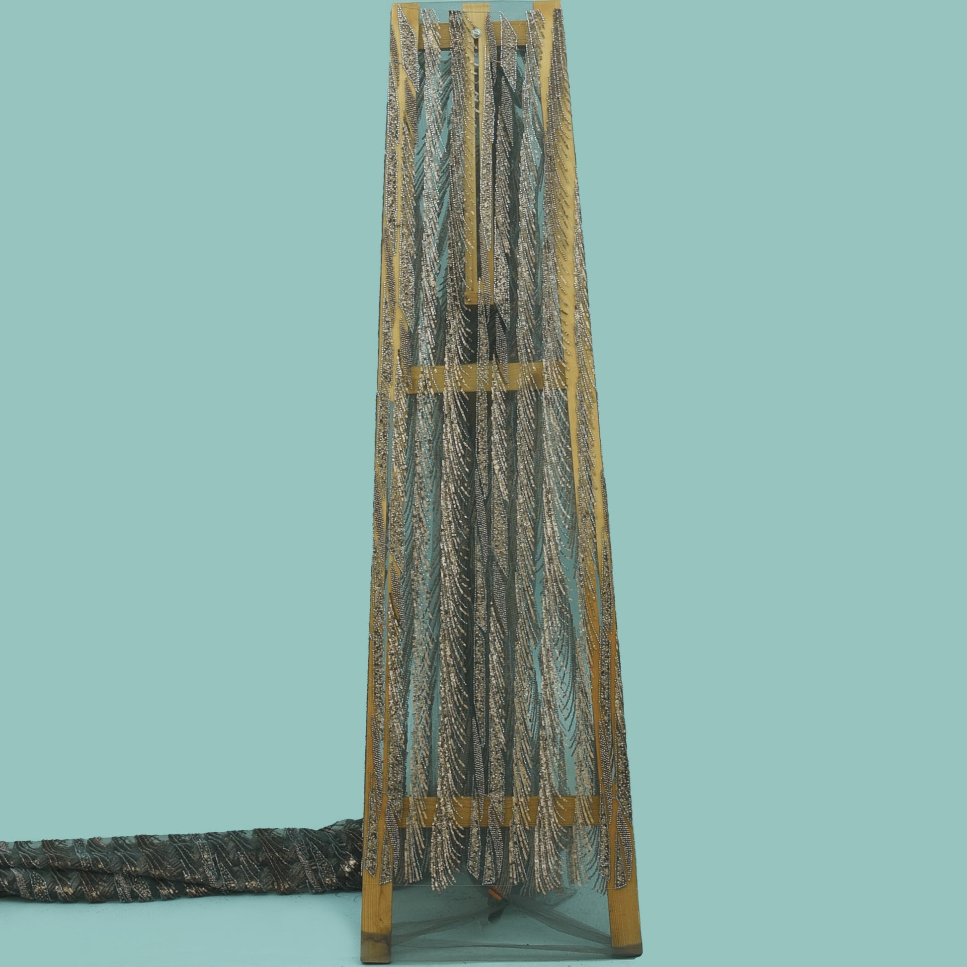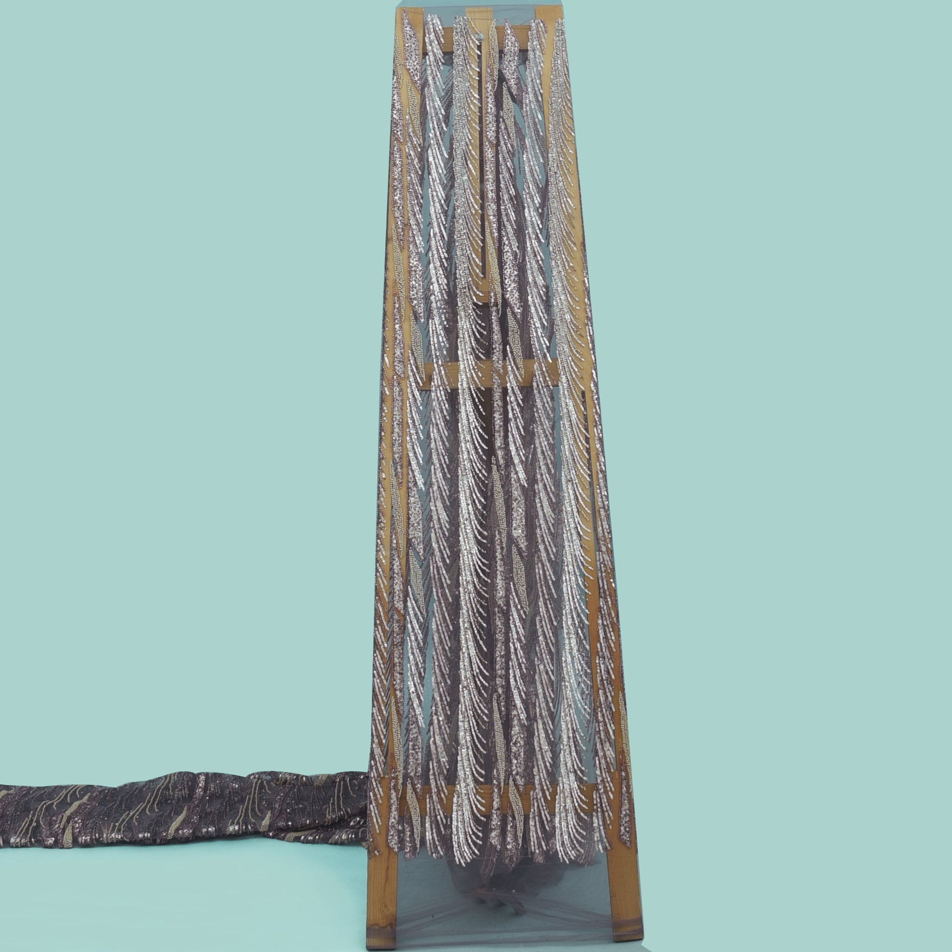 Expertly crafted and imported, our heavy embroidery fabric is made from premium quality net material. The delicate net adds a touch of elegance to any garment while the heavy embroidery highlights intricate details. Elevate your fashion game with this stunning fabric.