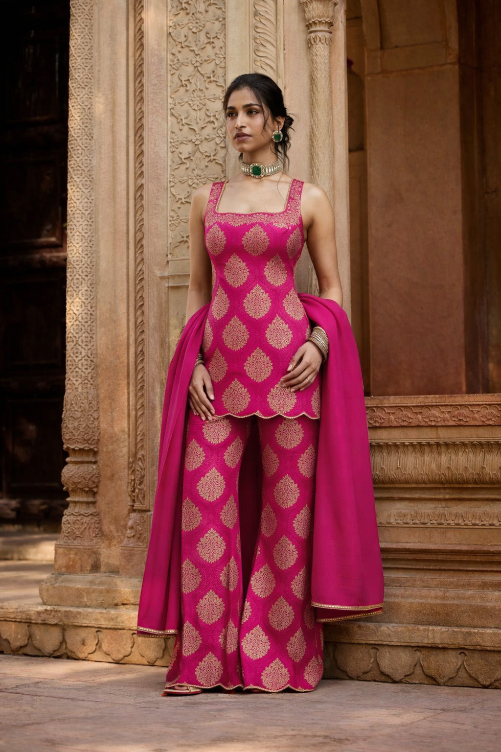 This Katan Tanchui brocade fabric reflects classic weaving artistry with a smooth silk base and finely detailed patterns. The fabric carries a rich yet graceful appearance, making it an excellent choice for premium traditional garments.