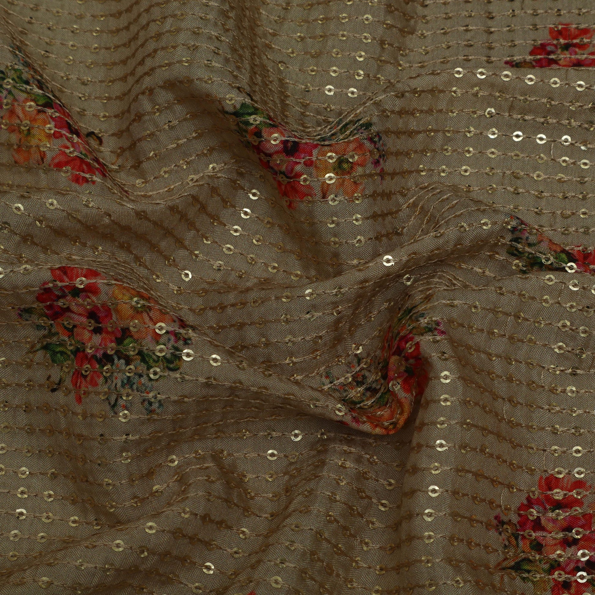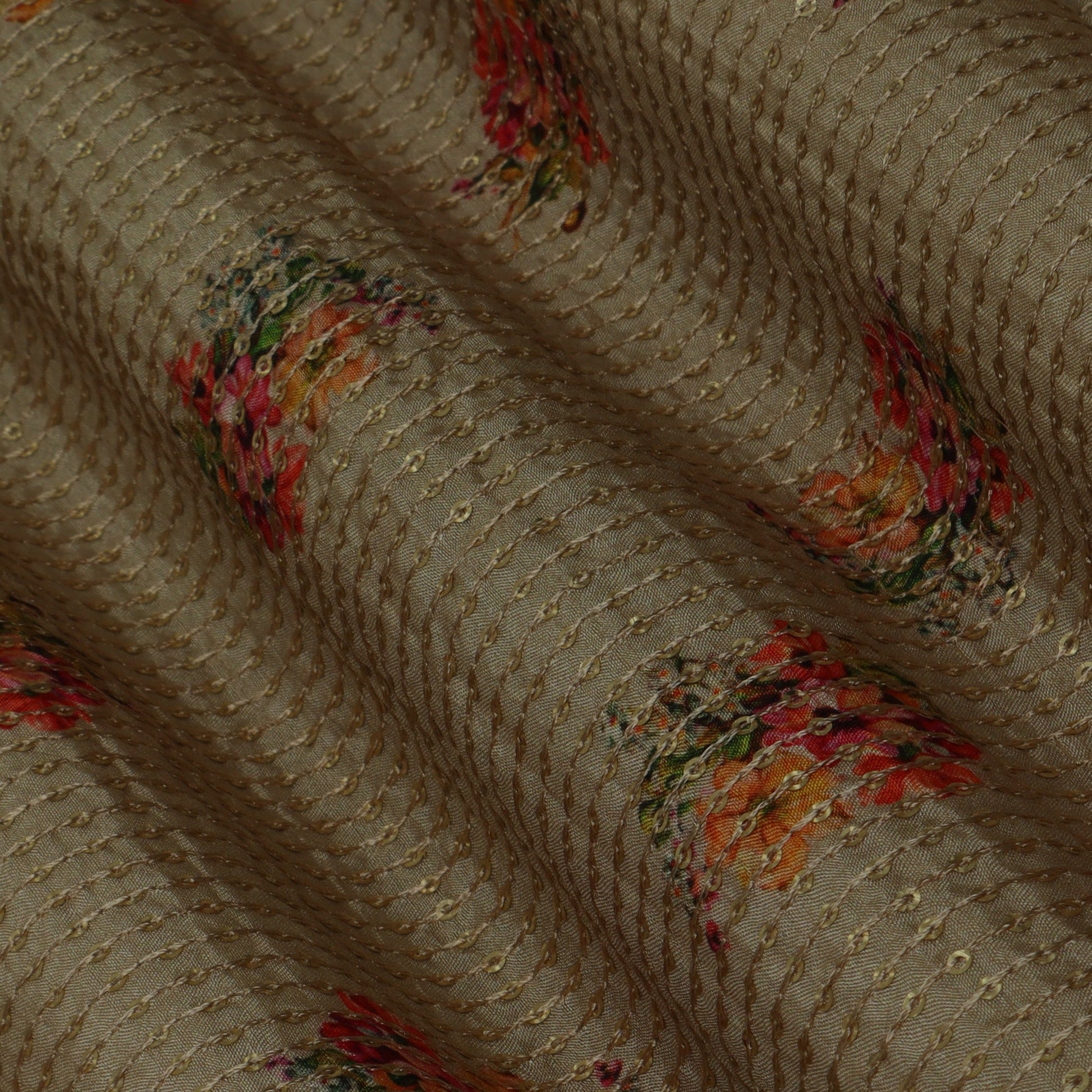 Beige Color MulMul silk Print Embroidery Fabric