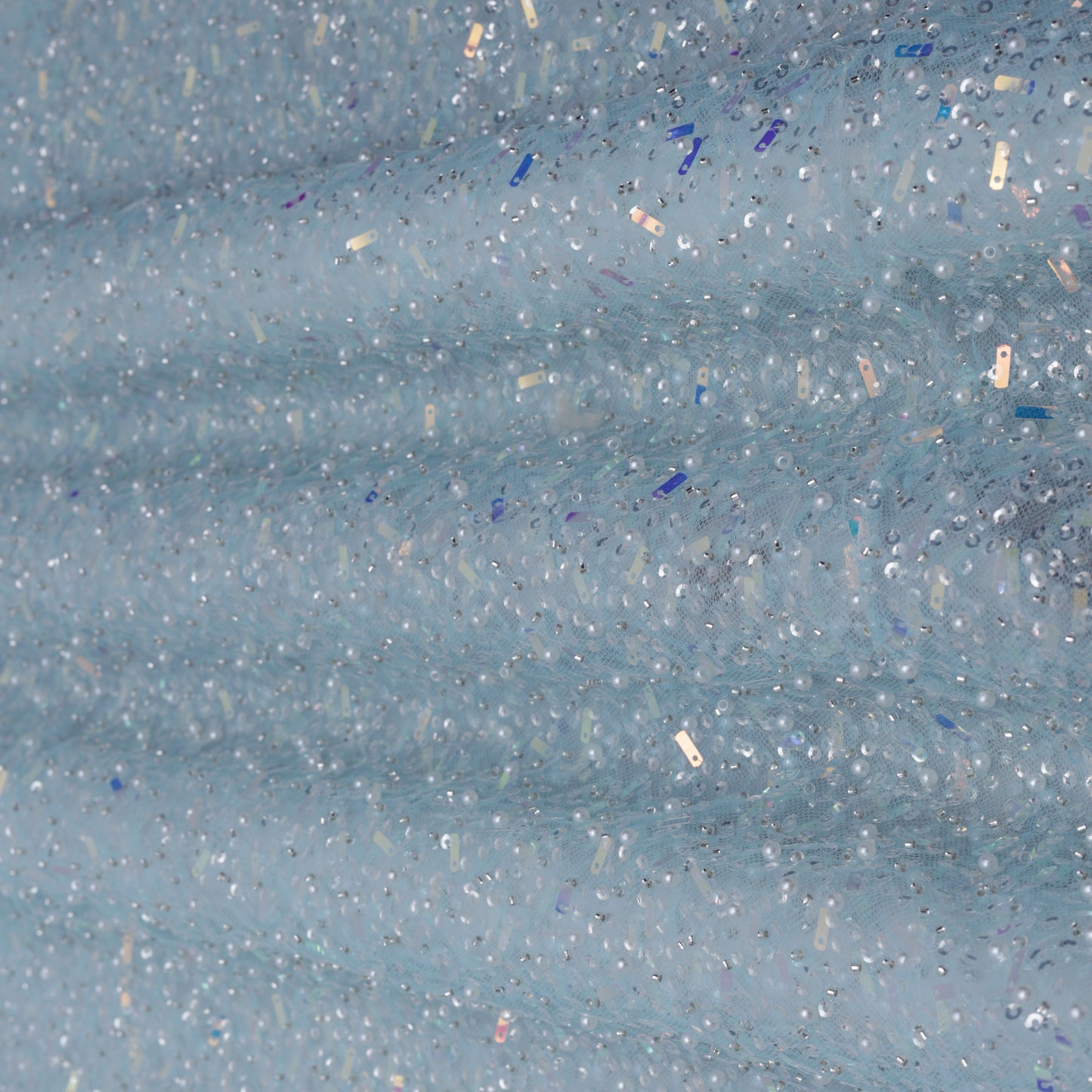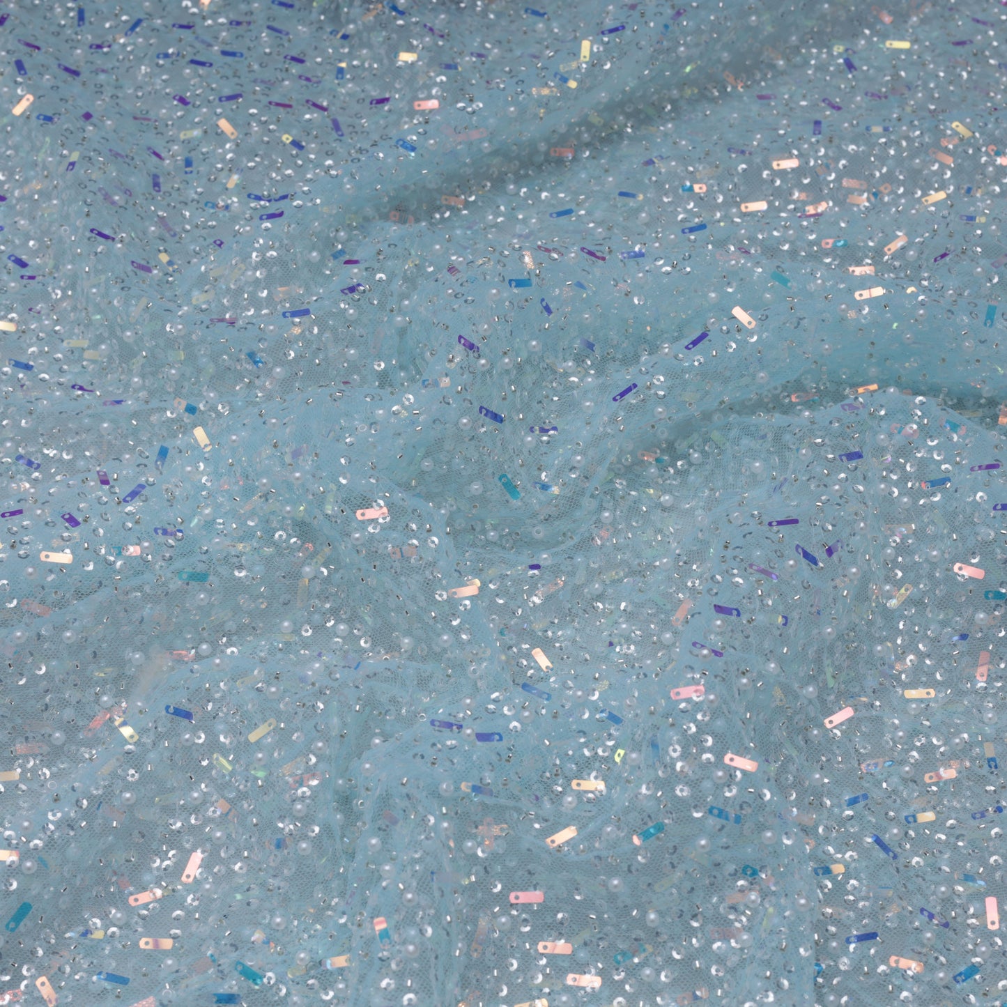 The Net Sequins Fabric is a high-quality material that is perfect for creating stunning outfits and decorations. This fabric features a net base adorned with shimmering sequins, adding a touch of glamour and elegance to any project.